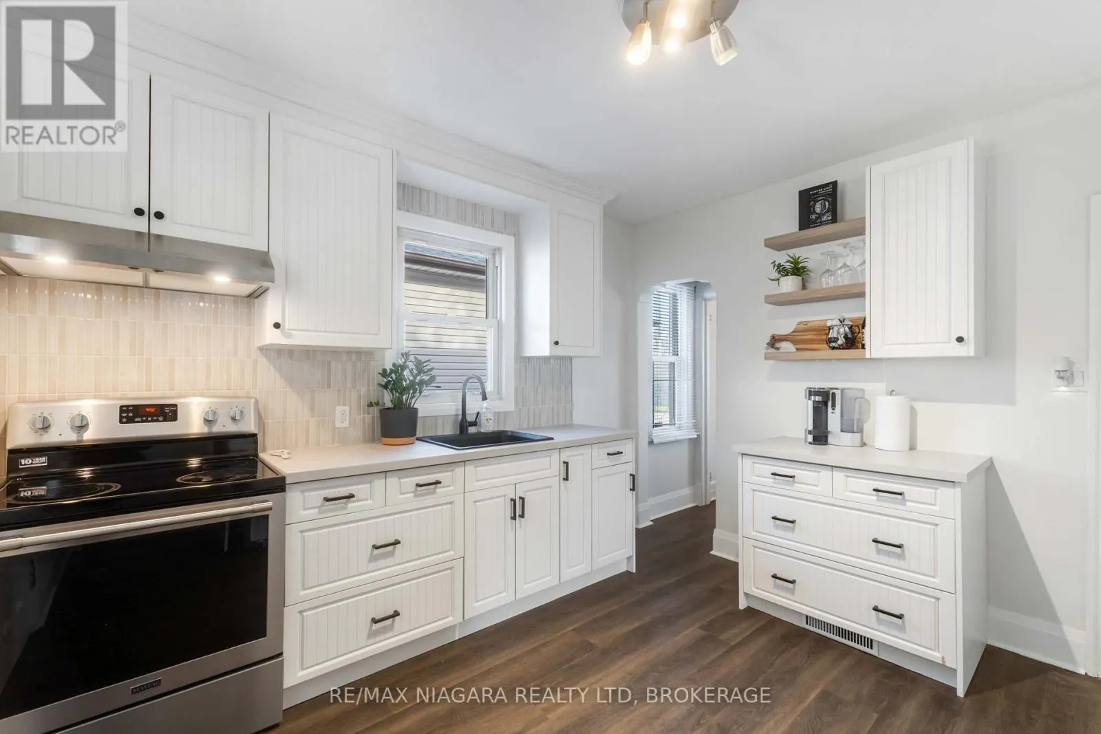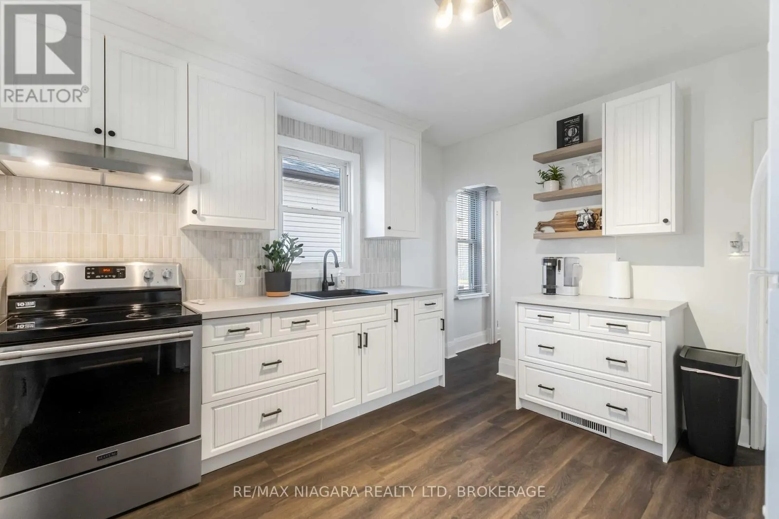 Cross Streets: Dunkirk/Vine. ** Directions: Dunkirk & Vine St S. Charming 1.5 story home tucked away on a lovely private street - convenient location for commuters with easy QEW access and close to everything downtown St. Catharines has to offer! The welcoming covered front porch leads you to this beautifully updated, open concept home with 3 spacious bedrooms. Bright, renovated functional kitchen with floating shelves and lots of counter space. Spacious living/dining room with pot lighting, and cozy bedroom or office space on the main floor. Updated bathroom with shiplap accent wall. Bright sunroom overlooking spacious fenced backyard with large patio and gazebo, perfect for entertaining and summer barbeques. Private driveway and detached garage. Unfinished basement provides plenty of room for storage. So many updates done over the years to make it move in ready, including: Kitchen 2025, Furnace & AC 2021, Flooring 2023, Plumbing 2021, New Fence 2021, Gazebo 2023, Freshly painted 2023, Updated Porch, Updated Bathroom. Appliances included - Fridge, Stove, Washer and Dryer. Close to all amenities, parks, schools, shops, restaurants, and transit. (id:27476)