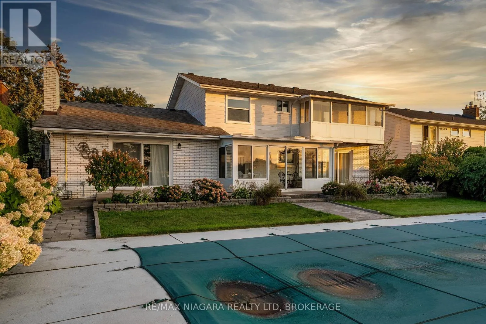 Cross Streets: Vine St. ** Directions: Vine St. to Royal York Rd. Client RemarksHave you ever dreamed of living by the waterfloating in your pool, sipping a drink, and watching breathtaking sunsets while waves gently roll in? This charming and spacious family home offers all that and more.Nestled on a quiet, tree-lined street, the home immediately impresses with its mature landscaping, beautifully maintained neighboring properties, and sweeping panoramic views of the watervisible from many of the oversized windows throughout.Step inside to a welcoming foyer that opens into a thoughtfully designed open-concept living space. The kitchen, complete with a generous dinette area, flows seamlessly into the living and dining roomsall featuring rich hardwood flooring. This inviting space is ideal for entertaining, with pride of ownership evident in every detail.The attached sunroom is a true highlightbright, cozy, and perfect for enjoying your morning coffee or a good book with a view.Upstairs, youll find four sun-drenched bedrooms. The spacious primary suite includes hardwood flooring, a private 3-piece ensuite, double closets, and an enclosed balcony offering stunning lake viewsa serene retreat.The finished basement expands your living space with tiled flooring, two large recreation rooms, a fifth bedroom, a 3-piece bathroom, and a laundry areaideal for guests or extended family stays.Additional features include:A 16' x 32' in-ground concrete pool. Double garage with automatic door opener. All of this located just minutes from scenic walking trails along Lake Ontario, Sunset Beach, wineries, and the charming towns of Niagara-on-the-Lake and Port Dalhousie.Whether you're raising a family or simply searching for your forever home by the water, this property delivers lifestyle, location, and endless possibilities. ***The swimming pool shall be leased as is, where is, with the tenant assuming full responsibility for the cost of opening, preparing and maintaining the pool for use.* (id:27476)
