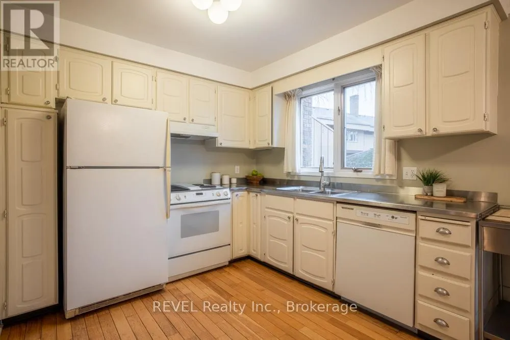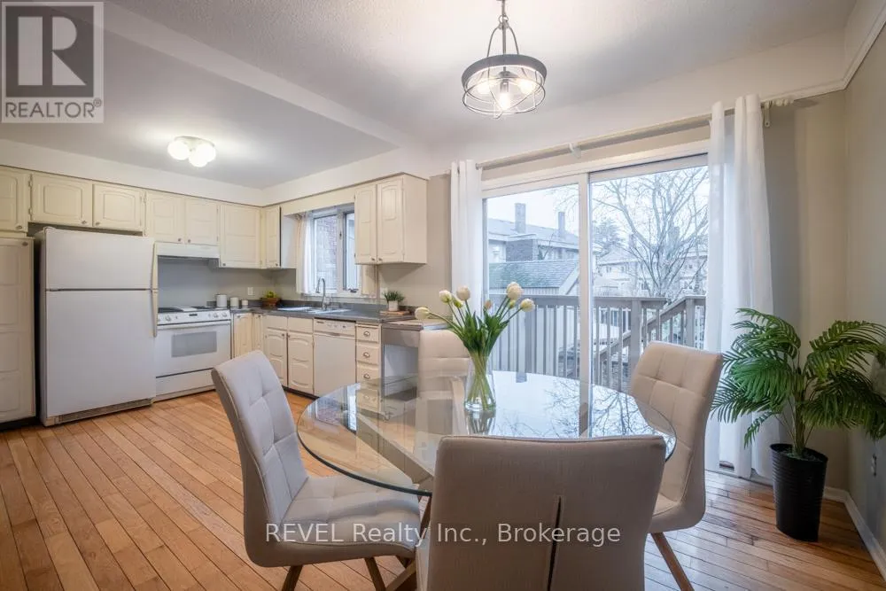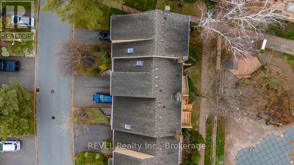 Cross Streets: Lake St. and Scott St. ** Directions: QEW to Lake St. N, right on Scott. Looking for a fantastic 2-bedroom townhome? Welcome to The Clusters, a well-maintained community, ideal for first-time buyers, young professionals, or young families. Enjoy access to the centrally located pool and landscaped garden area, conveniently situated just steps from your private back deck. Parking is made easy with a single-car garage, additional driveway space, and ample visitor parking nearby. The main level features a spacious living and dining area, eat-in kitchen with walk-out to the deck, and a convenient powder room. Upstairs, you'll find a generous landing, a large primary bedroom with double closets and vaulted ceiling, and a well-appointed main bathroom complete with both a tub and separate shower. The bright front bedroom offers abundant natural light and a walk-in closet. The lower level provides direct access from the garage and includes a cozy den with gas fireplace, laundry and utility room, and additional storage. (id:27476)