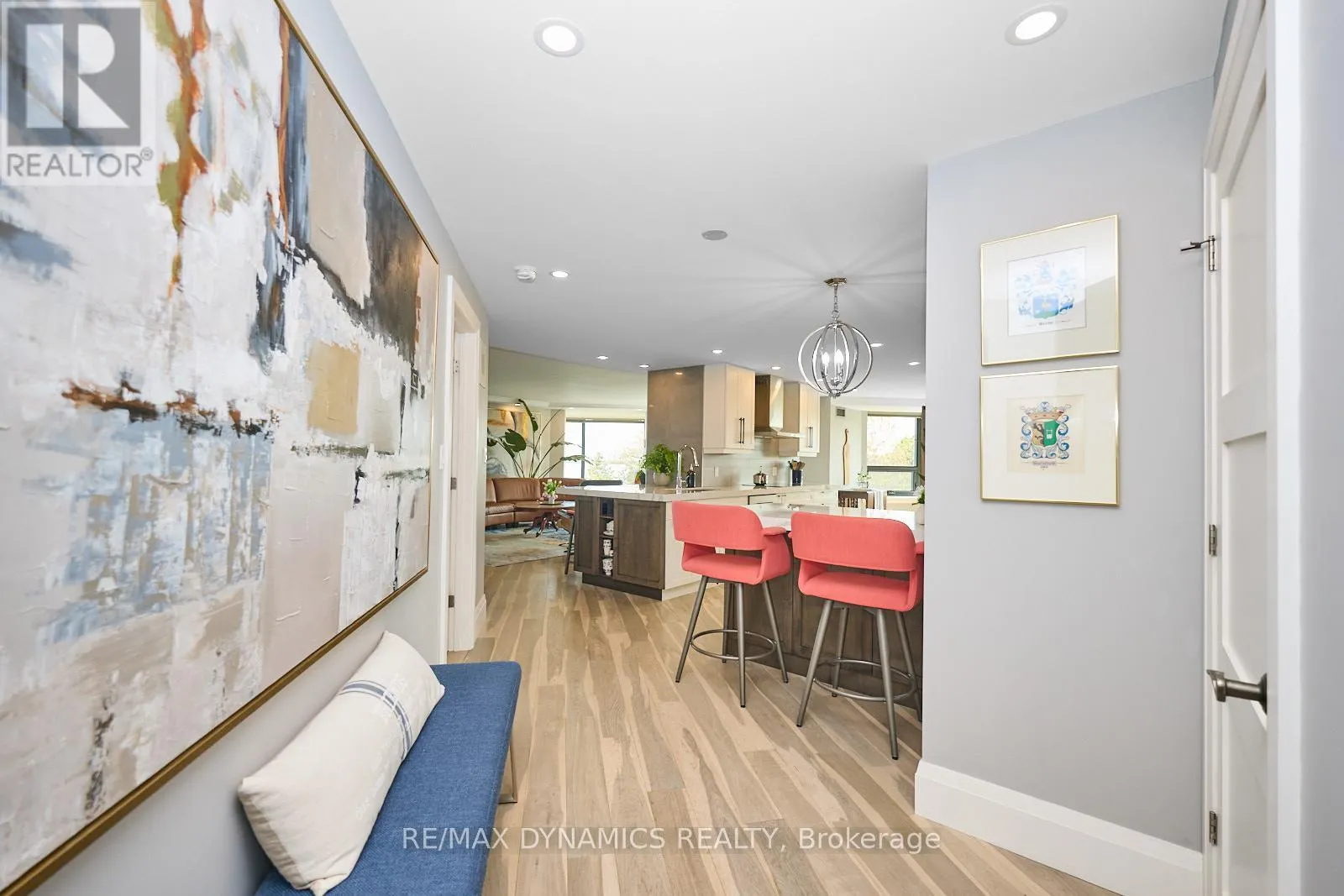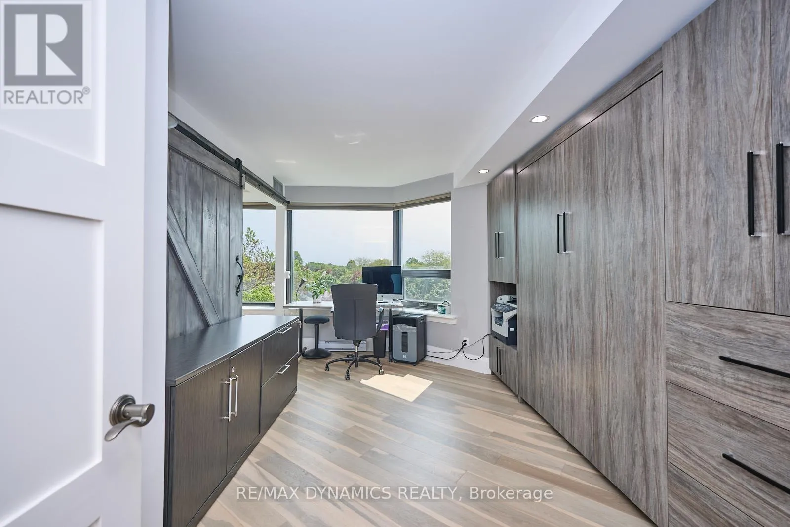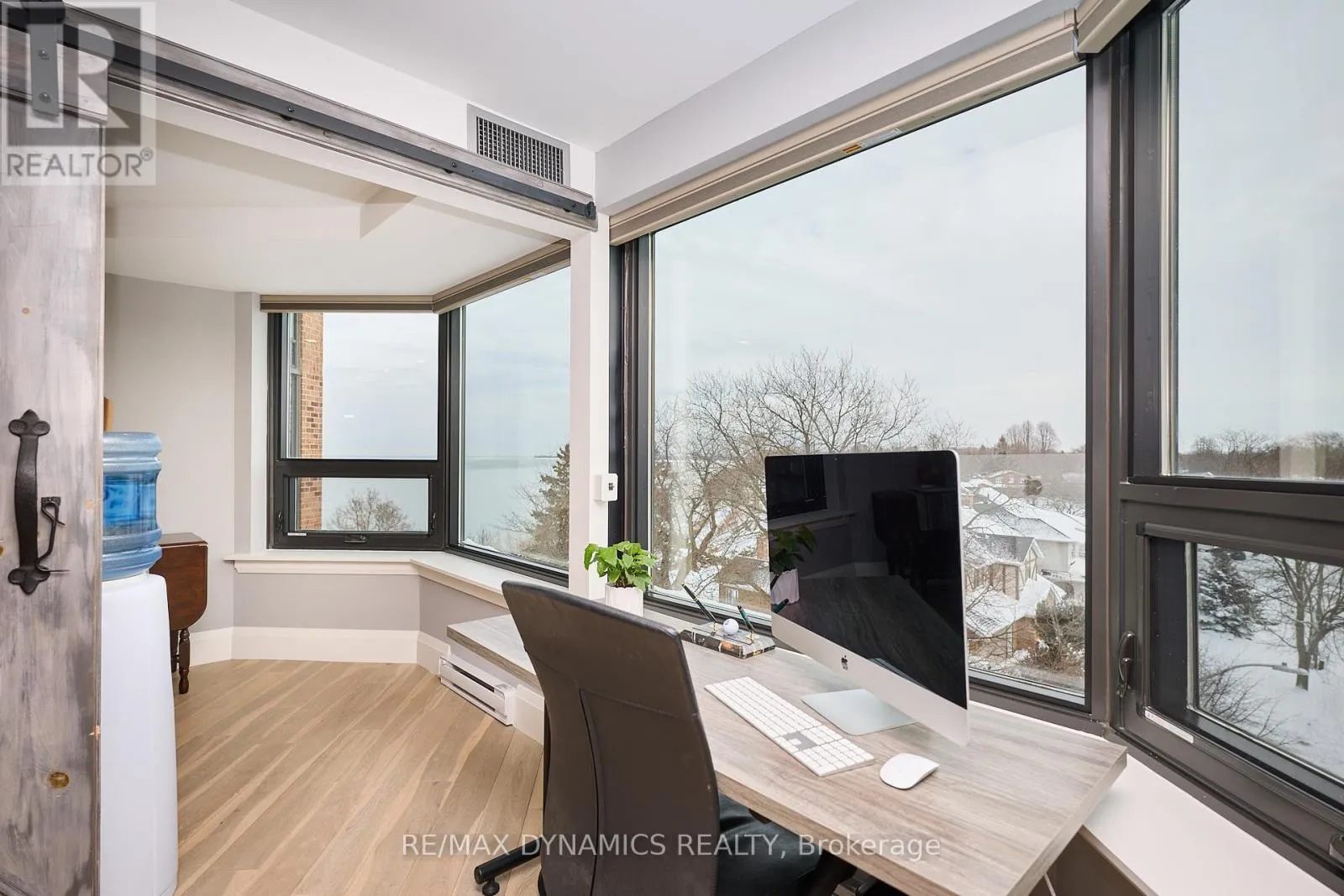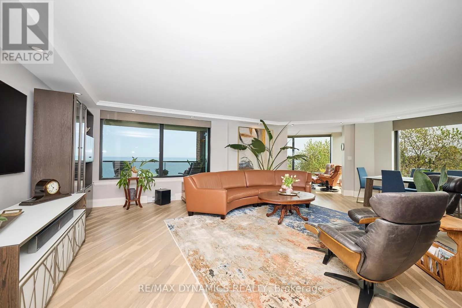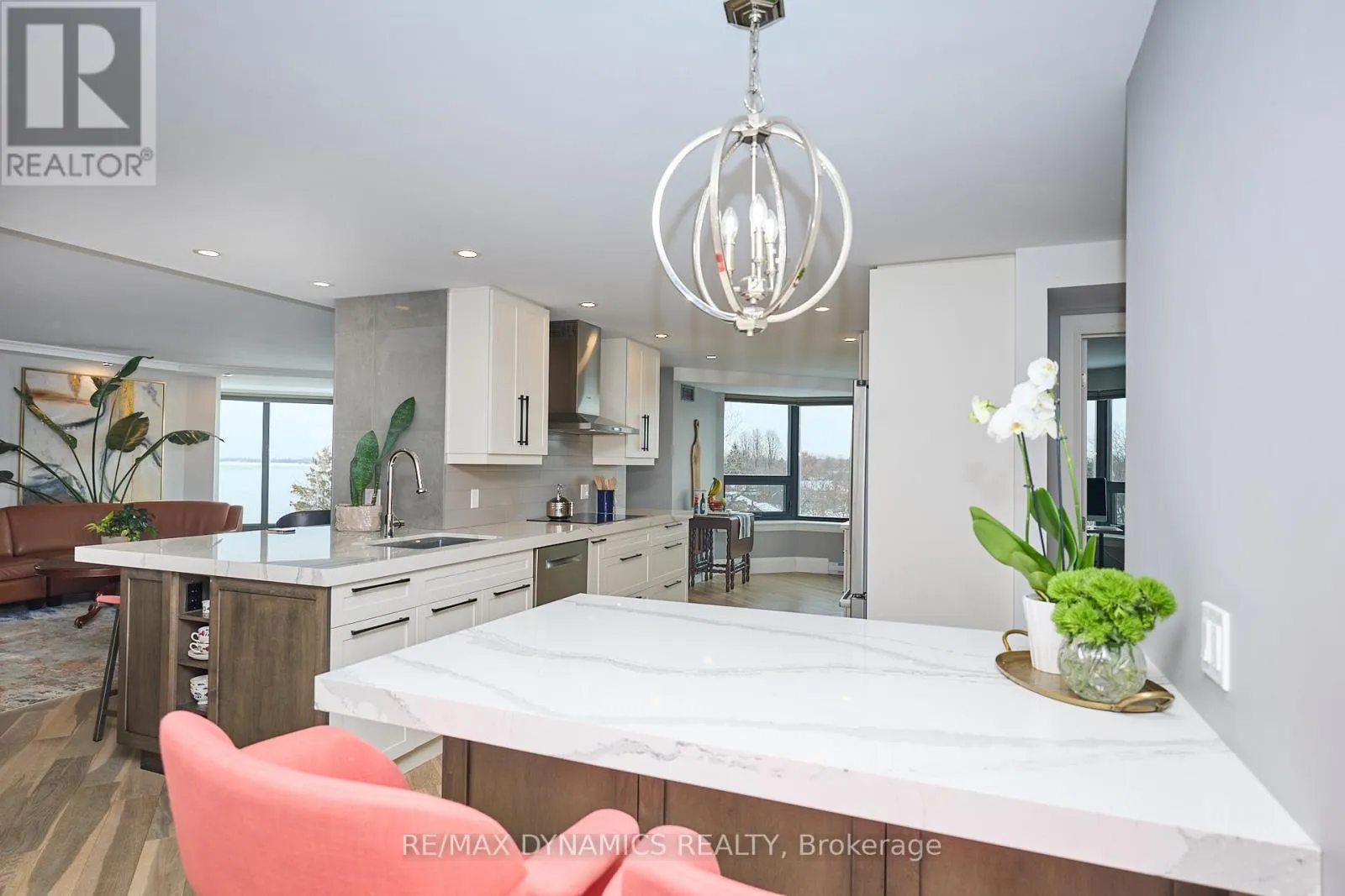 Cross Streets: Lakeshore Road. ** Directions: Lakeshore to Geneva. Every once in a while, you walk into a home that truly takes your breath away - and this is one of them. This stunning condo is the epitome of luxury waterfront living, offering spectacular, unobstructed views of Lake Ontario from Niagara-on-the-Lake all the way to Burlington, and across the water to Toronto's iconic skyline. Imagine relaxing on your oversized balcony, glass of wine in hand, listening to the gentle sound of the water just below - pure serenity. No expense was spared in this thoughtfully and completely renovated suite. High-end finishes are found throughout, including stainless steel Bosch appliances and Hunter Douglas automated blinds.The bright, beautifully designed kitchen features Cambria countertops and offers both style and function - perfect for creating gourmet meals for family and friends. The open-concept living and dining area is ideal for entertaining, with panoramic lake views that showcase breathtaking sunsets. Versatility meets elegance with a dedicated office that easily doubles as a second bedroom, thanks to a sleek Murphy bed that's ready in seconds. The primary bedroom is a true retreat, boasting stunning lake views, direct access to the balcony, and a luxurious ensuite complete with a glass-enclosed shower and a soft-finish soaker tub. The second bathroom is a clever and efficient use of space, featuring a spacious shower with grab bars for added comfort and accessibility. Additional highlights include all-new building windows (2023), ample visitor parking, and a prime location just steps from the waterfront trail, parks, and convenient shopping.This is one of those homes you simply must experience in person to fully appreciate everything it has to offer. (id:27476)
