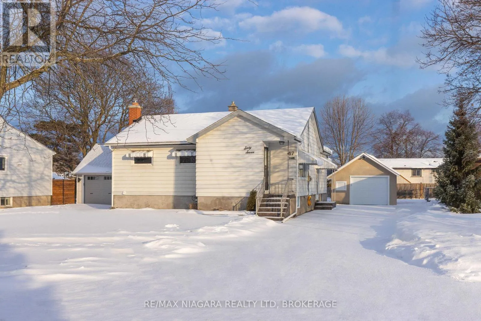 Cross Streets: Glen Park Rd & Geneva St. ** Directions: Head north on Ontario Street, then turn left onto Welland Avenue and continue west.Turn right onto Geneva Street and head north.Turn right onto Glen Park Road; 67 Glen Park Road will be on the left. Move-in ready and beautifully renovated, this 1-storey detached home is located in the highly desirable Vine/Linwell neighbourhood of St. Catharines' north end. The exterior offers excellent curb appeal with aluminum siding, 40-year rated asphalt shingles, window and door awnings, and new stamped concrete steps at both the front and covered side entrance. A double concrete driveway wraps around to a partially covered backyard patio, perfect for outdoor living. The 1.5-car detached stucco garage features a brand-new insulated automatic garage door with Wi-Fi-enabled opener, along with attic storage. The grassy backyard is fenced along neighbouring properties. Inside, the home has been refreshed with new paint, lighting, ceiling fans, and all-new interior doors, trim, and hardware. The warmth of original hardwood floors has been preserved in the living room and all three bedrooms. A welcoming front entry with new flooring and a closet opens to a bright living space and a fully renovated kitchen/dining area featuring white cabinetry with under-cabinet LED lighting, stainless steel hardware, quartz countertops, polished porcelain mosaic tile backsplash, stainless steel double sink and hood vent, and new flooring. No appliances included. The main floor bathroom has also been completely renovated with new flooring, vanity, toilet, and tub/shower combination. The partially finished basement includes a cozy rec room with new carpet, fresh paint, and a gas fireplace with brick surround, plus a new 2-piece bathroom. The unfinished portion offers excellent storage, a laundry room with washer/dryer, utility sink, and a workshop area. Additional highlights include a new owned furnace, new central air (January 2025), and ecobee smart thermostat. See attached Home Feature Sheet in documents for more updates. This is a fantastic opportunity to own a turnkey home in a prime north-end location. (id:27476)