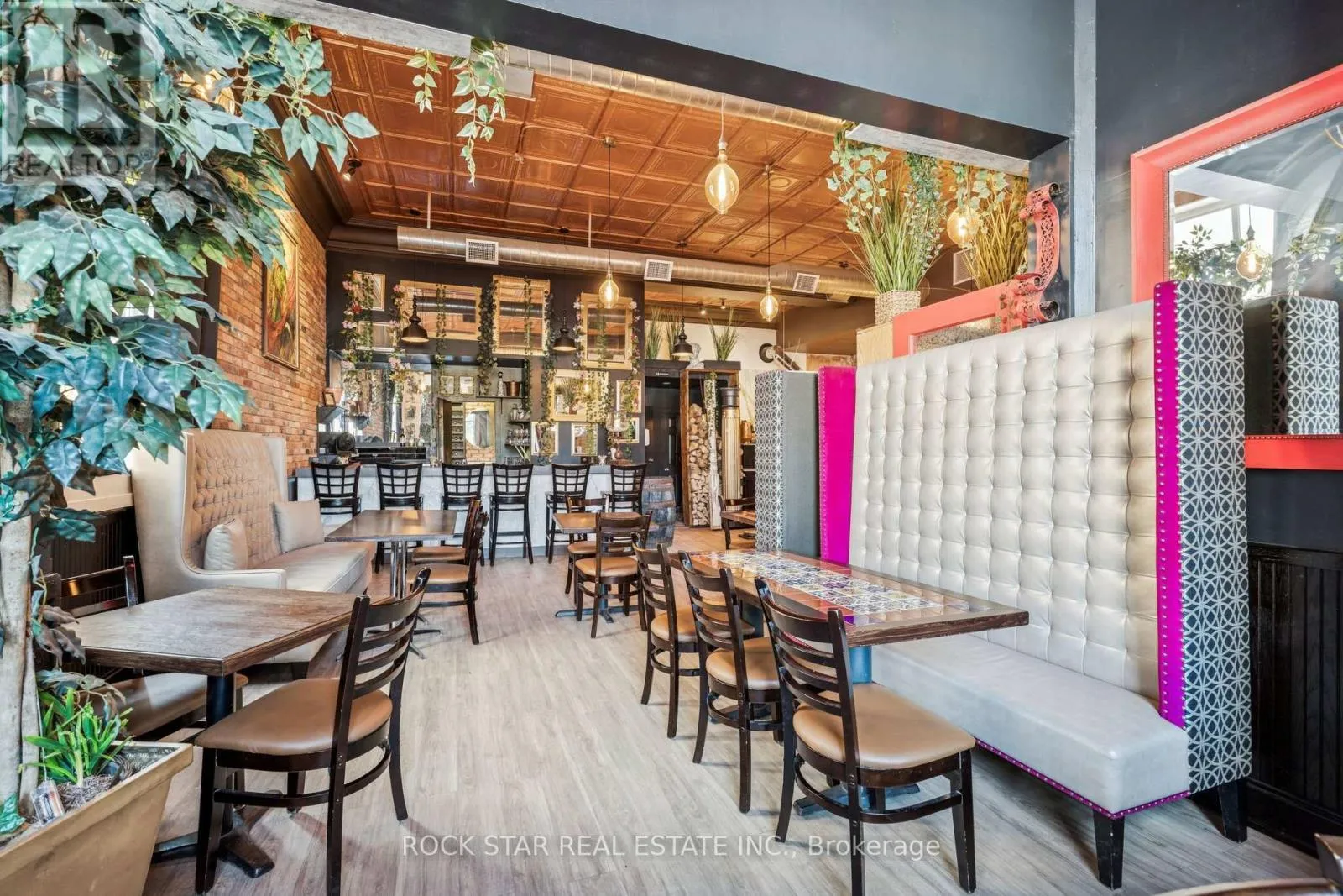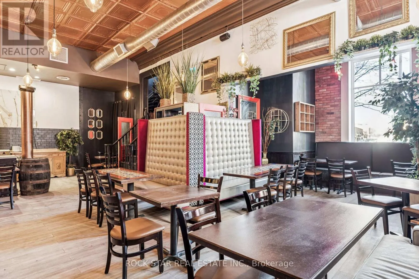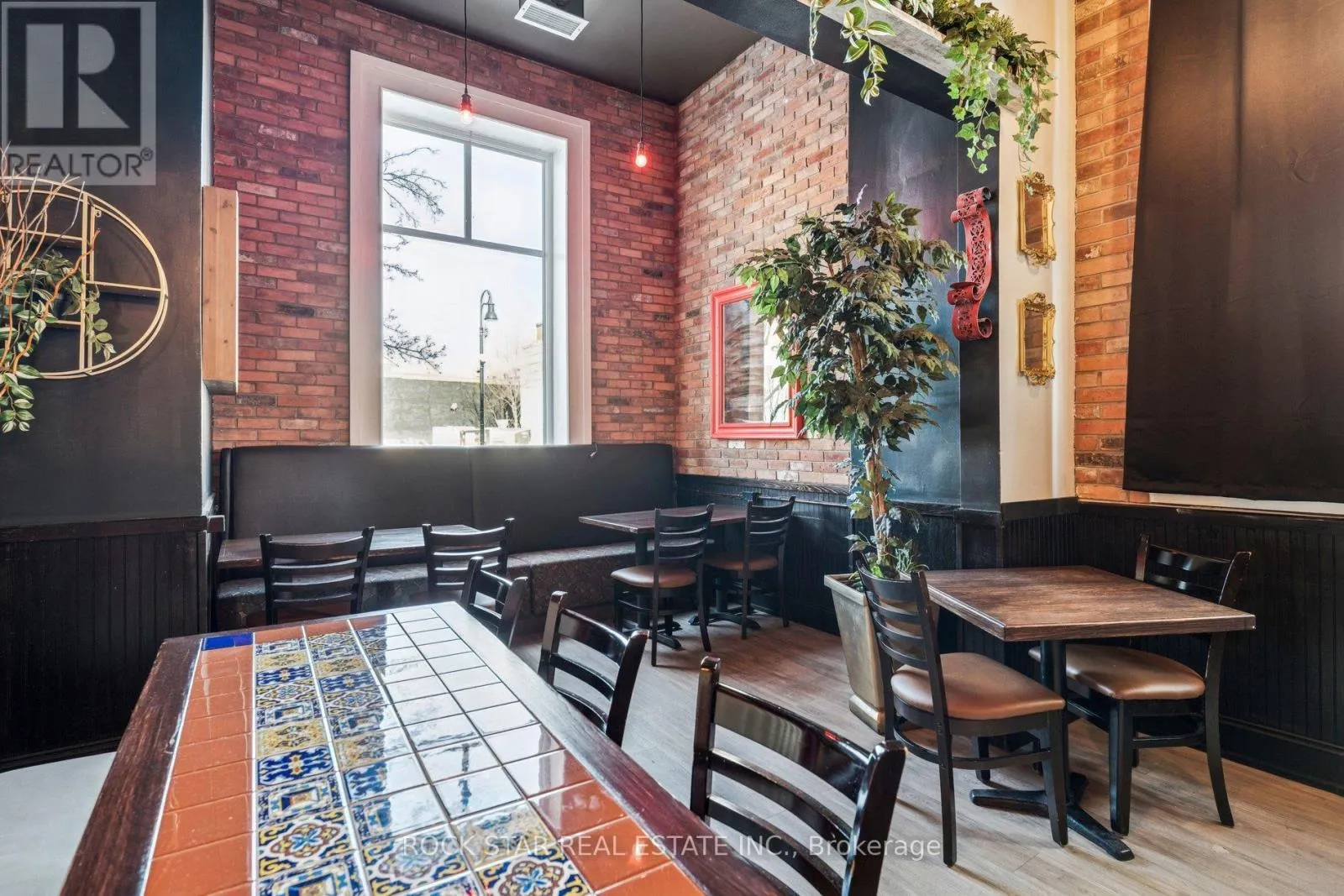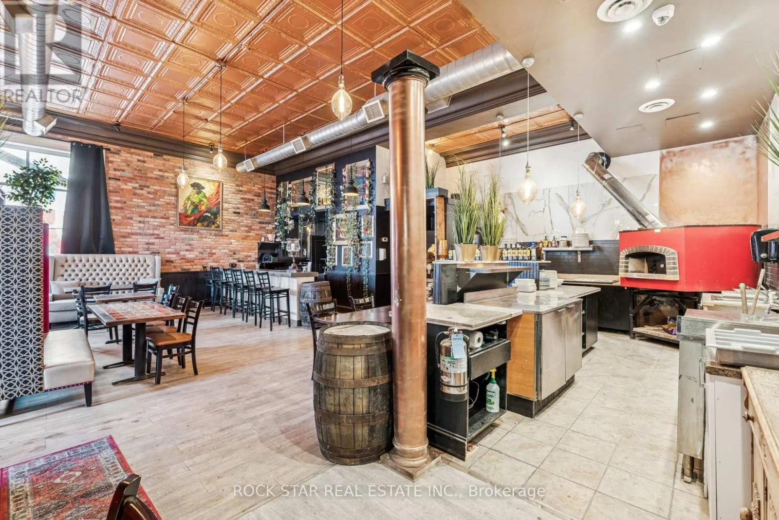 James Street An exceptional leasing opportunity in the heart of downtown St. Catharines, offering unmatched character, visibility, and flexibility in a well-maintained historic two-storey commercial building. Originally constructed as a turn-of-the-century bank, the property features a striking open-concept main floor with high ceilings, excellent natural light, gas fireplace, bar and island area, ample cabinetry, appliances included, a two-piece washroom, and distinctive architectural details including the original bank vault. The space has previously operated as both a café and pizza restaurant and is well suited for food and beverage use, including the potential to open a restaurant or pizzeria, with a wood-burning oven in place and existing furniture such as tables and chairs. The second floor provides additional flexible usable space ideal for offices, meeting rooms, creative or event-style use and includes two two-piece washrooms, a separate shower room with sink, a kitchenette, and multiple storage areas. A full basement offers additional storage and utility space, one parking space is included at the rear, and the property is ideally located just steps from the Meridian Centre, FirstOntario Performing Arts Centre, and the downtown core's shops, restaurants, and amenities. (id:27476)