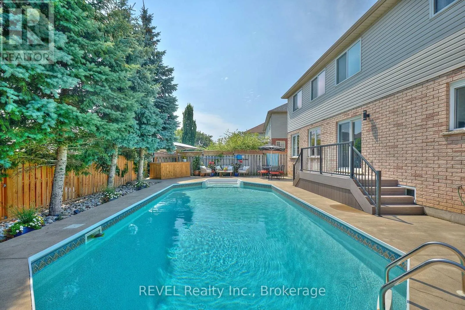 Cross Streets: Mac Turnbull Drive and Pelham Road. ** Directions: Louth St to Macturnbull to Fosh Court. Welcome to this thoughtfully updated and impeccably cared-for two-storey home, set on a generous corner lot in a sought-after, family-friendly neighbourhood. Offering a great balance of modern style and everyday functionality, this home is move-in ready and full of standout features.The main floor showcases a bright, open-concept layout ideal for both entertaining and daily living. The updated kitchen sits at the center of the home, complete with quartz countertops and a matching backsplash, and flows effortlessly into the living and dining areas. Large windows and contemporary finishes create a warm, inviting atmosphere throughout.Upstairs, you'll find three well-sized bedrooms, including a spacious primary retreat with a walk-in closet and a private 4-piece ensuite. An additional bedroom has been transformed into a custom walk-in dressing room, providing exceptional storage and organization.Outside, the fully fenced backyard offers a private escape with a heated saltwater pool-perfect for summer entertaining or quiet evenings at home. Built-in exterior lighting adds both curb appeal and ambiance after sunset.The fully finished basement provides excellent in-law suite potential, offering flexible space for extended family, guests, or additional living areas. Don't miss your opportunity to view this impressive home-book your private showing today! (id:27476)