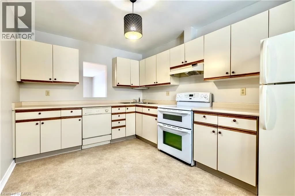 Bunting Rd & Queenston St Located in central St. Catharines, this solidly built two plus one bedroom, two bathroom townhouse condominium offers convenient main floor living in a quiet, mostly adult community. Ideal for first time buyers and those looking to downsize or enjoy low maintenance living, the main floor features a spacious eat in kitchen with ample cupboard and counter space, a dining area with patio doors leading to a private outdoor space perfect for morning coffee, relaxing, or barbecuing, along with a comfortable living room and main floor laundry. Spacious bathrooms and thoughtful storage add to the home's practicality. The fully finished basement includes a large rec room with high ceilings, a bonus bedroom or office space, a workshop ideal for the handy person, a second bathroom, and a dedicated storage room. While some updating is needed, the home is solidly built and offers excellent potential in a well maintained community close to shopping, parks, quick QEW access, and walkable amenities. Additional parking for a second vehicle may be available at an extra cost. (id:27476)