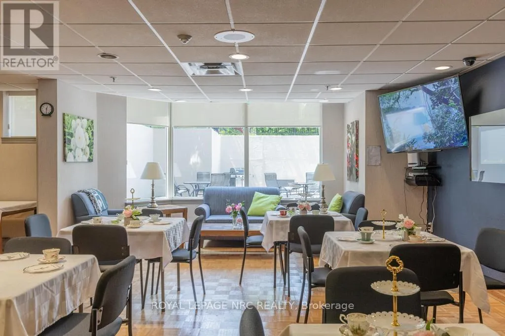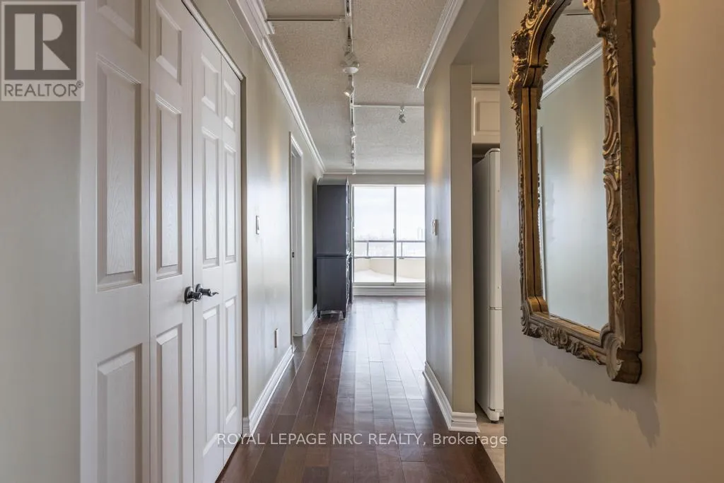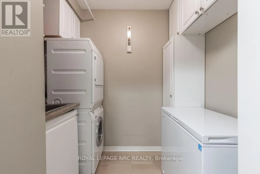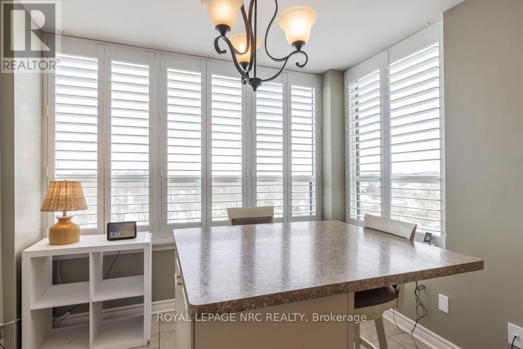 Cross Streets: Glenridge Ave & Glen Morris Dr. ** Directions: Glenridge Ave to Glen Morris Dr to Towering Heights Blvd. Situated on the 8th floor, this light filled 1,448 square foot corner suite condominum features 2 bedrooms, 2 full bathrooms, and an oversized private balcony off of the great room providing spectacular north-easterly views overlooking the city of St. Catharines and Burgoyne Woods. The desirable Southgate building boasts luxury amenities like an indoor heated pool, spa, sauna, exercise room, party room, billiards room, hobby room and 2 separate outdoor barbecue areas with patios. Upon entering the foyer of suite 804, you'll find a tasteful layout full of natural light, rich hardwood running throughout with ceramic tile in both bathrooms and the kitchen. First, an in-suite laundry room off of the foyer leads to a second bedroom featuring a custom-built Murphy bed and cabinetry, with a 4pc bathroom close by, making this area completely separate from the rest of the suite perfect for use as a guest room or office. The spacious kitchen with a separate dinette opens to a light-filled living / dining area through elegant glass French doors, ideal for entertaining. This area also includes a cozy separate TV or reading nook as well. The primary suite includes a large walk-in closet and an 4pc ensuite bathroom with a separate shower and jetted spa soaker tub. Lovely California shutters throughout, this unit also proudly boasts 2 indoor parking spaces and 2 separate storage lockers. South Gate, a pet-free building, is conveniently close to the Pen Centre, Grocery Stores, Pharmacies, Restaurants, the Meridian Centre, Performing Arts Centre, and everything else that downtown St. Catharines has to offer. (id:27476)