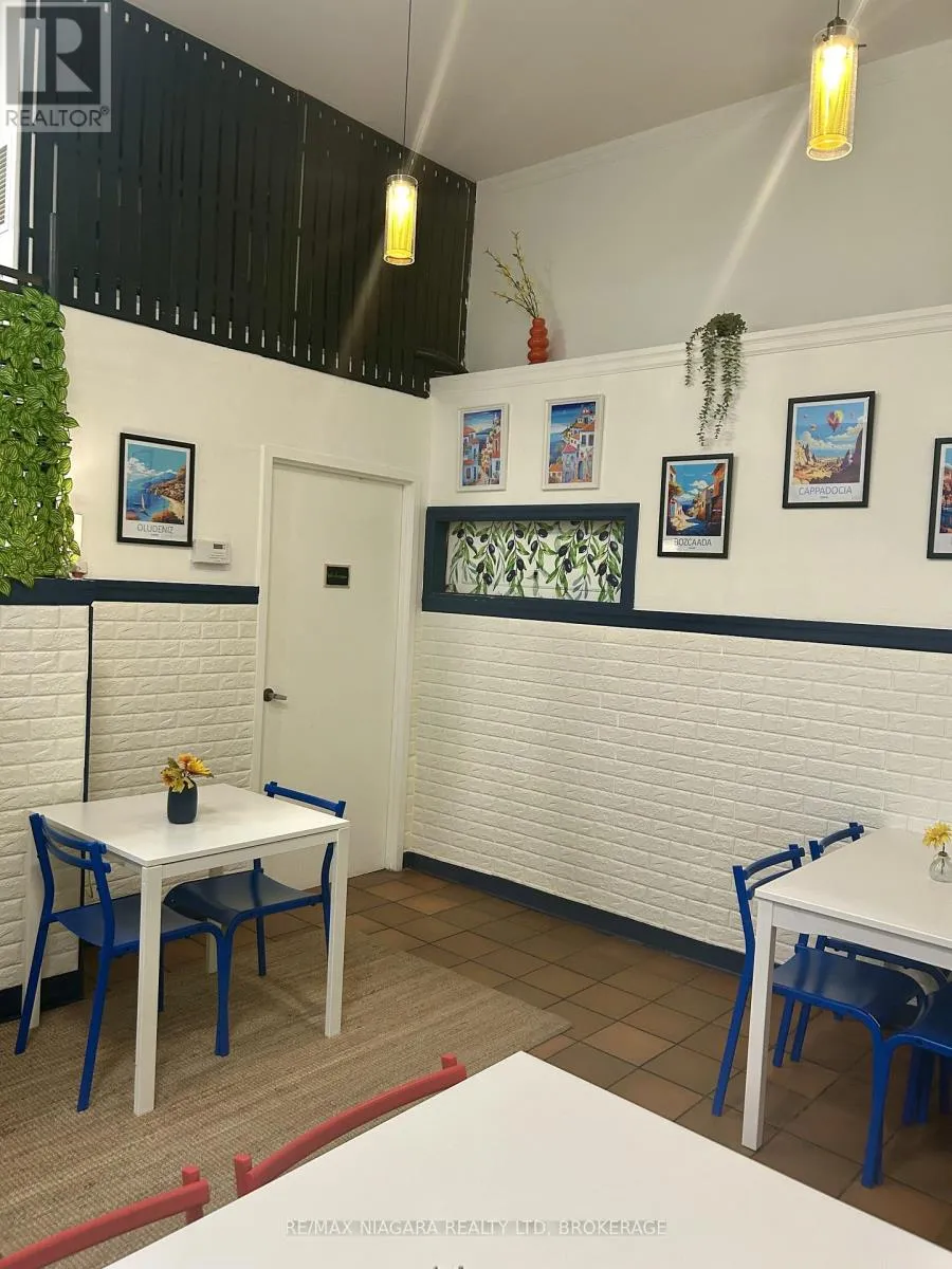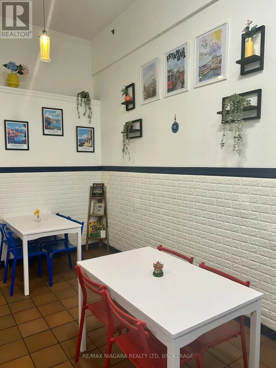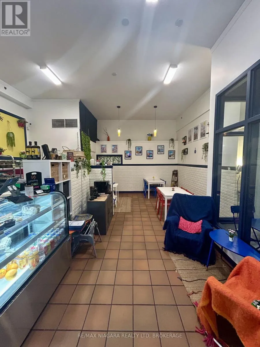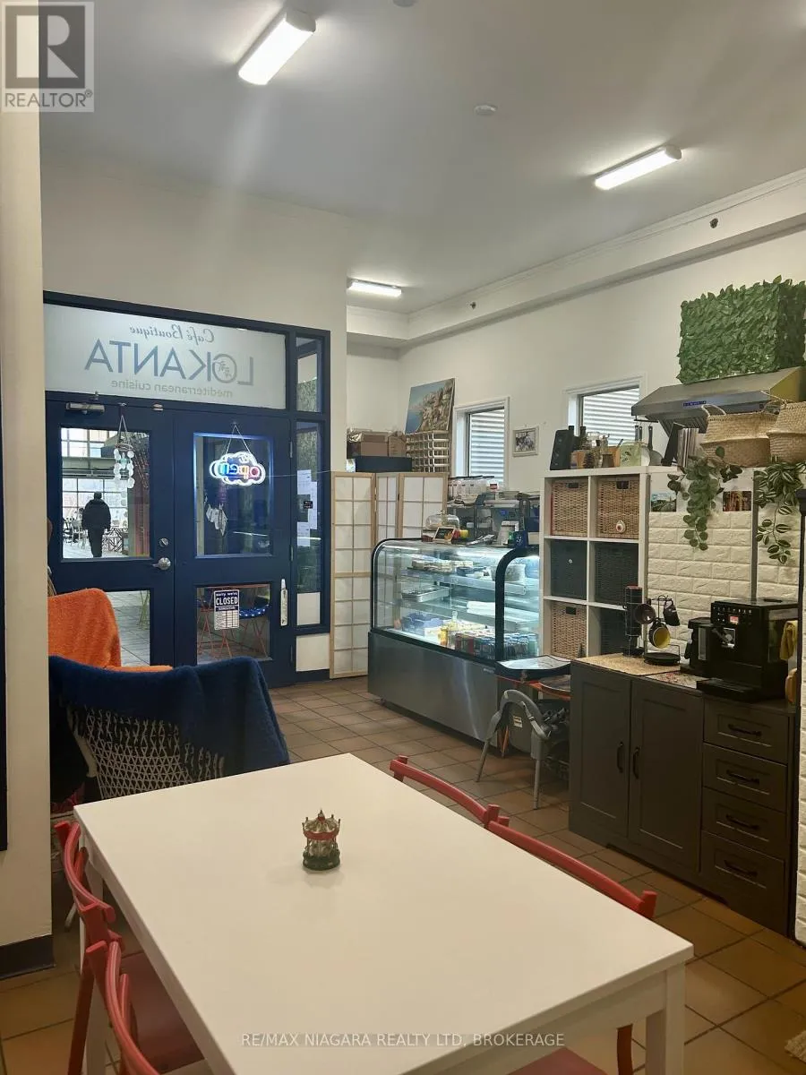 Cross Streets: Lock St & Main St. ** Directions: Intersection of Main St & Lock St. An exceptional opportunity to assume a well-positioned, high-traffic café space in the heart of historic Port Dalhousie, just steps from the waterfront. This established location in the Lock and Main Marketplace benefits from consistent local patronage and year-round tourist traffic, enhanced by its proximity to Lakeside Park, the Marina, Rennie Park, and the Royal Canadian Henley Rowing Course. This offering includes a commercial lease take-over and the sale of all restaurant equipment, representing a turnkey opportunity for a savvy operator or investor. All kitchen infrastructure, systems, and interior furnishings are included, allowing for immediate, hassle-free operation. The premises have been outfitted to accommodate a café or small restaurant concept, with seating for approximately 12 guests indoors and an additional 8 seats in the adjacent indoor marketplace.This is a rare opportunity to step into a functional, inviting space with a strong local presence and immediate operational potential, without the capital intensity of a startup. List of chattels and lease details available upon request. (id:27476)