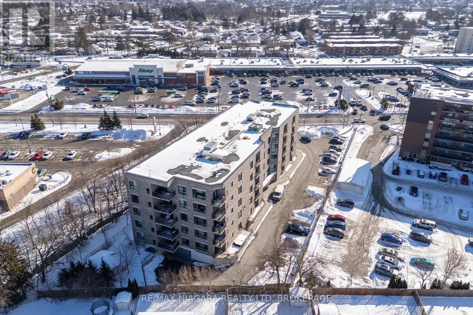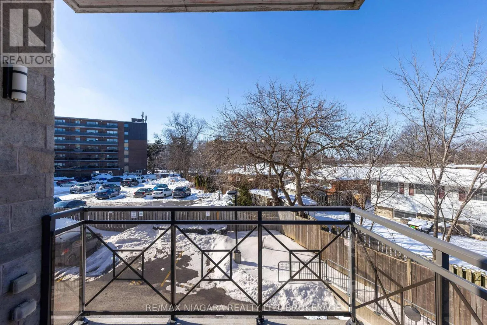 Cross Streets: Niagara St. ** Directions: Niagara Street to Scott Street. Welcome to 379 Scott Street in the highly sought-after North End of St. Catharines! Suite #209 is one of the building's largest at 1,205 sq. ft.. From the moment you step through the door, you'll be greeted by a warm and inviting foyer that leads into the open-concept main living space. Bathed in natural light from North West/West-facing windows, the living room, dining area, and kitchen are seamlessly connected.The kitchen is both functional and stylish, featuring ample cabinet storage, a beautiful backsplash, under-cabinet lighting, island seating, and an under mount double sink positioned perfectly beneath the west-facing window. Thoughtfully designed wood cabinetry maximizes space while maintaining a cohesive look throughout. Patio doors off the living room open to a balcony, perfect for relaxing or entertaining.The primary bedroom is bright and spacious, with a generously sized window and a walk-in closet offering wardrobe space on both sides, followed by a private 4-piece ensuite bathroom.The second bedroom is versatile, ideal as a bedroom, office, or den. Another 4-piece bathroom is conveniently located nearby and also houses the stackable washer and dryer for in-suite convenience.This suite blends space, light, and thoughtful design, making it a truly exceptional place to call home. *** BONUS*** CONDO FEES ARE PAID IN FULL UNTIL NOVEMBER 2026 (id:27476)