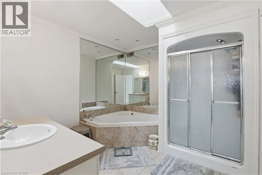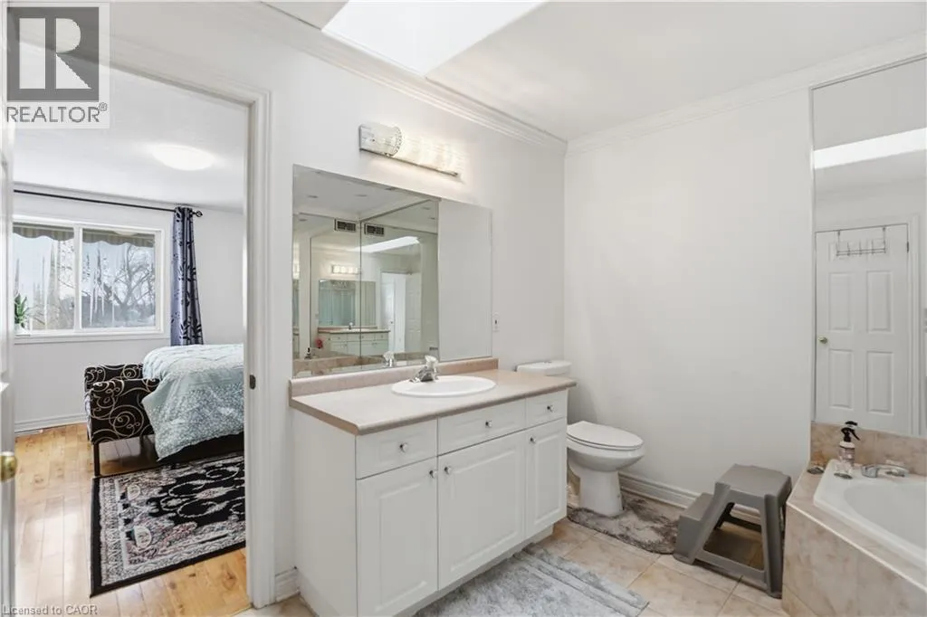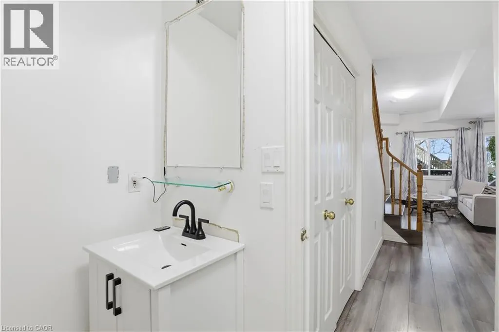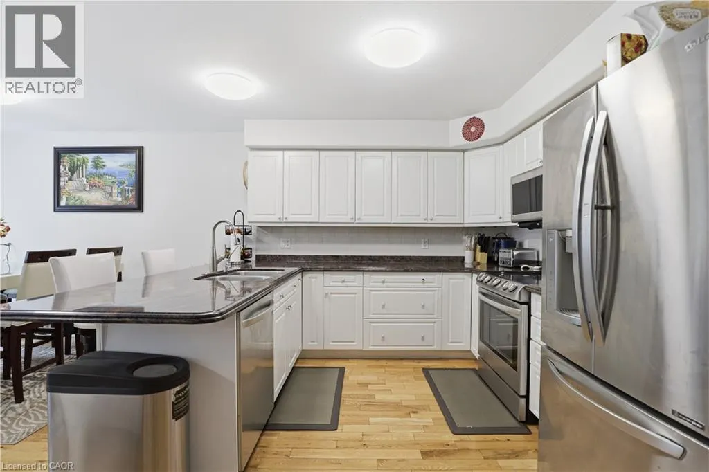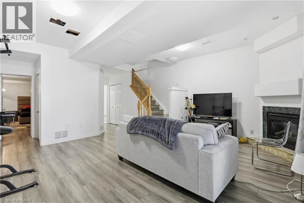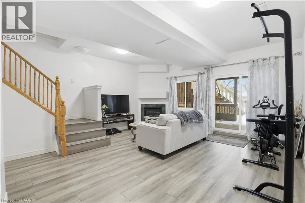 St. Paul Street West/ St. Paul Crescent 3+1 bedrooms freehold townhouse with walkout basement onto a two-tier deck. No Condo Fees. Ceramic tile in front hallway with storage closet and 2 pc bathroom. Recently installed hardwood floor throughout home (Basement to 2nd floor). Updated kitchen with granite countertops. Large open concept living/dining room with patio doors to a private two-tier deck. Deck has staircase down to backyard with patio doors leading into finished basement. Three large bedrooms. Master bedroom with his and her walk in closets and ensuite privileges - 4pc bath with Jacuzzi tub, stand up shower and an amazing skylight. Second skylight in hallway of second level. Fully finished basement features newly installed flooring throughout. Large recreation room with corner gas fireplace, 3 pc bathroom and an additional huge bedroom. Backyard features 6ft x 8 ft shed and newer fencing. Private two car driveway and attached one car garage with interior access. Very quiet secluded area. Away from the hustle and bustle of every day traffic. Please allow overnight notice for showings. (id:27476)