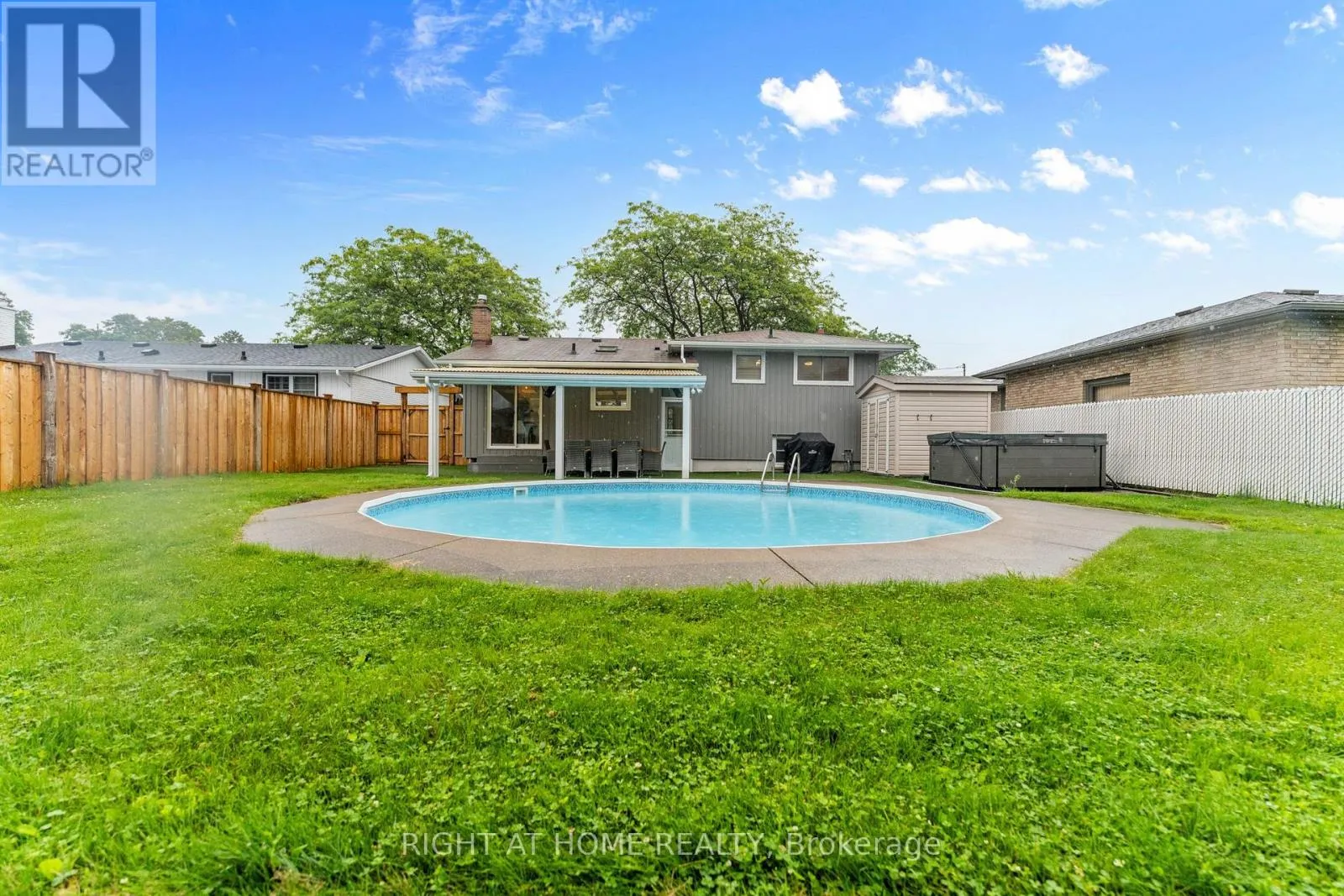 Cross Streets: Lakeshore & Arthur. ** Directions: Lakeshore Rd & Arthur St. Welcome to this beautifully updated and fully furnished home offering a functional layout and modern finishes throughout. The bright main level features hardwood flooring, a sunlit living room, and a custom kitchen with ceiling-height cabinetry, quartz countertops, tile backsplash, skylight, and a large centre island. Sliding doors provide access to the backyard.The upper level includes three well-sized bedrooms and a 4-piece bathroom, with the primary bedroom offering double windows and dual closets. The lower level features a renovated 3-piece bathroom and a spacious recreation room, while the fourth level provides additional finished space with an office nook, storage, and laundry.The home is fully furnished, including furniture, kitchenware, plates, and cups, and is move-in ready for immediate occupancy. The private backyard includes an in-ground pool, hot tub, covered patio with heaters, and full fencing. Conveniently located close to schools, shopping, transit, and major roadways. (id:27476)