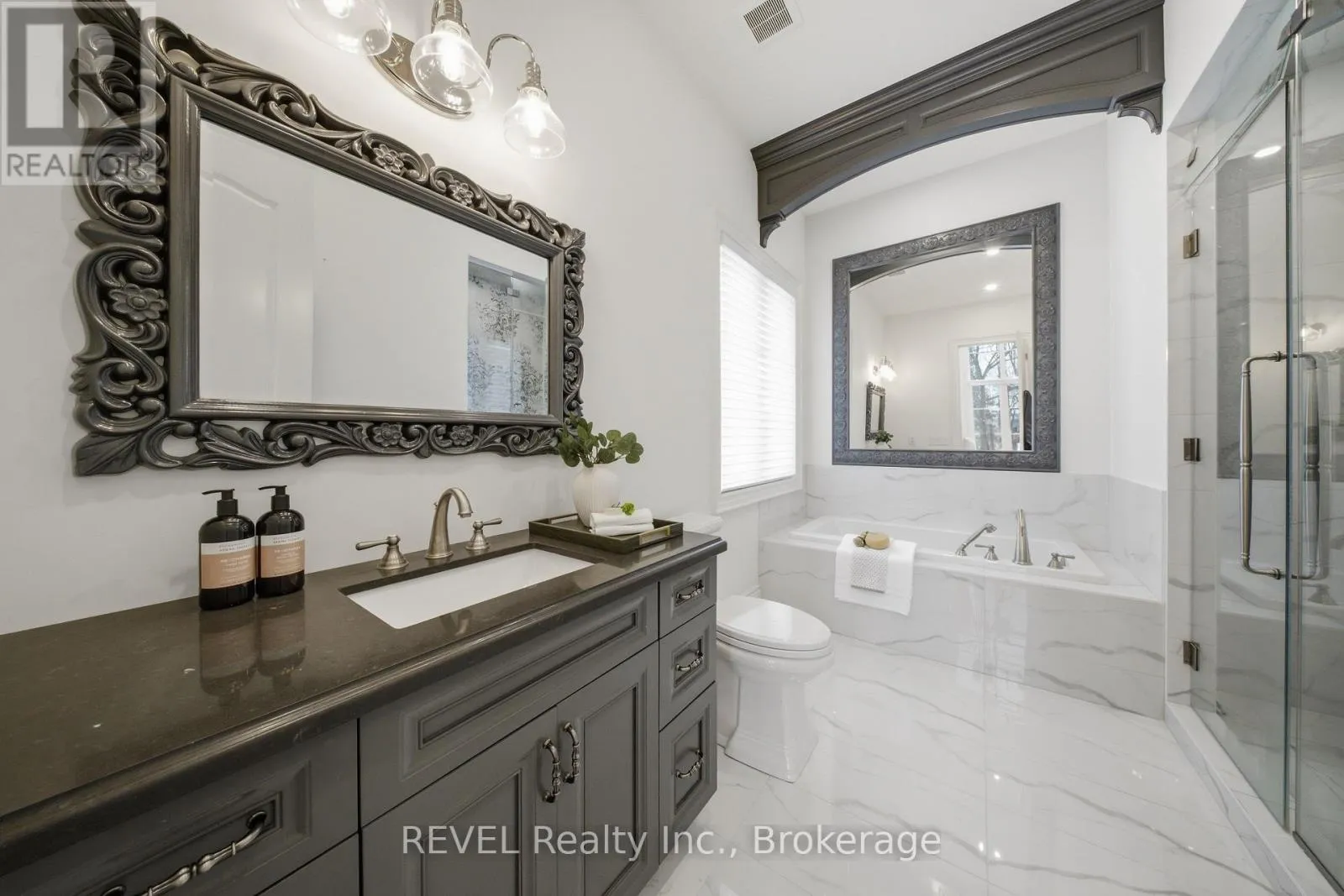 Cross Streets: Glen Morris and Village. ** Directions: Glen Morris Ave to Jacobson Ave to Arbourvale. Welcome to 25 Arbourvale Common, where refined design meets effortless living in the heart of St. Catharines' coveted South End. This stunning custom-built townhome impresses from the moment you arrive with its elegant stone exterior and timeless European-inspired architecture.Step inside to a light-filled main level featuring dramatic 20-foot ceilings, expansive windows with automated blinds, and a sleek fireplace that anchors the sophisticated living space. The chef-inspired kitchen is both beautiful and functional, showcasing a large quartz island, premium appliances, and a charming built-in breakfast nook-perfect for casual mornings or hosting in style.The main-floor primary retreat offers exceptional convenience and privacy, complete with a walk-in closet and a spa-like 4-piece ensuite. Upstairs, you'll find a generously sized guest bedroom, a beautifully appointed full bathroom, and a versatile office space easily converted into a third bedroom.The fully finished lower level expands the living space with an additional bedroom, elegant 3-piece bathroom, and an impressive recreation/media room ideal for movie nights or entertaining guests.Thoughtfully designed with high-end finishes throughout, this exceptional residence offers a rare combination of luxury, comfort, and low-maintenance living in an exclusive enclave. (id:27476)