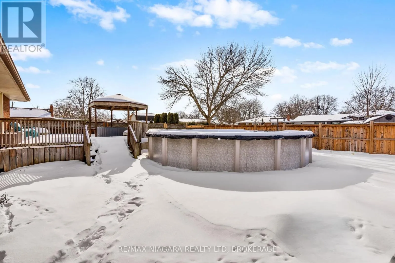 Cross Streets: Geneva & Linwell. ** Directions: Geneva to St. Columbia to Albany. Welcome to 44 Albany Drive in St. Catharines-a solid brick and angel stone bungalow originally built as a 3-bedroom home and currently configured as a spacious 2-bedroom layout, which can very easily be converted back to three bedrooms if desired. Inside you'll find refinished hardwood floors, a beautifully updated main floor bathroom, and a bright, functional kitchen with quality wood cabinetry, an island, and a true eat-in kitchen with space for a full-sized table. Large windows throughout fill the home with natural light, while the oversized primary bedroom offers room for a full suite plus an adjoining den with garden doors leading to the deck. The finished basement adds excellent living space with an L-shaped recreation room featuring a cozy gas fireplace, a large custom-built bar area perfect for entertaining, a newly remodeled 3-piece bathroom, a spacious laundry room, and plenty of storage. Outside, the home sits on a large 68' x 117' lot and offers a fully fenced backyard complete with an above-ground pool added in 2023, creating the perfect space for summer fun and entertaining, along with an attached oversized garage (25.8' x 14.4') that provides ample room for vehicles and additional storage. Situated in a quiet, established north-end neighbourhood, this home is just minutes from excellent schools, parks, walking trails, grocery stores, Fairview Mall, restaurants, public transit, and quick access to the QEW-offering the perfect balance of peaceful residential living with every convenience close at hand. (id:27476)