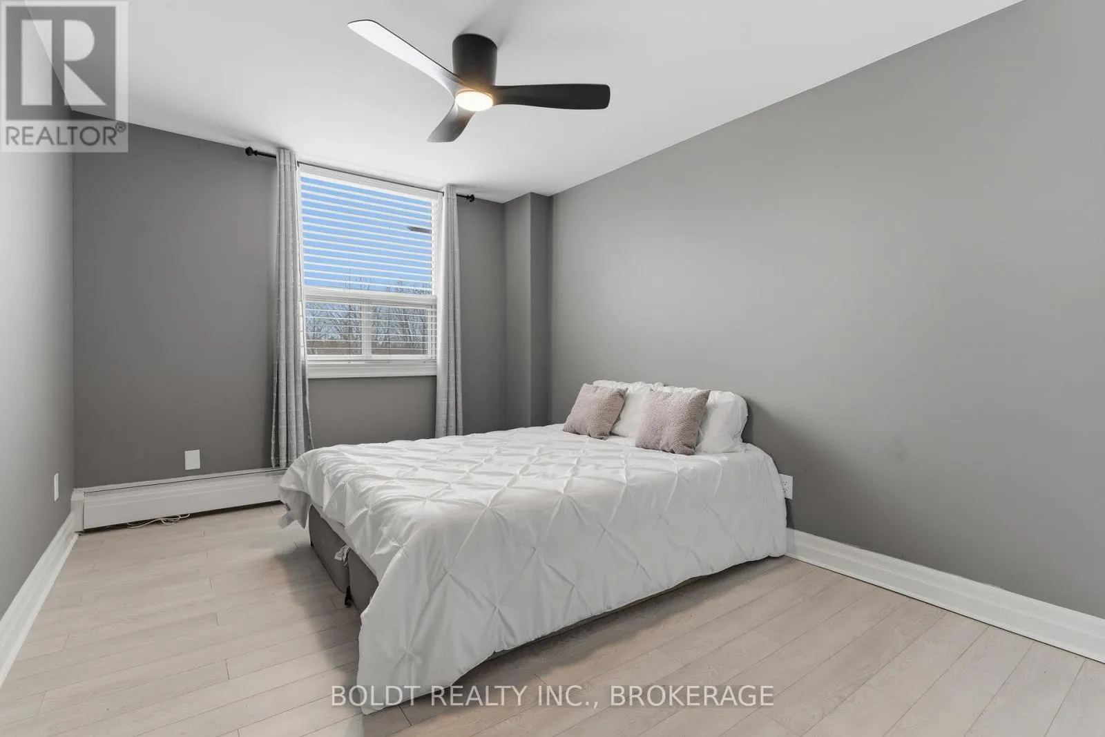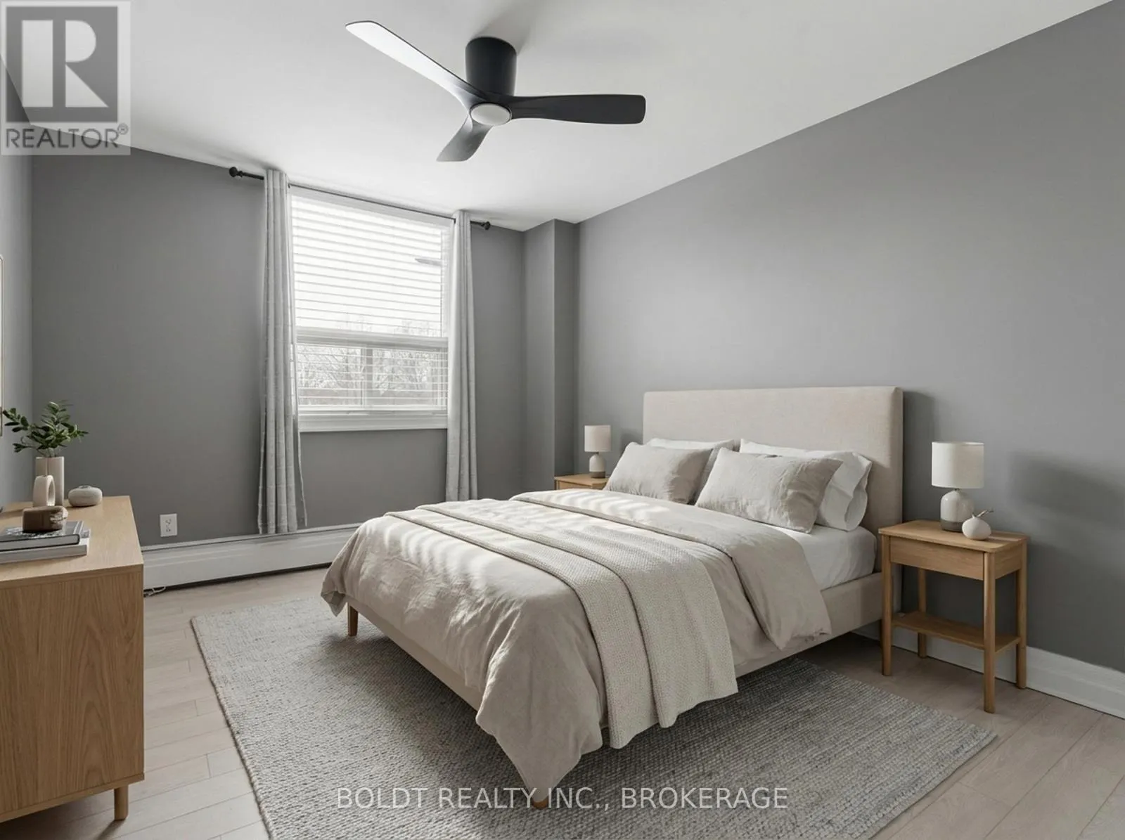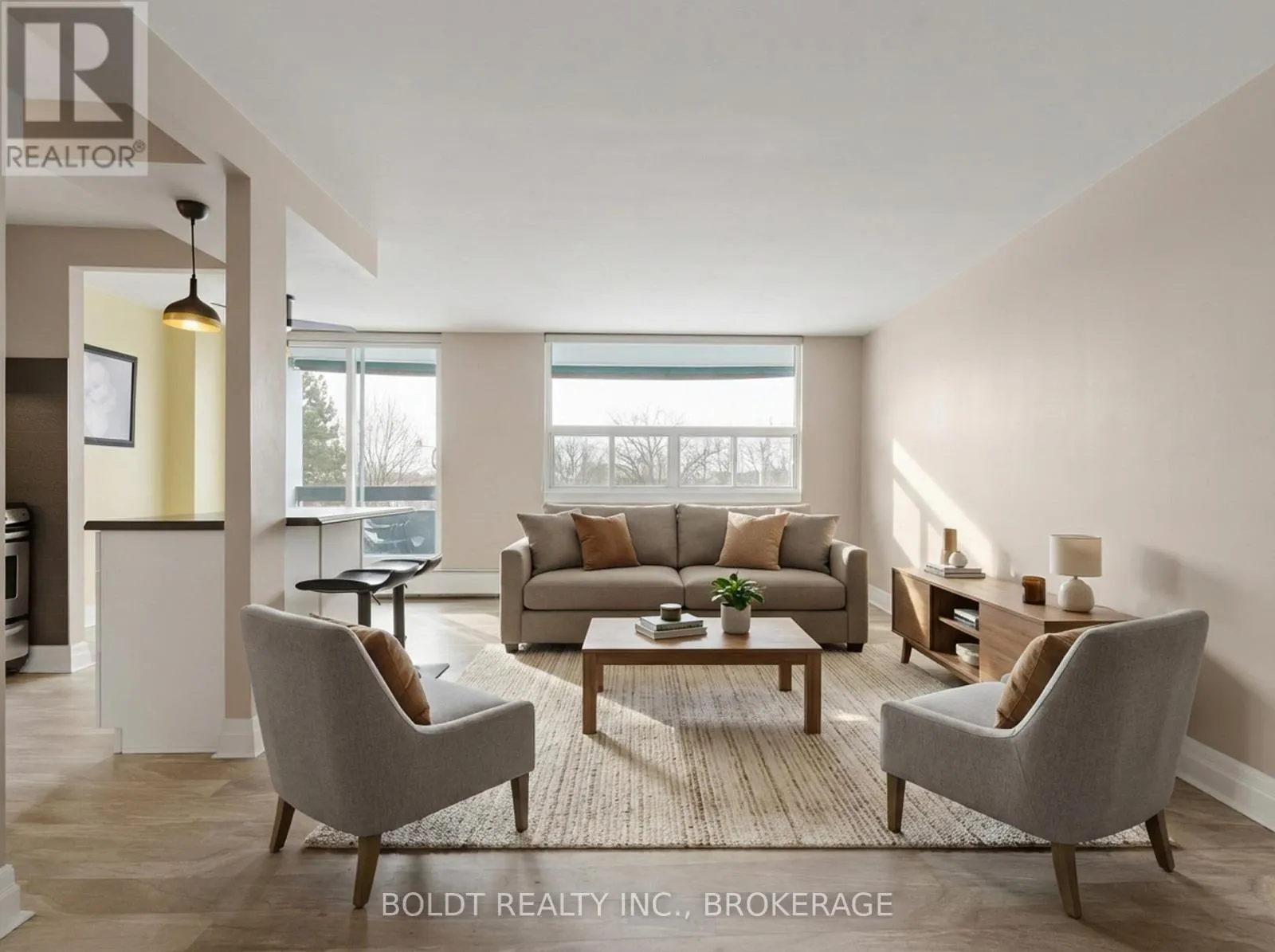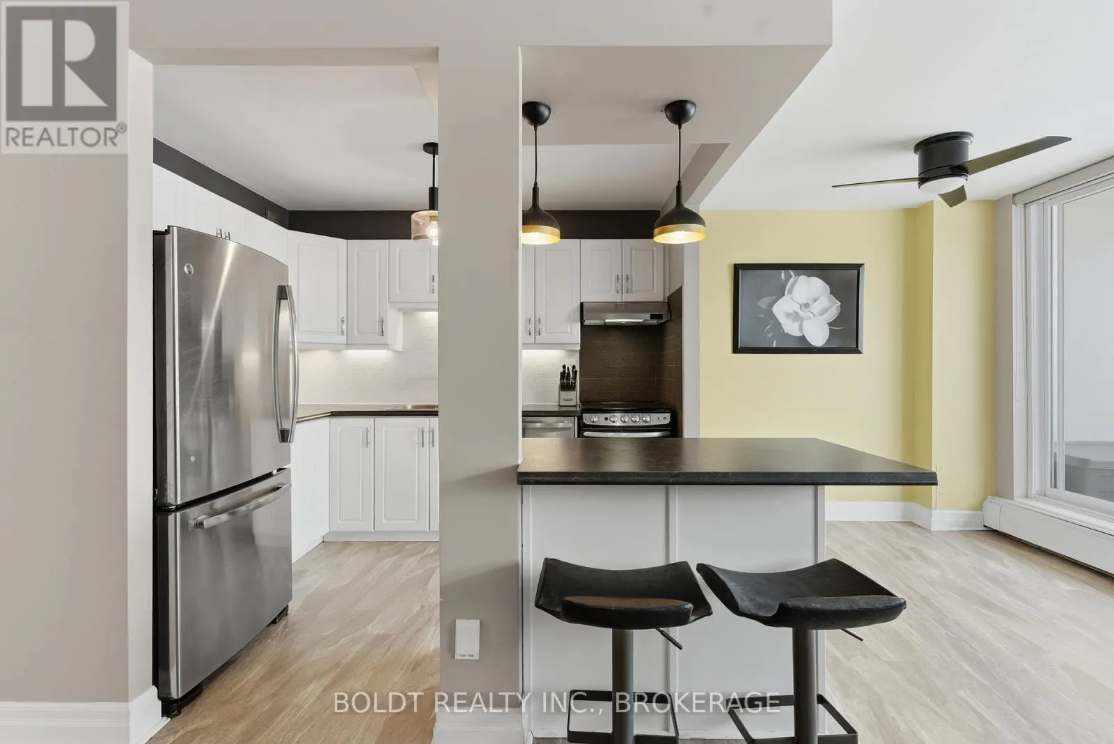 Cross Streets: Scott St & Geneva St. ** Directions: Take Scott St to Geneva St. Welcome to 409-365 Geneva Street. A north-end completely move in ready and fully renovated. Step inside to a bright open concept layout featuring new LVP flooring throughout and a sun filled main living space. The brand new kitchen has been thoughtfully redesigned with modern cabinetry, stainless steel appliances, and a functional island for added prep and seating space. The bathroom has been renovated, showcasing a sleek glass shower, new vanity, and modern tile flooring. The spacious bedroom features a large closet with a contemporary barn style door and convenient ensuite storage. All new roll out blinds have been installed throughout, offering privacy and a clean modern finish. Step outside to your private west facing balcony complete with a balcony awning, creating the perfect extension of your living space for relaxing afternoons and evening sunsets. One assigned parking space is included. Make this centrally located building your next easy condo living with lots of amenities including a gym, party room, laundry facilities, beautifully manicured grounds, and a car wash area. (id:27476)