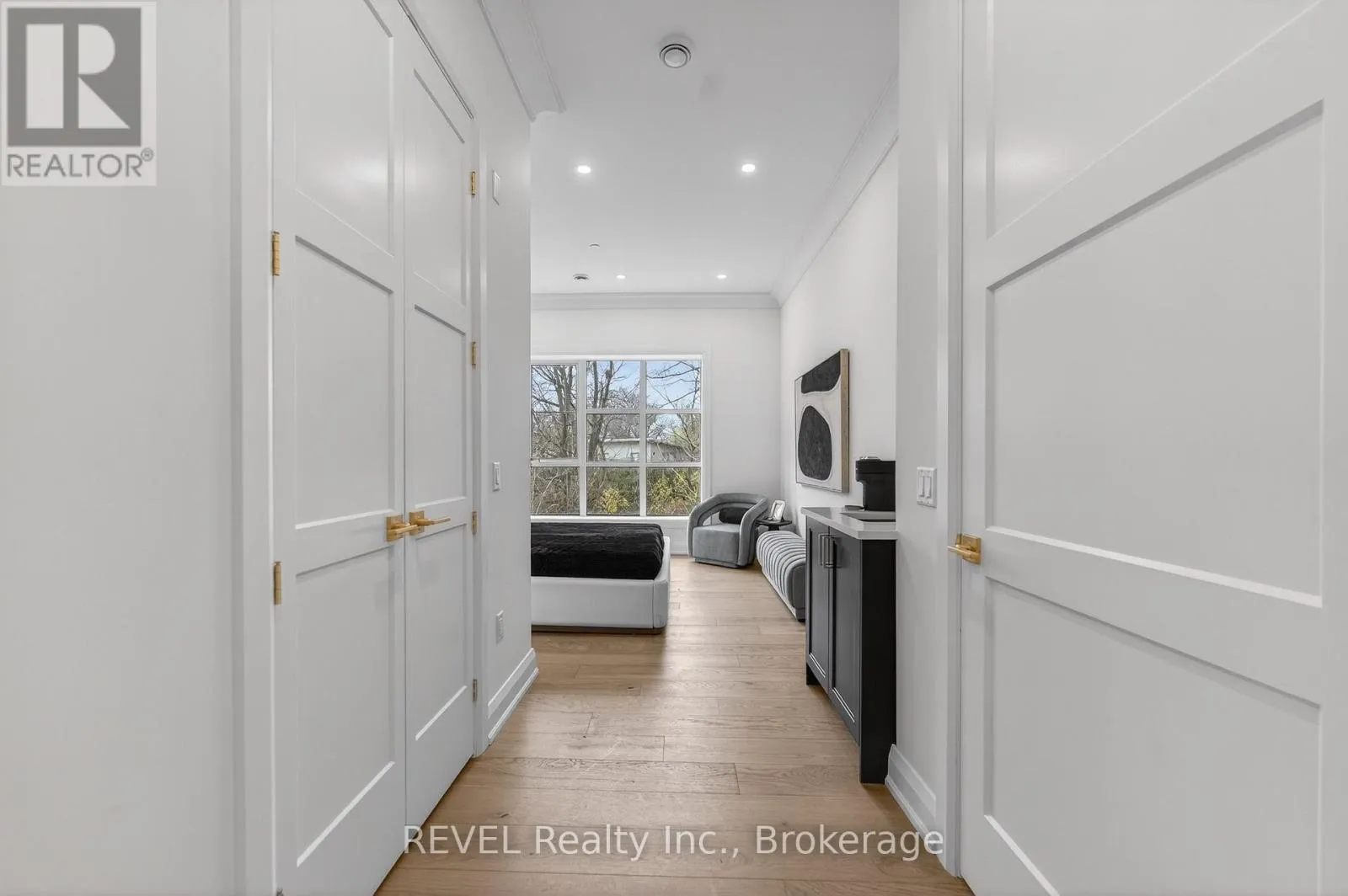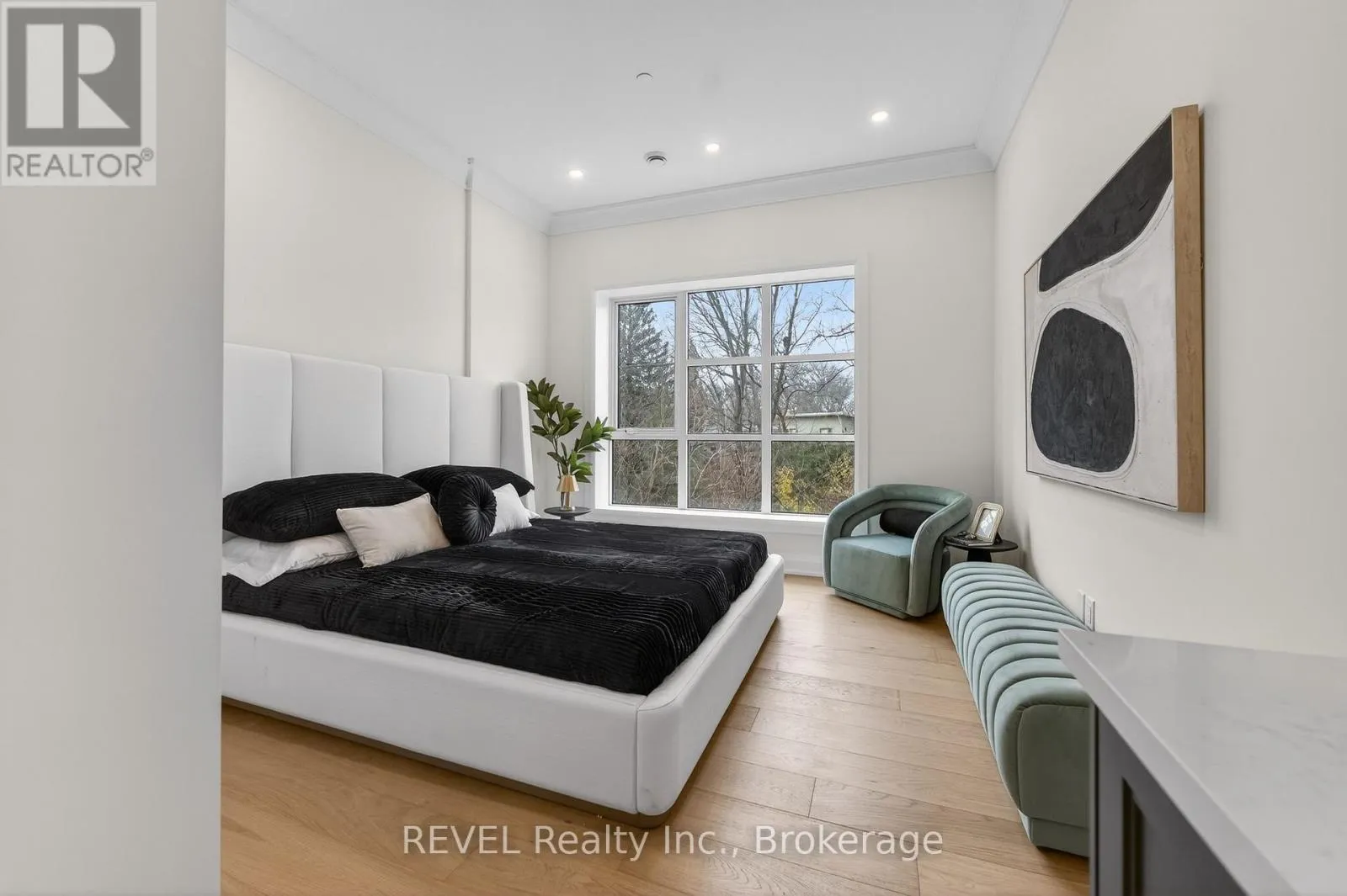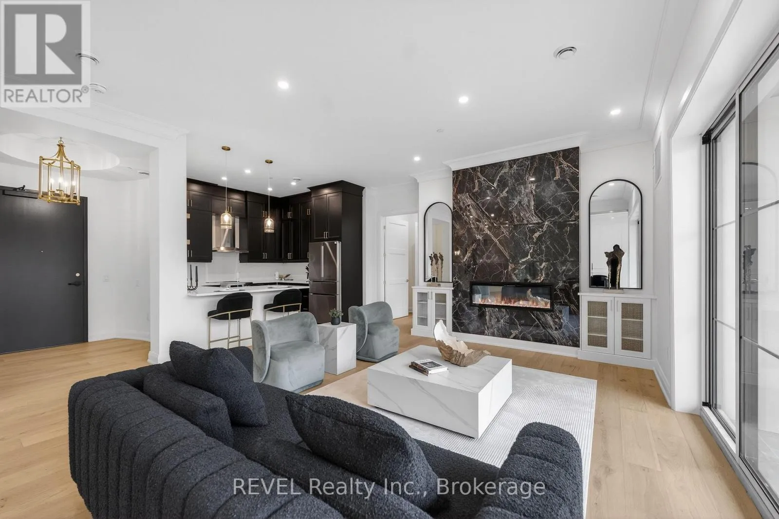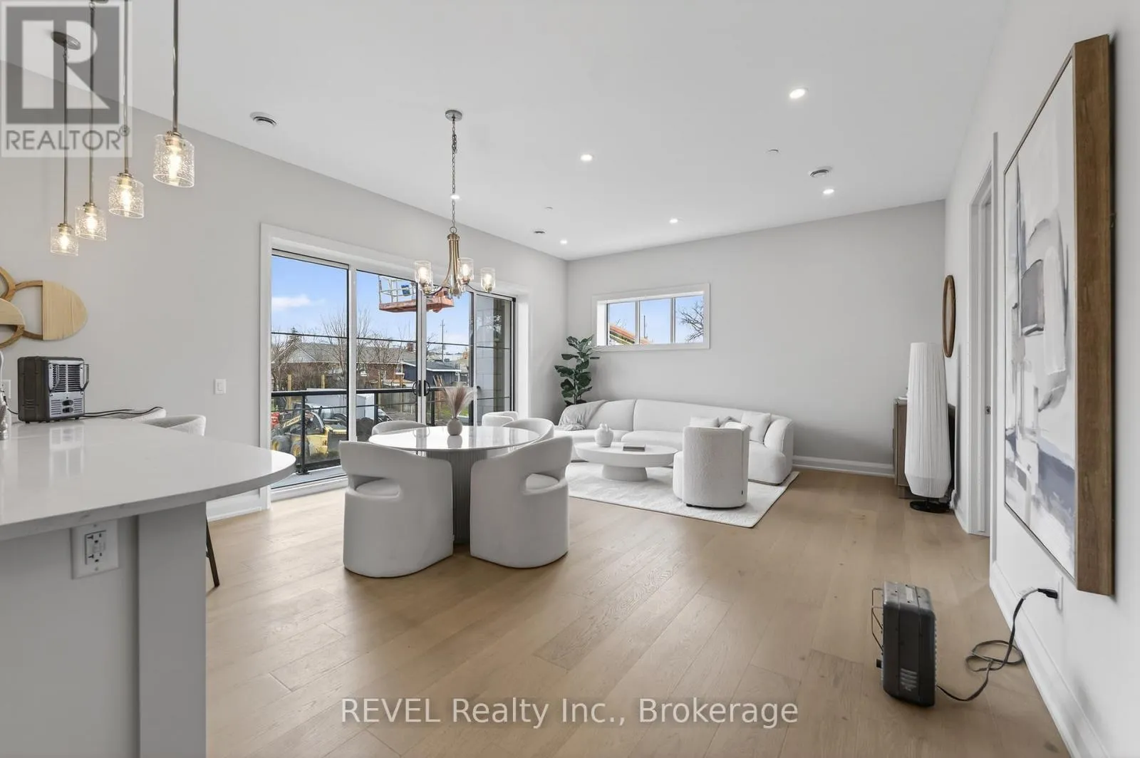 Glen Morris to Jacobson to Arbourvale Welcome to The Gaultier A2 at Coveteur, Niagara's newest address for luxury living. This stunning fourth-floor suite offers 1,457 sq. ft. of beautifully finished living space with 2 spacious bedrooms and captivating West-facing views of the surrounding natural scenery. Designed for modern elegance, this open-concept suite features 10-ft ceilings, 8-ft doors, and an architecturally distinctive circular foyer. Personalize your home with one of four curated designer decor stylesParisian, Scandinavian Chic, New York Loft, or European Traveller each crafted for timeless sophistication. The kitchen boasts designer cabinetry with crown moulding, quartz countertops, a tile backsplash, and an eat-in island perfect for entertaining. Enjoy year-round comfort with an Echobee smart thermostat and an individual high-efficiency MagicPak system with fresh air ventilation. Elegant three-pane sliding doors open to a private balcony offering serene views. Building amenities include a landscaped outdoor terrace, party room with kitchen, library and lounge with two-sided fireplace, and a fitness and yoga studio. One underground parking space and locker included. Built strong with Insulated Concrete Forms (ICF) for superior quality and energy efficiency. Construction is underway with occupancy expected Fall 2026. Visit www.coveteur.ca for floorplans and more details. (id:27476)