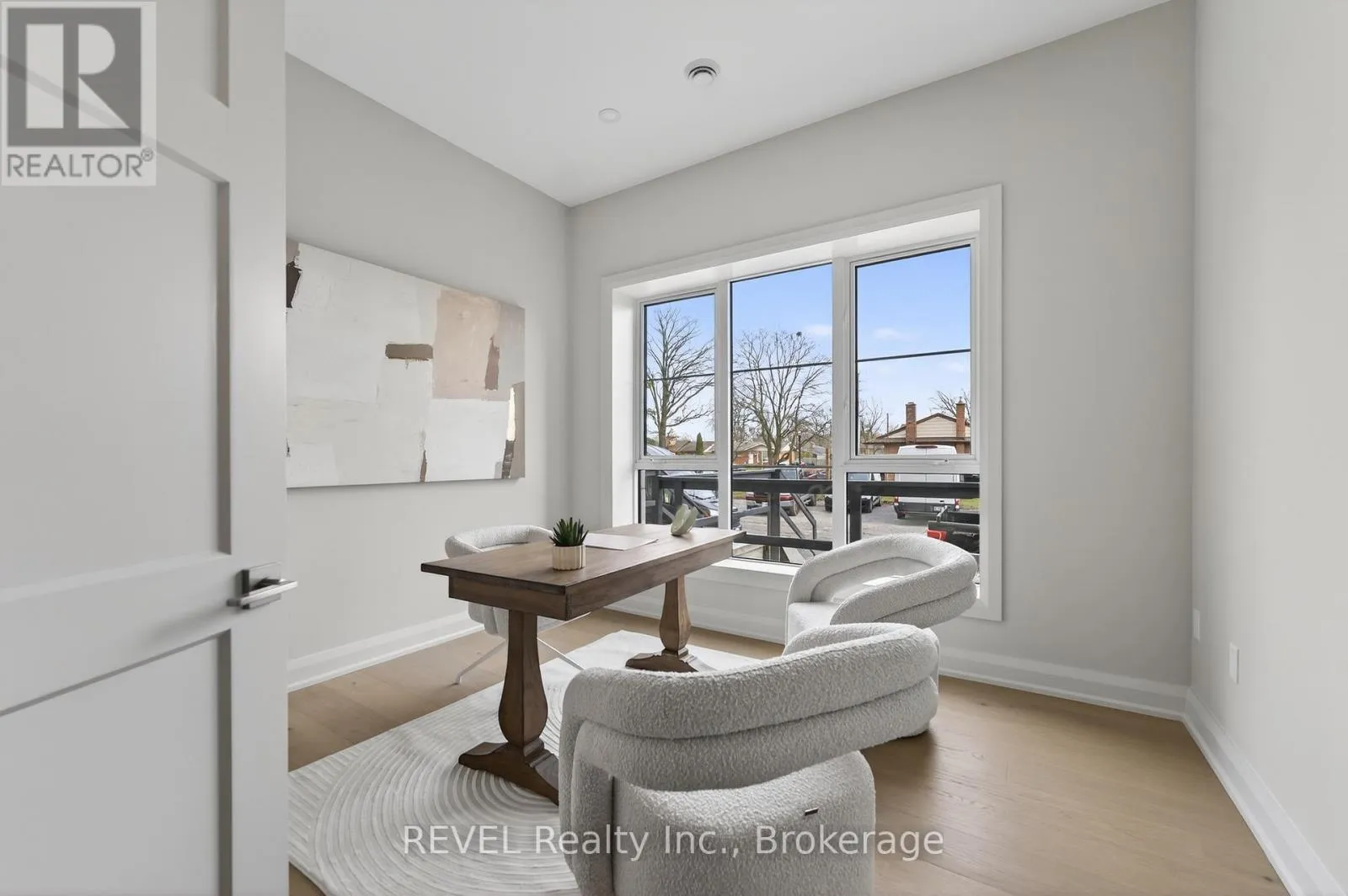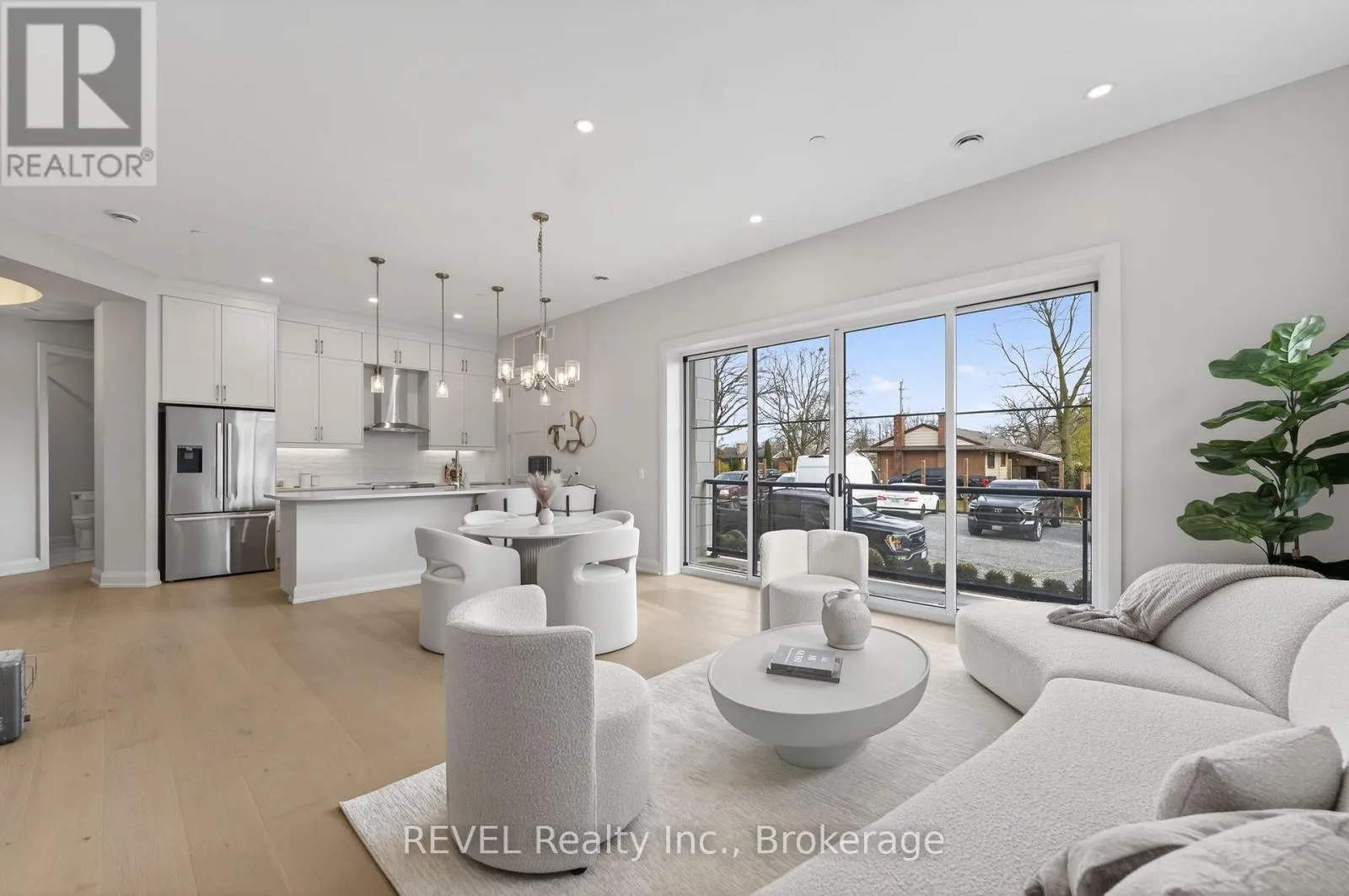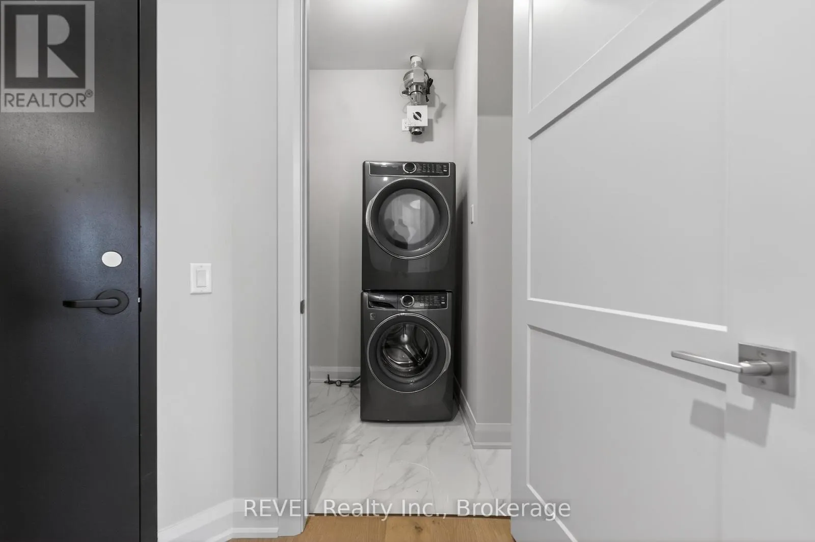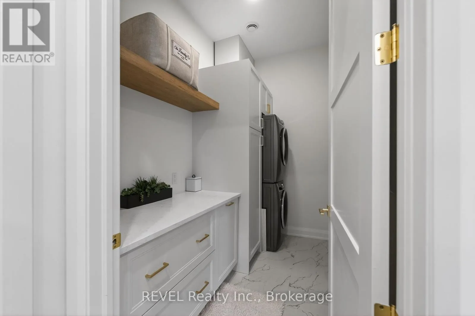 Glen Morris to Jacobson to Arbourvale Welcome to The Gaultier A2 at Coveteur, Niagara's newest address for luxury living. This stunning fourth-floor suite offers 1,457 sq. ft. of beautifully finished living space with 2 spacious bedrooms and captivating West-facing views of the surrounding natural scenery. Designed for modern elegance, this open-concept suite features 10-ft ceilings, 8-ft doors, and an architecturally distinctive circular foyer. Personalize your home with one of four curated designer decor stylesParisian, Scandinavian Chic, New York Loft, or European Traveller each crafted for timeless sophistication. The kitchen boasts designer cabinetry with crown moulding, quartz countertops, a tile backsplash, and an eat-in island perfect for entertaining. Enjoy year-round comfort with an Echobee smart thermostat and an individual high-efficiency MagicPak system with fresh air ventilation. Elegant three-pane sliding doors open to a private balcony offering serene views. Building amenities include a landscaped outdoor terrace, party room with kitchen, library and lounge with two-sided fireplace, and a fitness and yoga studio. One underground parking space and locker included. Built strong with Insulated Concrete Forms (ICF) for superior quality and energy efficiency. Construction is underway with occupancy expected Fall 2026. Visit www.coveteur.ca for floorplans and more details. (id:27476)