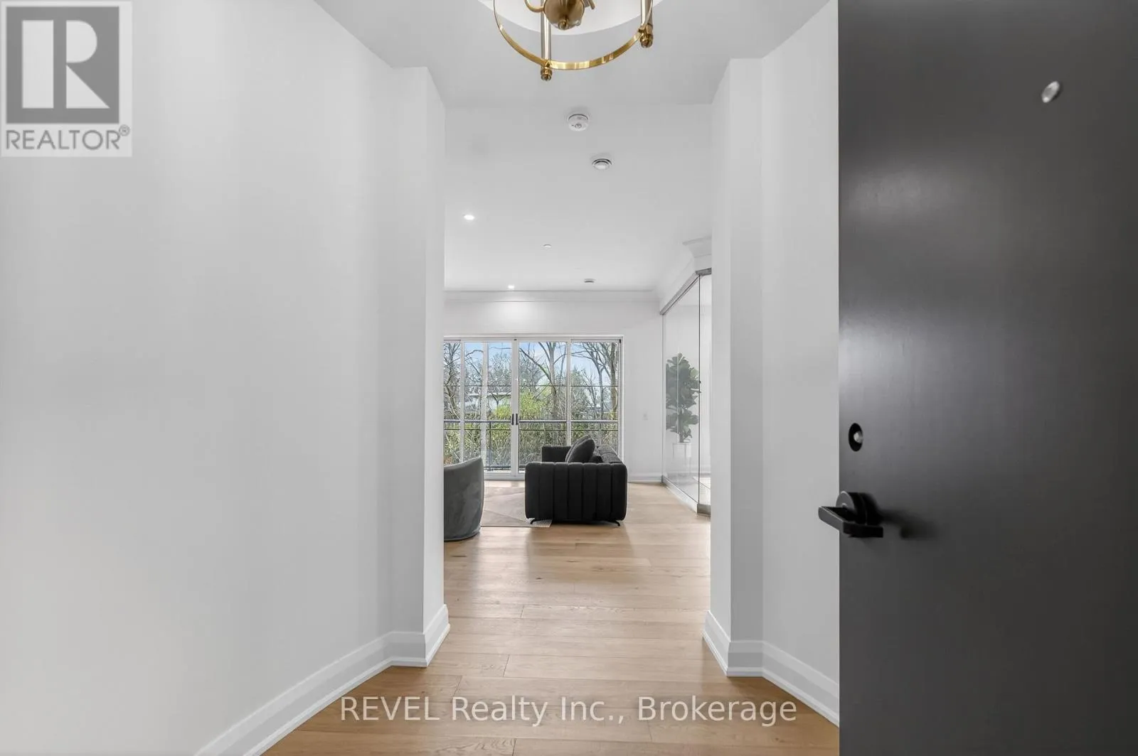 Glen Morris to Jacobson to Arbourvale Welcome to The Cardin at Coveteur, Niagara's newest address for luxury living. This stunning second-floor suite offers 1,160 sq. ft. of beautifully finished living space with 1 spacious bedroom and captivating West-facing views of the surrounding natural scenery. Designed for modern elegance, this open-concept suite features 10-ft ceilings, 8-ft doors, and an architecturally distinctive circular foyer. Personalize your home with one of four curated designer decor styles Parisian, Scandinavian Chic, New York Loft, or European Traveller each crafted for timeless sophistication. The kitchen boasts designer cabinetry with crown moulding, an eat-in island perfect for entertaining and a spacious pantry. Enjoy year-round comfort with an Echobee smart thermostat and an individual high-efficiency MagicPak system with fresh air ventilation. Elegant three-pane sliding doors open to a private balcony offering serene views. Building amenities include a landscaped outdoor terrace, party room with kitchen, library and lounge with two-sided fireplace, and a fitness and yoga studio. One underground parking space and locker included. Built strong with Insulated Concrete Forms (ICF) for superior quality and energy efficiency. Construction is underway with occupancy expected Fall 2026. Visit www.coveteur.ca for floorplans and more details. (id:27476)