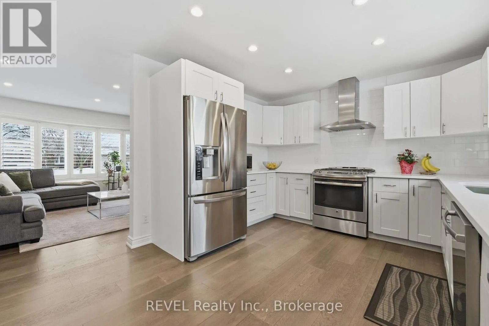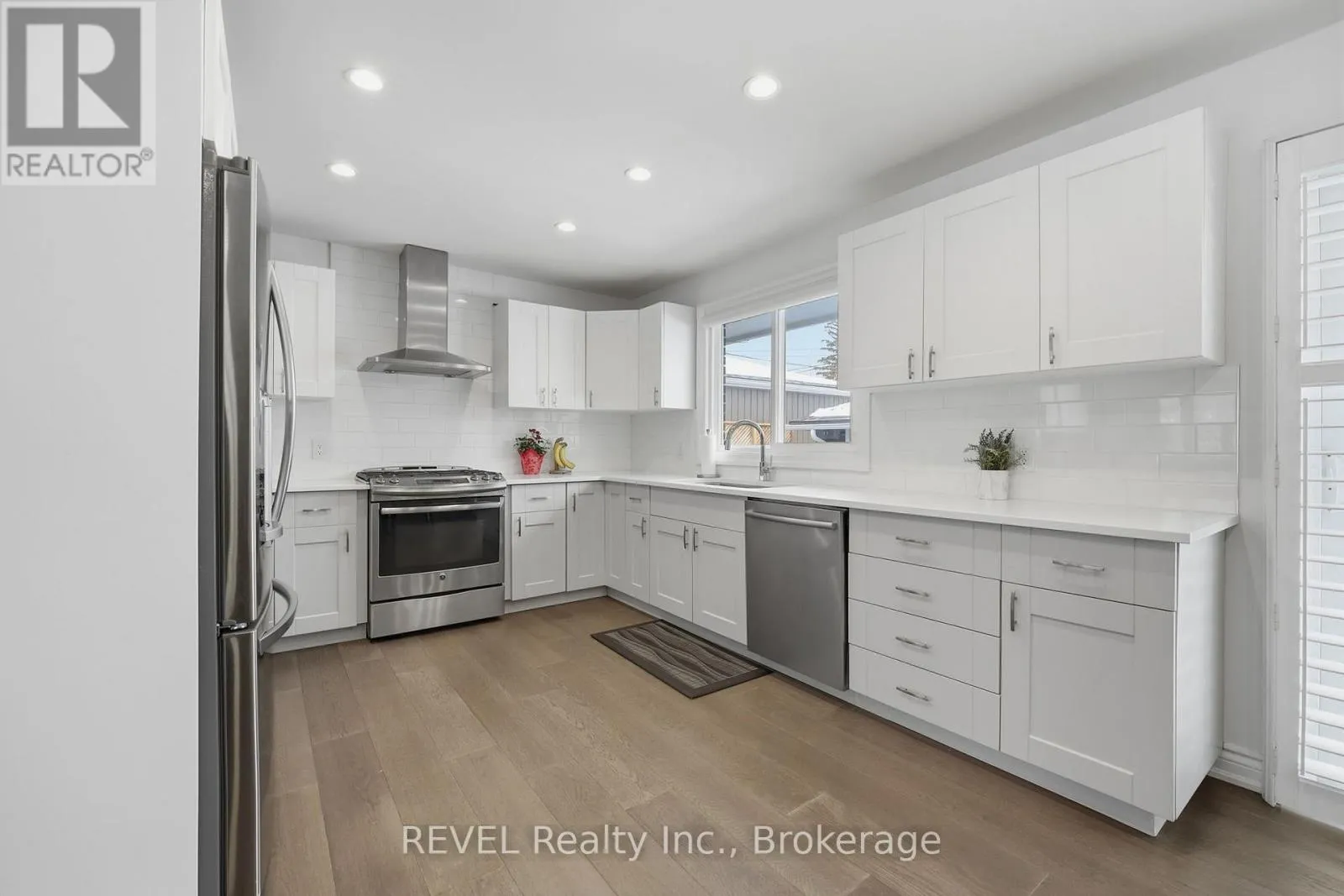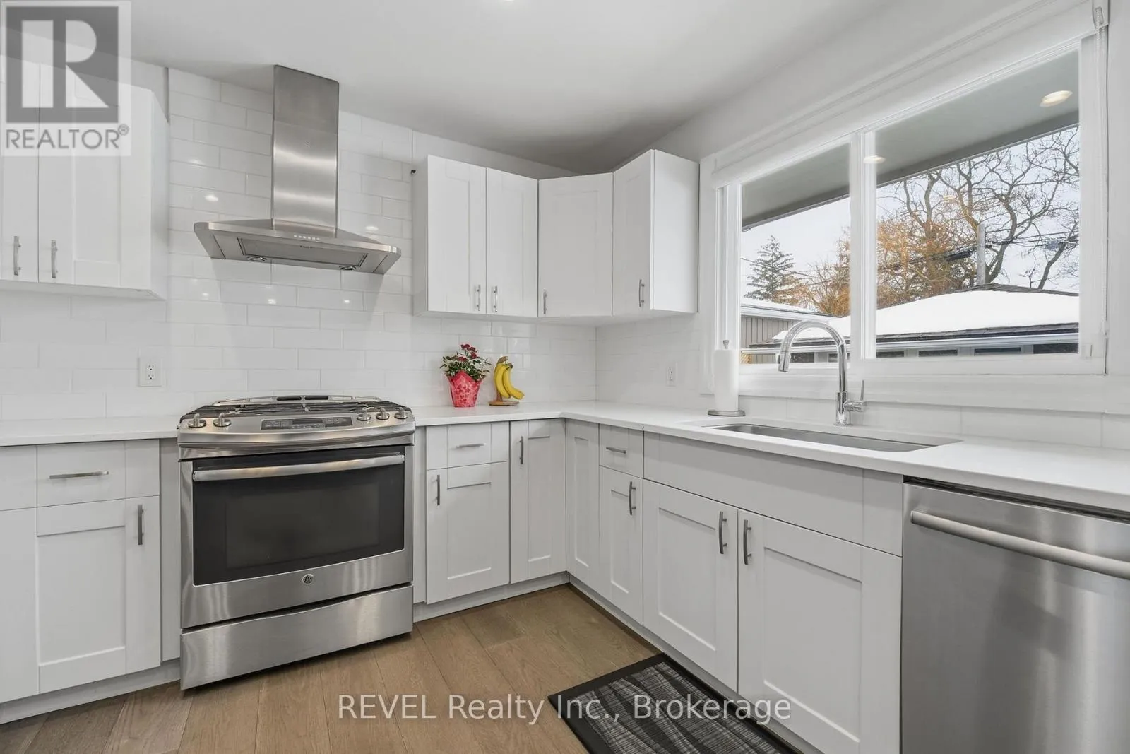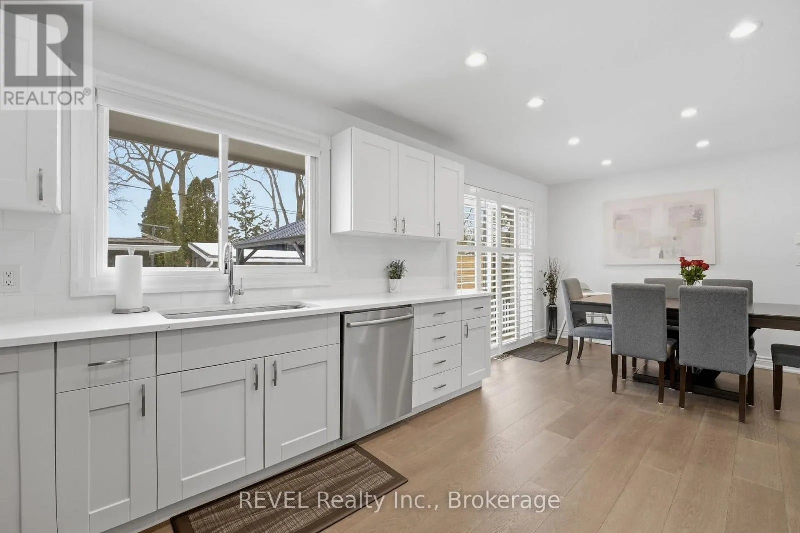 Cross Streets: Louth & Crestcombe. ** Directions: Louth to Crestcombe. Located on a quiet street in a highly desirable neighbourhood, this fully updated 4 bedroom, 3 bathroom home offers modern design, functional space, and exceptional versatility. With three bedrooms on the upper level and one bedroom on the lower level, this layout is ideal for families of all sizes. The main living area features a bright open concept design with hardwood flooring throughout. The updated kitchen blends effortlessly into the dining and living spaces, offering a clean, modern aesthetic that is perfect for both everyday living and entertaining. The lower level includes the fourth bedroom and benefits from a separate entrance, providing potential for an in law setup, extended family living, or added privacy for guests. Outside, you will find a detached garage along with a separate workshop, ideal for storage or hobbies. The private setting is complemented by a prime location just minutes from Ridley College, highway access, the hospital, and a wide selection of grocery stores and everyday amenities. A move in ready home offering style, flexibility, and convenience in one of St. Catharines' most sought after locations. (id:27476)