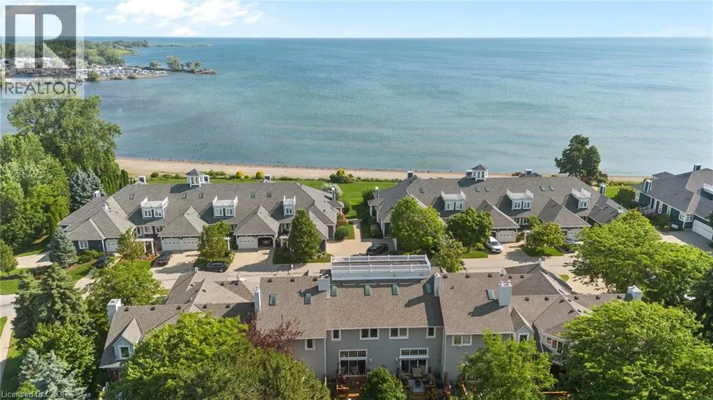 Lakeshore to Broadway to Lakeside Discover maintenance-free lakeside living in beautiful Port Weller, with wonderful lake views and nestled in a gorgeous neighborhood, this community combines luxurious living with an affordable price. Located steps away from Jones Beach and Lake Ontario, this 2-storey townhouse boasts 2 bedrooms, 3 bathrooms and 1,575 square feet of finished living space, making this a true hidden gem. As you enter, you'll be greeted by a bright and inviting home, thanks to the large windows that flood the space with natural light. The luminous kitchen boasts ample cupboard and countertop space for meal prepping and offers gorgeous lakeside views. Enjoy meals in the eat-in dining room or unwind in the cozy sunken living room with its high ceilings and walkout to your private backyard. An electric fireplace adds warmth on cool nights. Upstairs, you'll find two bedrooms, including an oversized primary bedroom with double closets for all your storage needs. Look out the window in the secondary bedroom to find unobstructed lake views, perfect to wake up to in the morning. The second floor also includes two 4-piece bathrooms with one of them having lakeside views. The basement offers additional living space with a 2-piece bathroom, an oversized rec room, and a laundry area. Step outside to a private deck in the backyard, perfect for relaxing on summer nights. This hidden gem also includes a community pool to enjoy after a long, warm day. With its blend of comfort and luxury, this townhouse is your ideal lakeside retreat. (id:27476)
