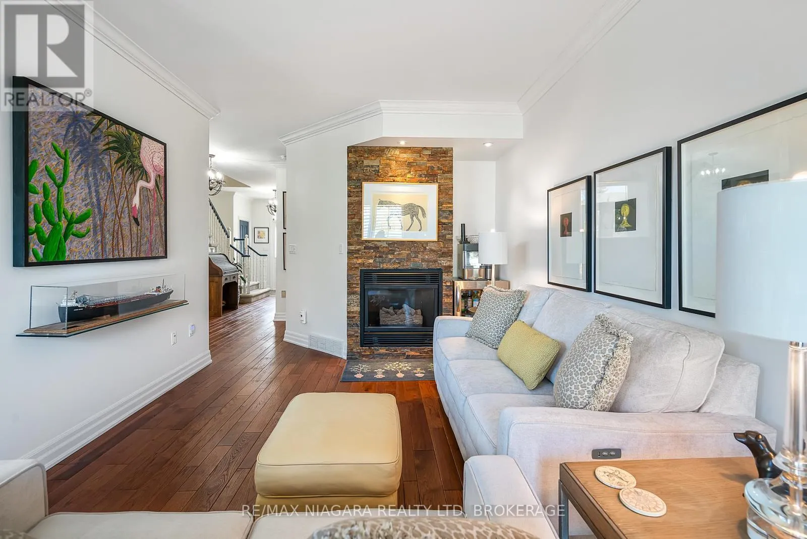 Cross Streets: Lakeshore Rd & Ontario St. ** Directions: Ontario St to Lakeshore Rd. A notable address "On The Henley" Townhouse Condos in the Port Dalhousie area, is a well kept complex. The nautical theme of its architectureis a reflection of the working port it used to be. The water view is of historical significance of the first 4 canals. When you walk into PortDalhousie you are stepping back in time, to a time close to nature. Close to 12 Mile Creek and Martindale Pond, that leads into Lake Ontario.Nestled overlooking the Henley, youre just minutes from the highway and steps away from scenic walking trails, beach, public transit,professional services, Costco, NOTL outlet stores and top schoolboards. This immaculate 2-storey townhouse boasts a spacious design that-sperfect for modern living. Enjoy an updated kitchen with plenty of storage and stone countertops, gorgeous hickory hardwood floors with staggered widths, and a fully finished basement- everything you need to create your perfect home! The main floor has been beautifully updated,bright and welcoming space. Revel in the warmth of a gas fireplace, and step outside to your back patio equipped with an automatic awning perfect for outdoor entertaining. Retreat to the oversized primary bedroom with its own peaceful covered balcony, a convenient walk-through closet and 4pc ensuite. On the second level you will also find two additional generous bedrooms with ample closet space, a well-appointed 4-piece bathroom and a convenient laundry area. The fully finished basement offers a large recreation room and an additional 3-piece bath, alongwith utility and storage space to meet all your needs. Some of the many updates and notables include newer furnace and air conditioning, new fridge, washer, dryer, power Retractable deck awning, brick cobble stone driveway, natural gas BBQ connection and front porch tile. Don-t missout on this exceptional opportunity schedule your visit today! (id:27476)