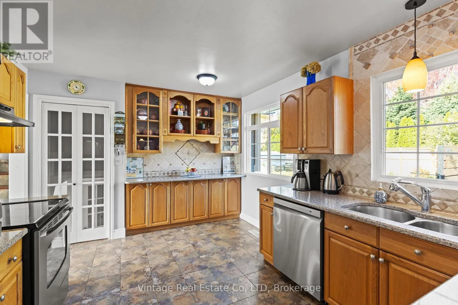 Cross Streets: N Service rd - Gregory rd N. ** Directions: North service rd, to Gregory rd N, left on sunset Lane. A special home on a street as beautiful as its name - Sunset Lane.Tucked away on a quiet, paved laneway, yet close to amenities and with quick highway access, this well-built sidesplit offers a rare mix of tranquility and a friendly neighbourhood feel.Inside, enjoy four bedrooms, two full bathrooms, and spacious, sun-filled living areas. The well-kept oak kitchen flows to the dining area and backyard walkout, featuring a jacuzzi hot tub, while big front windows showcase the beautifully landscaped 134' x 124' lot. A 2.5-car garage provides space for a handyman, hobbyist, or classic car enthusiast. Built by the original owner and only lived in by two families, this home is a testament to solid construction and enduring quality.A rare combination of space, charm, privacy, and location - all on one of Niagara's most desirable streets. (id:27476)