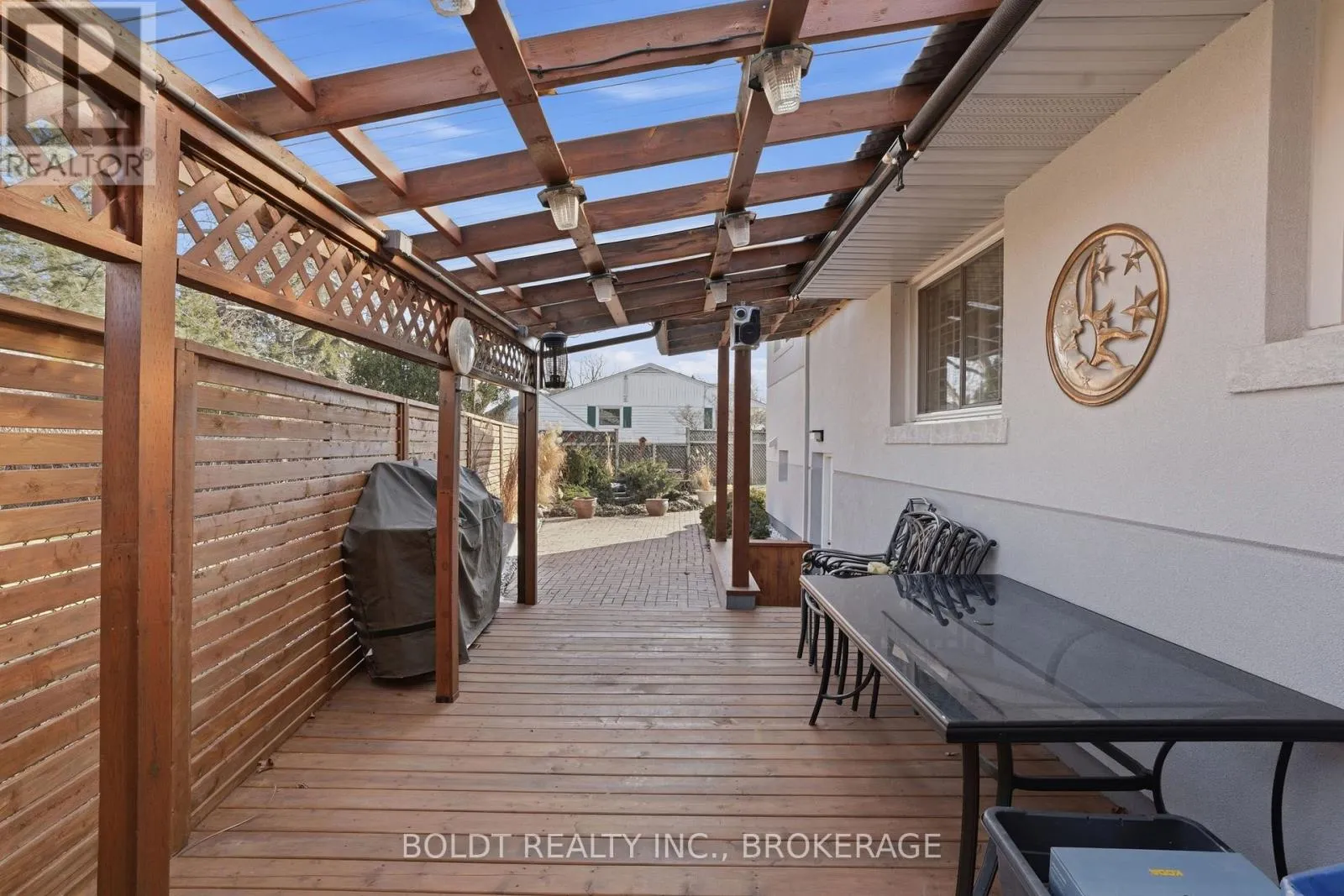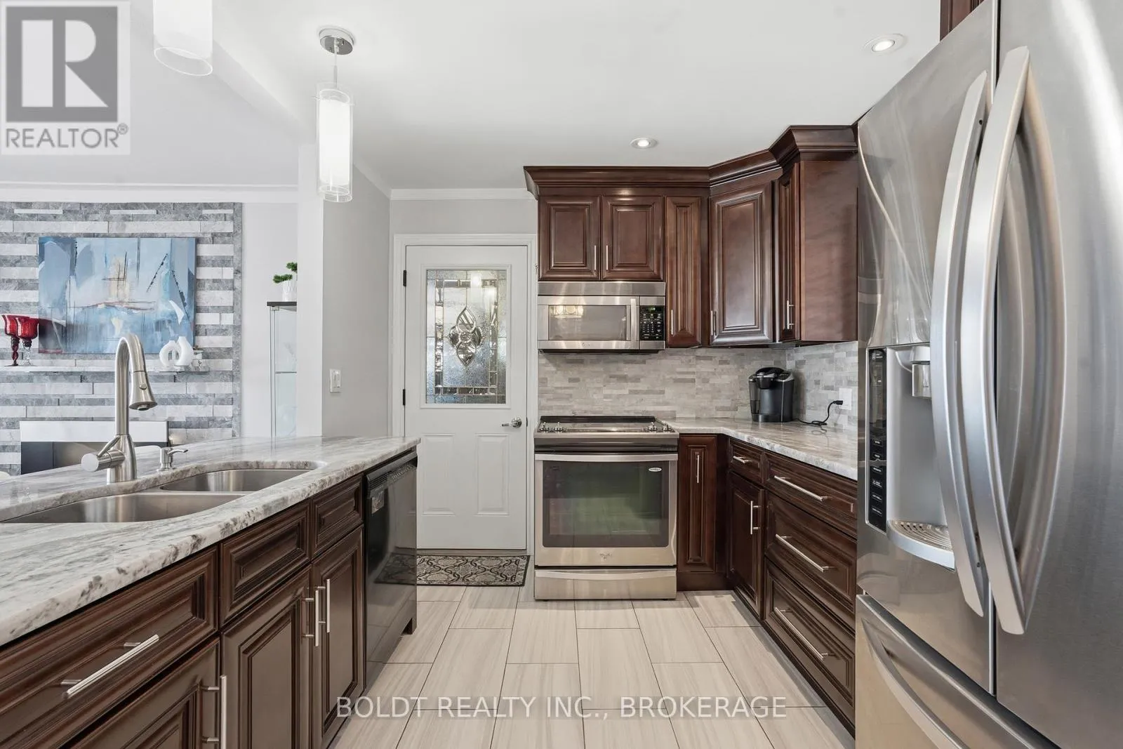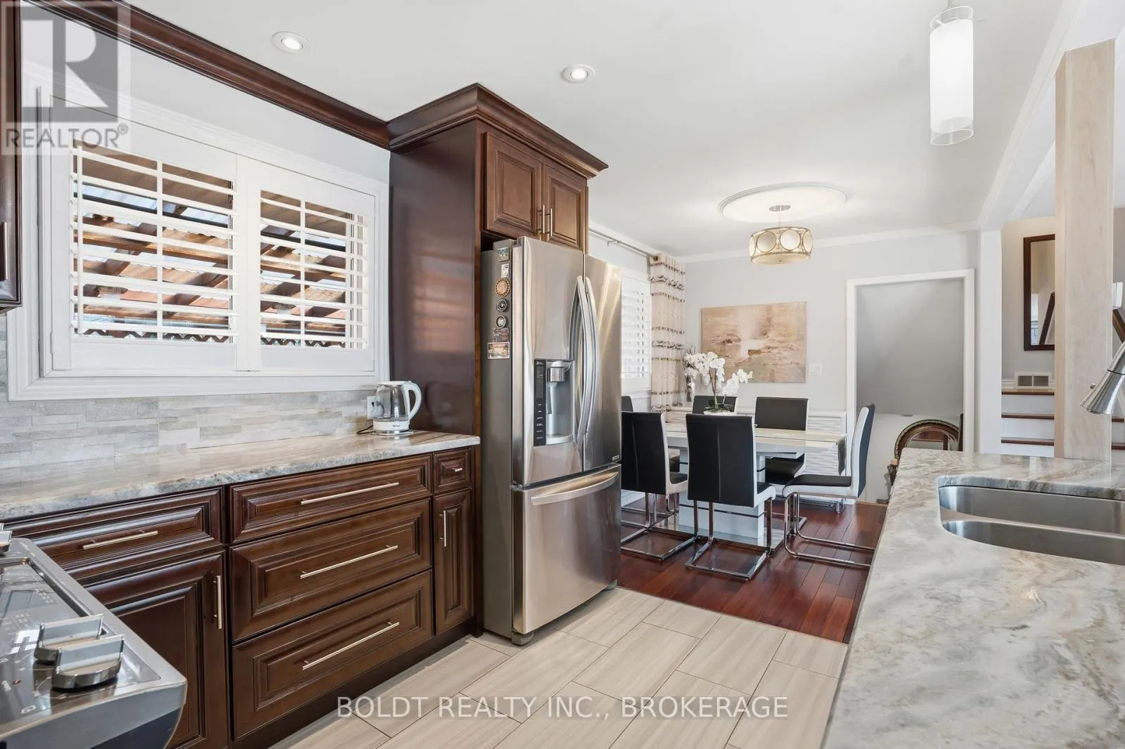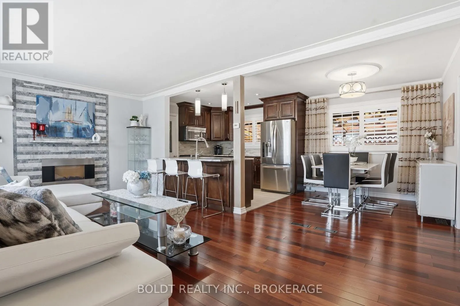 Vine Street/Lakeshore Road Welcome to this beautifully maintained North-end St. Catharines side-split, ideally located just minutes from Lake Ontario, Sunset Beach, scenic trails, parks, shopping, and top-rated schools. This home offers the perfect balance of comfort, lifestyle, and convenience for families and downsizers alike. Lovingly cared for by the same family for nearly 40 years, pride of ownership is evident throughout. The bright open-concept main floor creates a warm and inviting space where everyday living and entertaining come together effortlessly. The living room features an electric fireplace with ambient lighting and flows seamlessly into the updated kitchen, complete with quartz countertops, stainless steel appliances, custom cabinetry, and a large island perfect for gathering with family and friends. Upstairs offers three spacious bedrooms and a beautifully updated spa-inspired bathroom with modern finishes. The finished lower level provides additional living space with a cozy recreation room centered around a wood-burning fireplace with granite surround, along with a stunning oversized custom shower, heated floors in the basement bathroom and hallway, ceiling speakers, and pot lights for added comfort. This home has also seen numerous important updates over the years including stucco exterior (2023), garage doors and openers (2023), furnace and A/C (2021), roof (2019), owned tankless water heater, and newer windows and doors. Step outside to enjoy a private fenced backyard featuring a covered porch, patio, decorative pond with lighting and heater, vegetable garden, and over 20 manicured shrubs. An interlocking circular driveway provides parking for up to five vehicles, while the heated two-car garage with summer kitchen offers incredible flexibility. A wonderful opportunity to own a thoughtfully updated home in one of St. Catharines' most desirable north-end communities. (id:27476)
