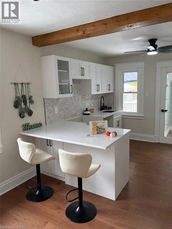 Beautifully Renovated, Move-In Ready, and Packed With Value This stunning updated home delivers the perfect mix of character, comfort, and modern design. Located on a quiet one-way street in a family-friendly area, this 3+1 bedroom, 2 bathroom home has been extensively upgraded and is completely move-in ready. Step inside to an inviting open-concept main floor featuring over 1,500 sq. ft. of finished living space, exposed wood beams, and brand new engineered hardwood flooring. The stylish new kitchen is finished with white quartz countertops, updated fixtures, and a layout that flows beautifully for both everyday life and entertaining. Both full bathrooms have been tastefully renovated with sleek tile work and premium shower panel systems. The main floor offers three bedrooms all on one level, making this an ideal fit for families or downsizers wanting convenience without sacrificing space. The finished basement expands your options with a 4th bedroom, a large rec room, and additional flexible space for work, fitness, or relaxation. Step out back to a spacious deck overlooking the yardâperfect for hosting, unwinding, or enjoying the warmer months. Big-ticket upgrades including a new lifetime roof, exterior improvements, newer windows, upgraded electrical, and modern lighting provide real peace of mind. Priced at $485,000, this is a rare chance to own a fully updated home in a great location close to schools, parks, shopping, and transit. Stylish, functional, and turn-key â this one is ready to impress. (id:27476)