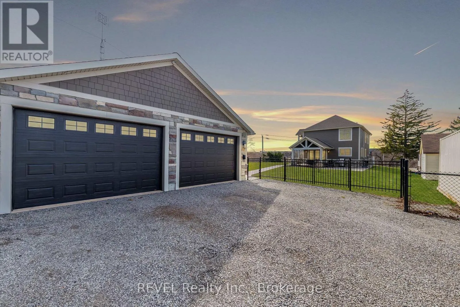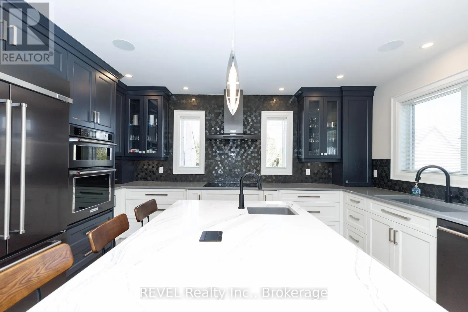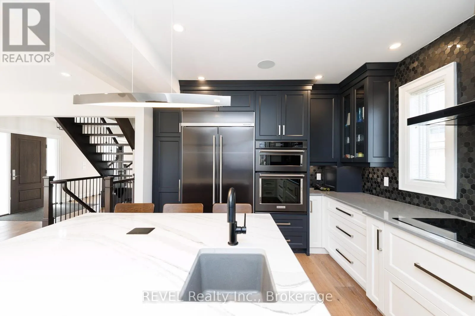 OAKDALE AVE TO LINCOLN AVE TO BRISSON LANE Five major points you'll love about this 5 bed, 4 bath, 3000 total sq.ft Custom built home (2016) that separates it from the rest at this price point. 1. Location - perched high above the Merritt Trail overlooking a treed ravine just minutes from Hwy 406. Situated on a 100' x 108' Lot at the end of a private laneway for the privacy you desire. 2. Total custom build with professional architectural design & interior finishes all chosen with an Interior design consultant. Custom kitchen, baths, & A frame Timber roofing to start. 3. Systems - this house was built with efficient systems in mind. Manifold system delivering filtered water throughout the house. Heated snow melt system for front entrance, balcony off Primary room, and basement walkout. Security system installed with 8 cameras throughout the property inside and out to monitor any activity with DVR recording. Generac generator (22kw) for back power up if needed. 17 built in speakers hard wired through out the house. 200 amp service. 4. Garage - 1200 sq.ft or 30'x40 heated and cooled detached garage with 2 pc bathroom. Two 12'x8" garage doors with Lift master openers. Sound proofed with acoustic drywall with no wiring inside the walls, all wiring ran through conduit. 100 amp service. House and garage is lined with hardie board cement board siding and natural stone. 5. In Law suite - heated walk out from the basement allows separate entrance to basement for In-law possibilities for extra income if desired. This home is truly a one of a kind custom build with so many features you wont get at this price point. House shows immaculate in person and a pleasure to view! (id:27476)