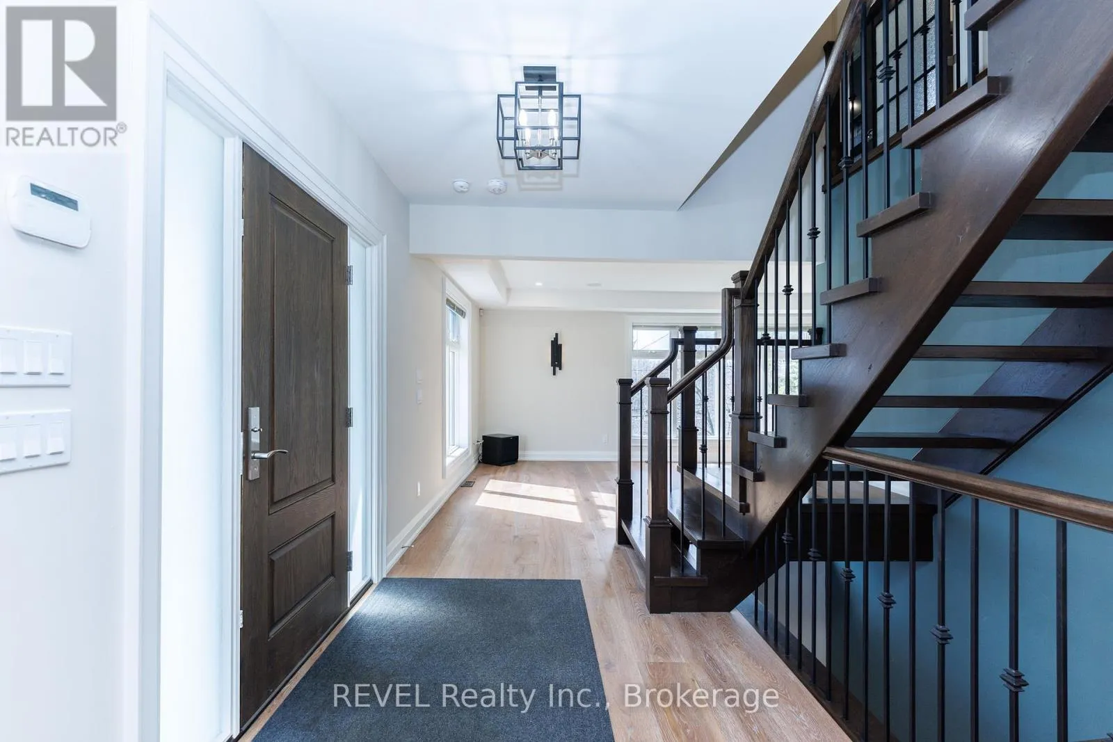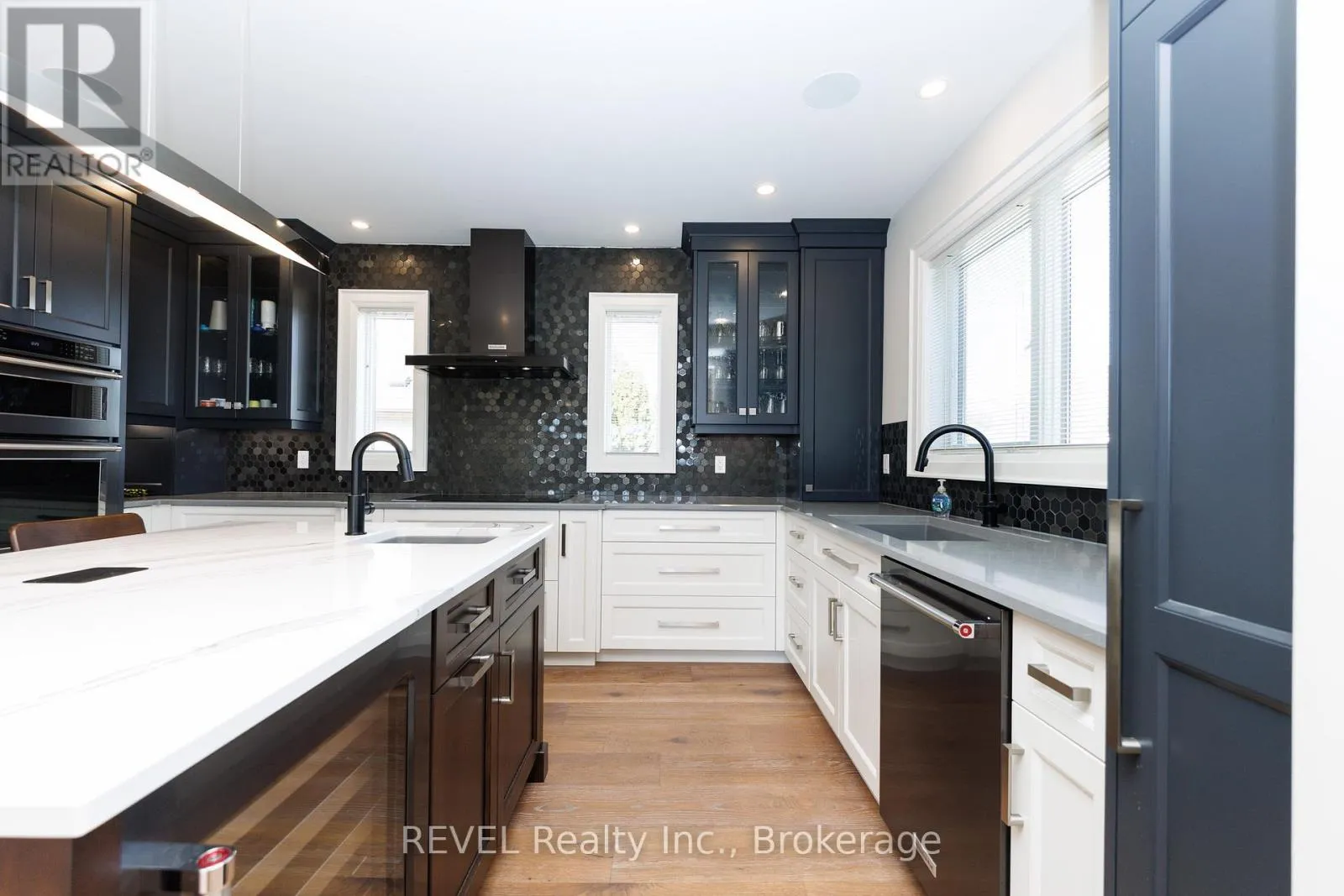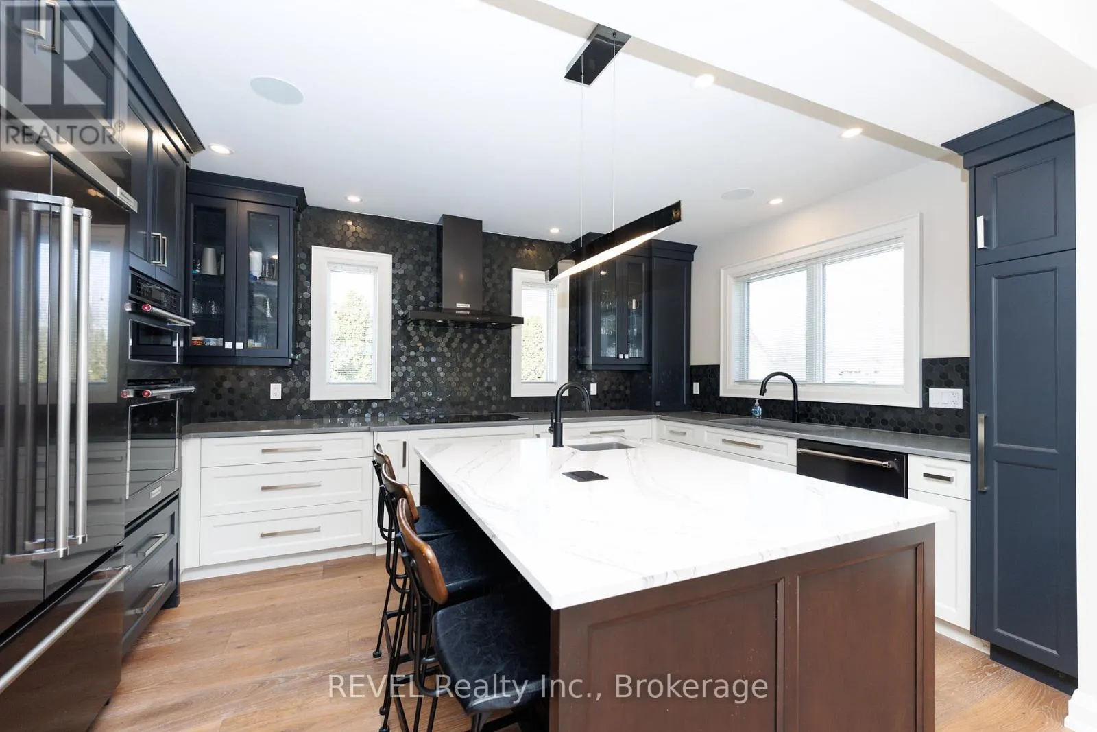 OAKDALE AVE TO LINCOLN AVE TO BRISSON LANE Five major points you'll love about this 5 bed, 4 bath, 3000 total sq.ft Custom built home (2016) that separates it from the rest at this price point. 1. Location - perched high above the Merritt Trail overlooking a treed ravine just minutes from Hwy 406. Situated on a 100' x 108' Lot at the end of a private laneway for the privacy you desire. 2. Total custom build with professional architectural design & interior finishes all chosen with an Interior design consultant. Custom kitchen, baths, & A frame Timber roofing to start. 3. Systems - this house was built with efficient systems in mind. Manifold system delivering filtered water throughout the house. Heated snow melt system for front entrance, balcony off Primary room, and basement walkout. Security system installed with 8 cameras throughout the property inside and out to monitor any activity with DVR recording. Generac generator (22kw) for back power up if needed. 17 built in speakers hard wired through out the house. 200 amp service. 4. Garage - 1200 sq.ft or 30'x40 heated and cooled detached garage with 2 pc bathroom. Two 12'x8" garage doors with Lift master openers. Sound proofed with acoustic drywall with no wiring inside the walls, all wiring ran through conduit. 100 amp service. House and garage is lined with hardie board cement board siding and natural stone. 5. In Law suite - heated walk out from the basement allows separate entrance to basement for In-law possibilities for extra income if desired. This home is truly a one of a kind custom build with so many features you wont get at this price point. House shows immaculate in person and a pleasure to view! (id:27476)