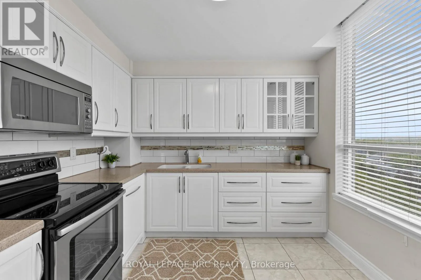 Cross Streets: Glenridge and Glen Morris. ** Directions: Glenridge to Glen Morris to Towering Heights. This highly sought-after suite presents almost 1900 sqft of meticulously refined living space, perfectly framed by the breathtaking scenery of the Niagara Escarpment. The suite offers a thoughtful layout with 2 bedrooms and 2 bathrooms, creating a perfect blend of convenience and comfort. Enter through a welcoming foyer that transitions into an open, bright, and expansive main area. Oversized windows are strategically placed to flood the space with natural light, creating a bright, airy atmosphere. The timeless sophistication of elegant crown molding flows seamlessly into every room. Culinary dreams come alive in the updated eat-in kitchen, a chef's delight featuring quartz countertops, custom soft-close cabinetry, a striking decorative backsplash, and sleek stainless steel appliances. This stylish and functional kitchen is ready for any occasion. The serene primary bedroom is generously sized and includes a walk-in closet and a luxurious 4-piece ensuite bath, complete with a separate stand-alone tub and walk-in shower. A second bedroom and full guest bath offer essential flexibility. Furthermore, a versatile bonus den can serve as your perfect home office, cozy reading nook, comfortable sitting room, or private library. Enjoy the outdoors from your private open-air balcony, the perfect spot for morning coffee or evening sunsets, with the iconic escarpment view always in sight. The unit ensures daily ease with in-suite laundry and ample storage. Life at 3 Towering Heights is an amenity-rich experience. Residents enjoy a heated saltwater pool, spa, sauna, garden terrace, party room, BBQ area, exercise room, underground parking, and a convenient car wash. With a perfect location close to transit, shopping, and local amenities, this penthouse delivers the best of easy condo living-all without sacrificing space, style, or your peace of mind. Experience elevated living at its finest; this rare opportunity awaits! (id:27476)