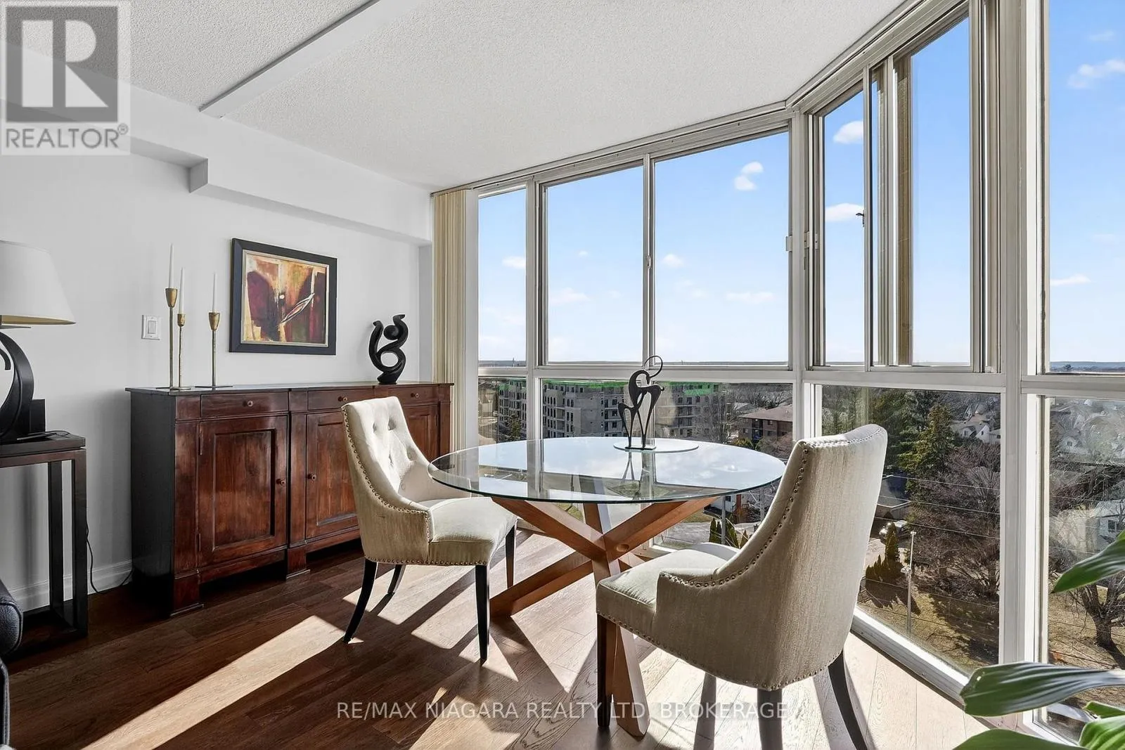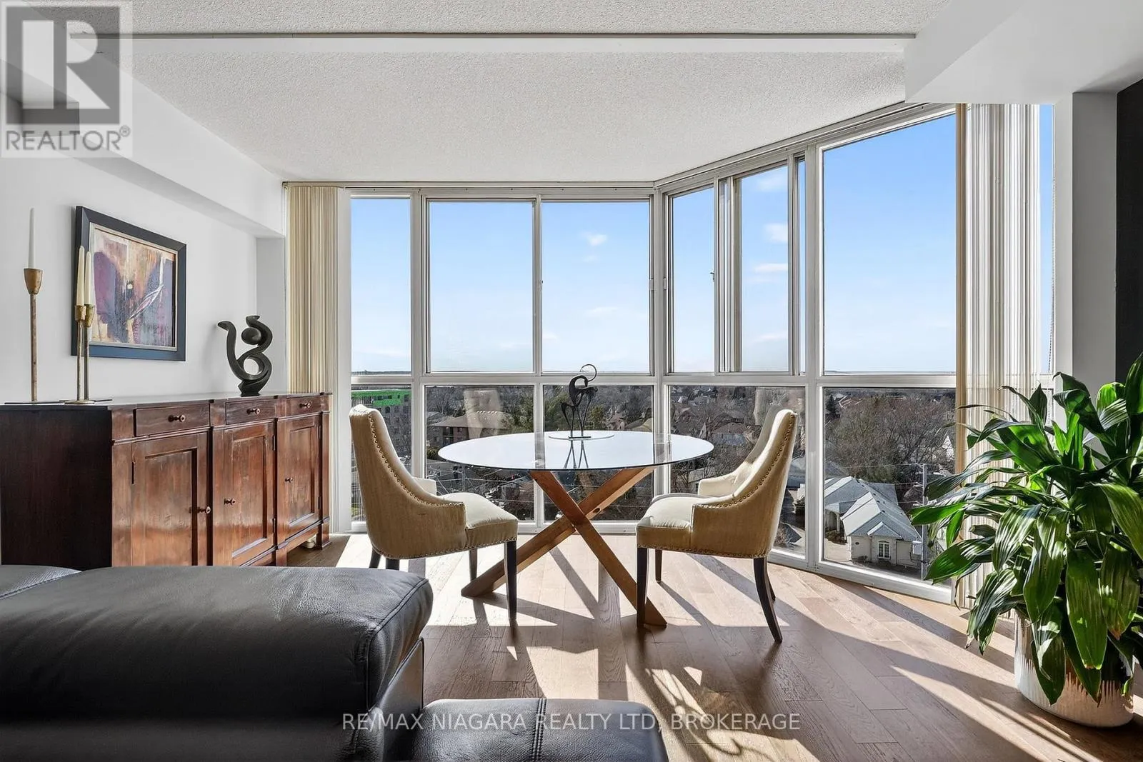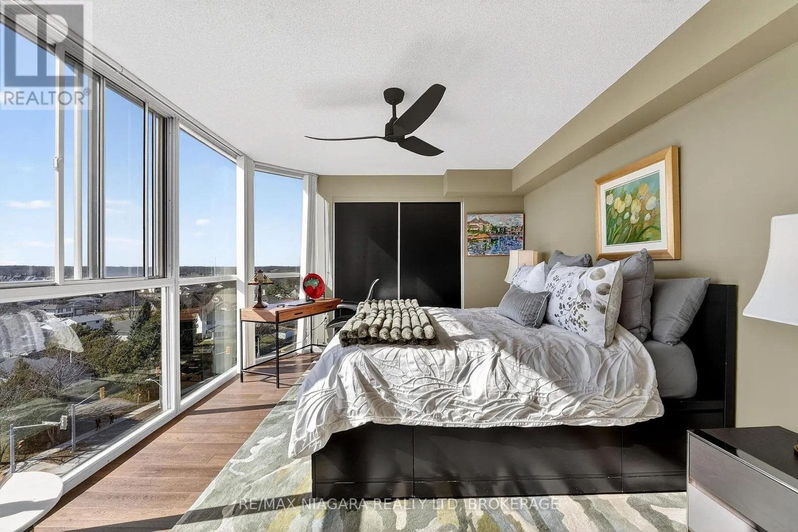 Cross Streets: Hwy 406 to Martindale Rd. ** Directions: HWY 406 to Martindale, just before Vansickle Road. Welcome to Grenadier Place, move-in ready living in one of St. Catharines' most desirable neighbourhoods! This beautifully updated 2-bed, 2-bath condo has been thoughtfully renovated throughout, featuring fresh paint, modern flooring, updated bathrooms, stylish new light fixtures, and new appliances. Stunning views are framed by floor-to-ceiling windows, flooding the bright open-concept living and dining area with natural light. The sun-soaked solarium is the perfect spot to relax or create your own indoor garden retreat. The eat-in kitchen offers modern convenience, while the generous primary suite features a large ensuite bathroom and excellent closet space. In-suite laundry adds everyday ease. Residents enjoy an impressive amenity package including an indoor saltwater pool, hot tub, sauna, fitness centre, library, workshop, games and party rooms, BBQ area, and a guest suite for visitors. The unit also includes an owned underground parking space and storage locker. Condo fees include heat, hydro, water, air conditioning, cable TV, outdoor window maintenance and cleaning, snow removal, building insurance, property management, and private garbage removal. Ideally located close to medical centres, the hospital, schools, dining, shopping, and scenic trails along the shores of Lake Ontario. Quick access to the QEW and Hwy 406 makes commuting a breeze. Come experience carefree living in this well-managed, highly sought-after building. (id:27476)