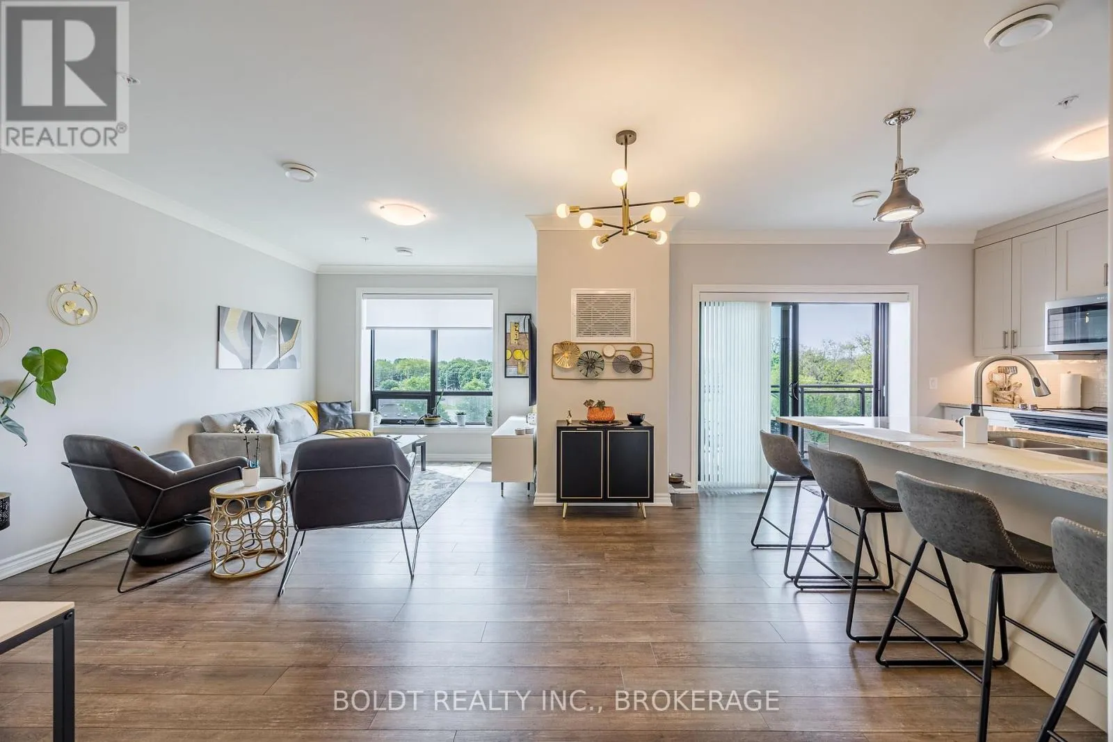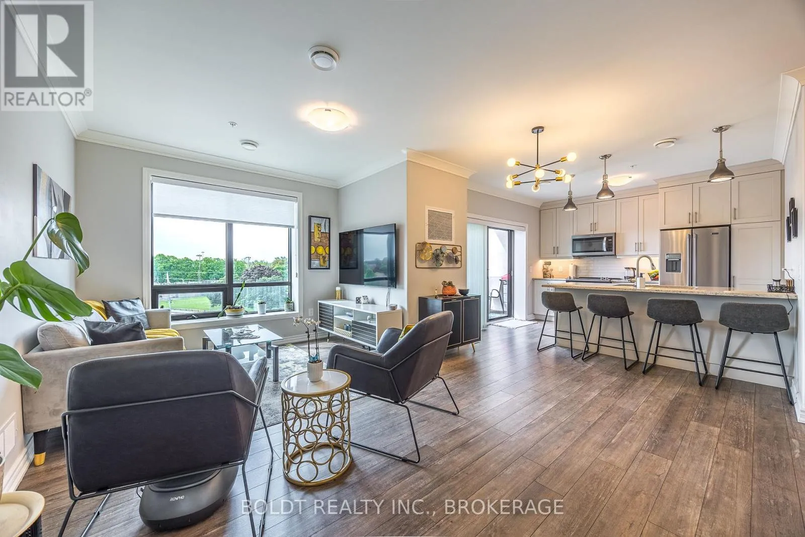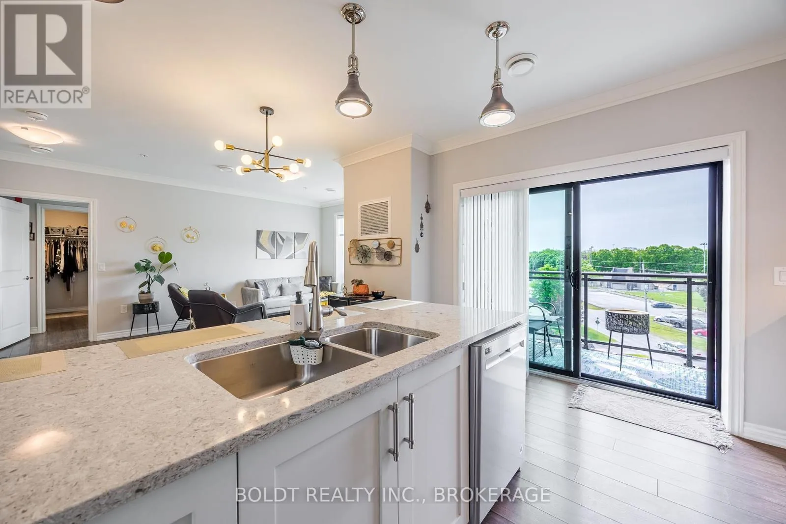 Cross Streets: Geneva and Ted st. ** Directions: NORTH ON GENEVA TURN RIGHT ON WOOD ST. Experience Effortless Living and Refined Style in this Beautiful Penthouse Suite at Fairview Condos. Situated in a quiet, well-constructed building with ICF walls for excellent soundproofing and efficiency, this bright and airy south/east facing unit enjoys sunlight throughout the day and a covered balcony with views of Lancaster Park. The suite is thoughtfully designed with accessibility in mind, featuring 36-inch wide doors throughout, ensuring ease of movement and comfort for all residents. The primary bedroom boasts a generously sized walk-in closet and a private ensuite. A spacious den with a closet serves perfectly as a second bedroom or home office, positioned at the opposite end of the suite for added privacy. At the heart of the home is an open-concept living room opening into the stylish kitchen, complete with quartz countertops, sleek stainless steel appliances, and a kitchen island that seats four. Enjoy year-round climate control with individually regulated heating and cooling, and a heated, well-lit garage with main-floor access that adds rare convenience during every season. Additional perks include a private storage locker, access to a stylish party room, and a welcoming sense of community throughout the building. Just steps from Fairview Mall, parks, grocery stores, and with quick access to the QEW, this stylish residence offers the perfect balance of comfort, location, and lifestyle. (id:27476)