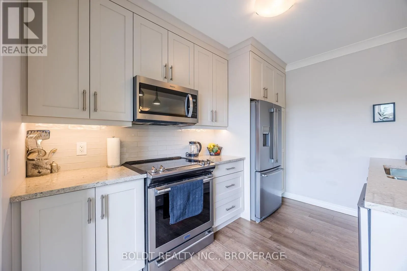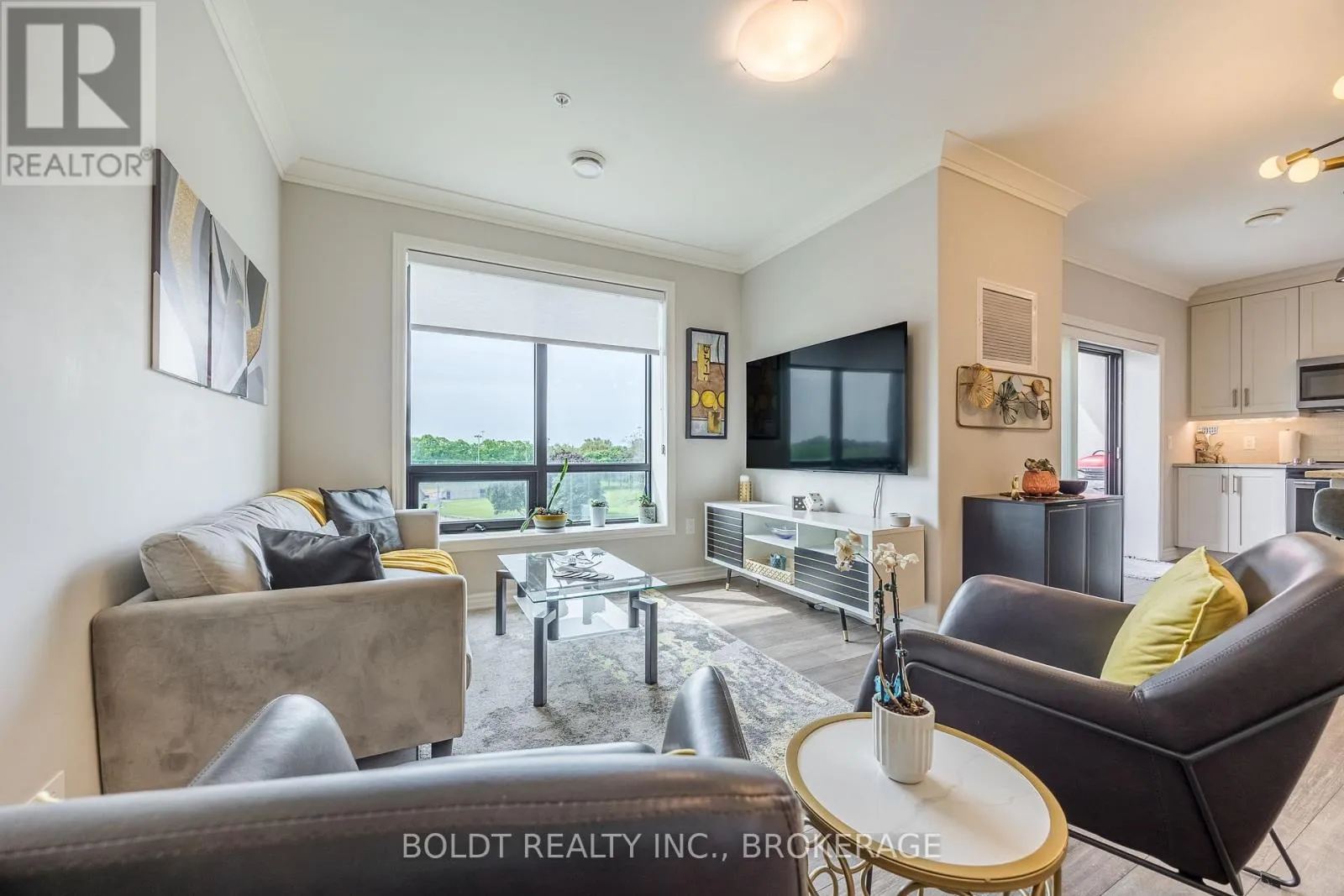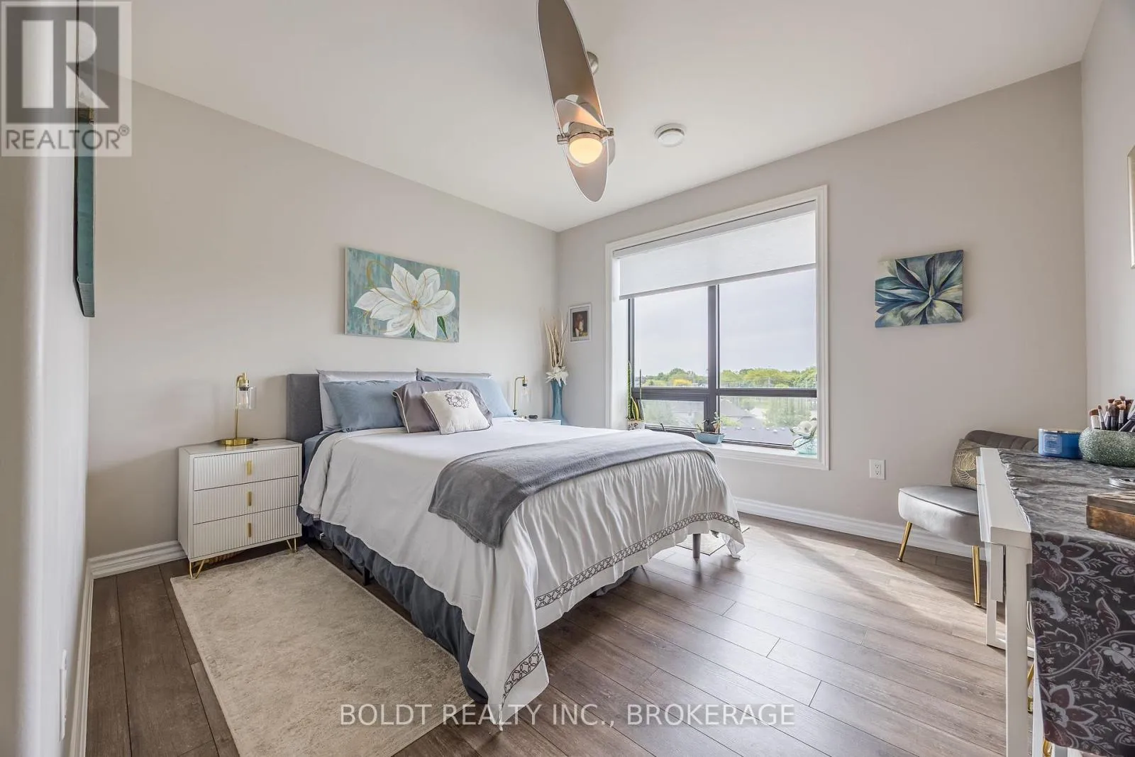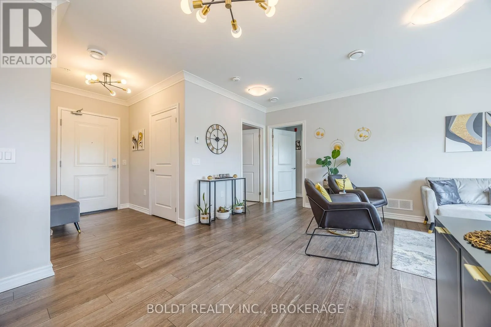 Cross Streets: Geneva and Ted st. ** Directions: NORTH ON GENEVA TURN RIGHT ON WOOD ST. Experience Effortless Living and Refined Style in this Beautiful Penthouse Suite at Fairview Condos. Situated in a quiet, well-constructed building with ICF walls for excellent soundproofing and efficiency, this bright and airy south/east facing unit enjoys sunlight throughout the day and a covered balcony with views of Lancaster Park. The suite is thoughtfully designed with accessibility in mind, featuring 36-inch wide doors throughout, ensuring ease of movement and comfort for all residents. The primary bedroom boasts a generously sized walk-in closet and a private ensuite. A spacious den with a closet serves perfectly as a second bedroom or home office, positioned at the opposite end of the suite for added privacy. At the heart of the home is an open-concept living room opening into the stylish kitchen, complete with quartz countertops, sleek stainless steel appliances, and a kitchen island that seats four. Enjoy year-round climate control with individually regulated heating and cooling, and a heated, well-lit garage with main-floor access that adds rare convenience during every season. Additional perks include a private storage locker, access to a stylish party room, and a welcoming sense of community throughout the building. Just steps from Fairview Mall, parks, grocery stores, and with quick access to the QEW, this stylish residence offers the perfect balance of comfort, location, and lifestyle. (id:27476)