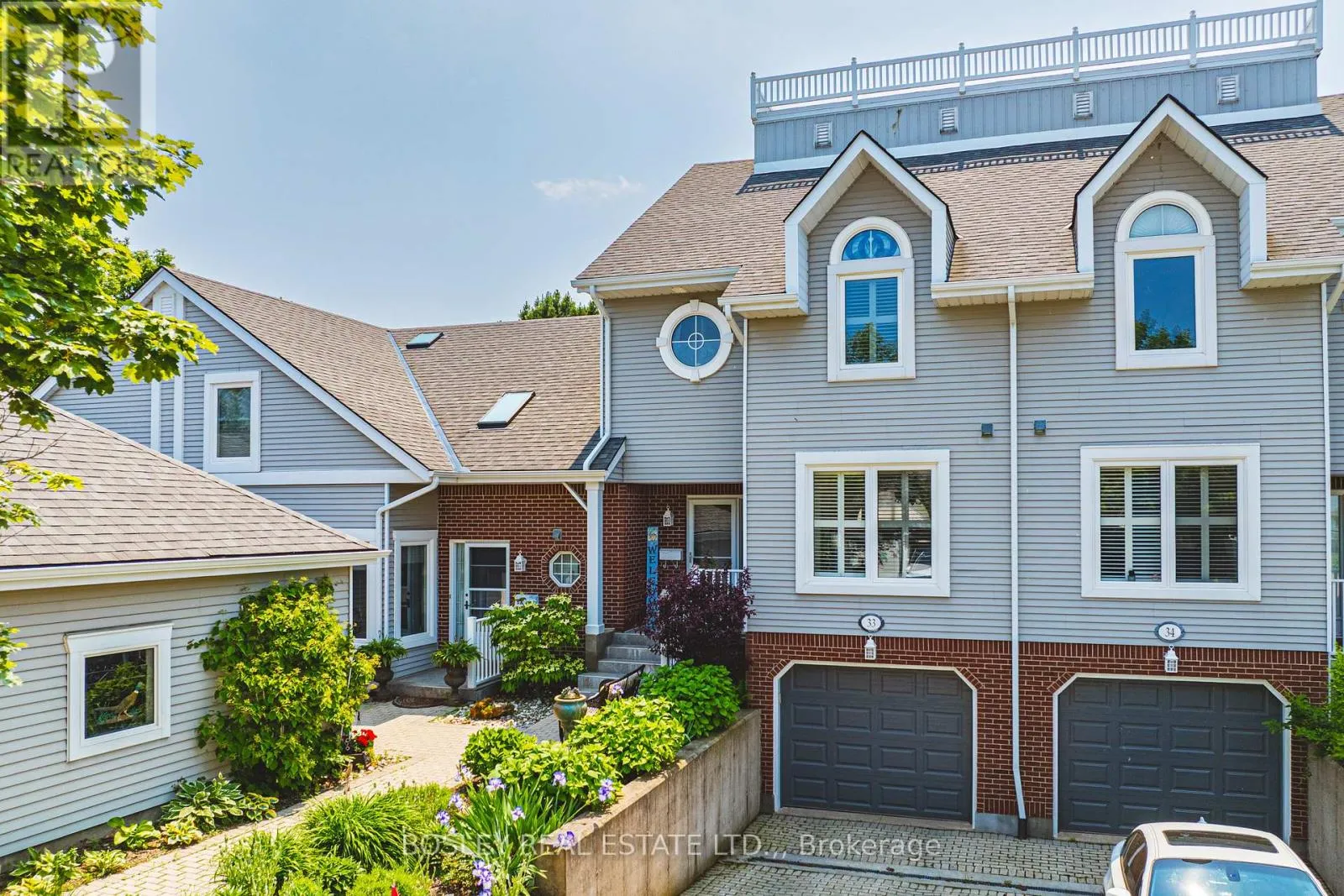 Cross Streets: Broadway & Lakeside. ** Directions: Broadway to Lakeside. Experience the charm of lakeside resort living throughout the year at one of Niagara Region's most sought-after townhome communities. Newport Quay promises a delightful retreat with its own private walkway to Jones Beach, nestled amidst nature trails, green spaces, and the Marina. Its immaculate grounds, beach access, and proximity to Port Dalhousie and Niagara On The Lake are guaranteed to captivate.This multi-level townhome greets you with a newly paved interlock driveway, concrete steps, and a tiled front porch. Upon entering, you're welcomed by a flood of natural light and a soothing "lake-life" atmosphere. The bright dining area showcases stunning Mediterranean-inspired tiles and a renovated half wall, overlooking a living room adorned with a gas fireplace, California shutters, and expansive patio doors that open to an updated deck offering spectacular views of the manicured grounds.The traditional kitchen brims with light and offers breezy, indirect lake views just across the street. It features stainless steel appliances and a custom island. On the upper level, sunlight streams through the skylight as you approach the spacious primary suite, which boasts three closets and a modern ensuite bath with double vanities and a large, tiled walk-in shower. The generous second bedroom offers serene views, complemented by large windows and vaulted ceilings. The light-filled, stylishly updated 4-piece main bath completes this sophisticated home.The garage entrance leads into the tastefully finished lower level, providing the laundry room, utility room, flexible family room space, and an additional bathroom. Perfectly situated for those wishing to indulge in the quintessential charm of Niagara, this well maintained townhome is brimming with charm, and ready for your next chapter. (id:27476)