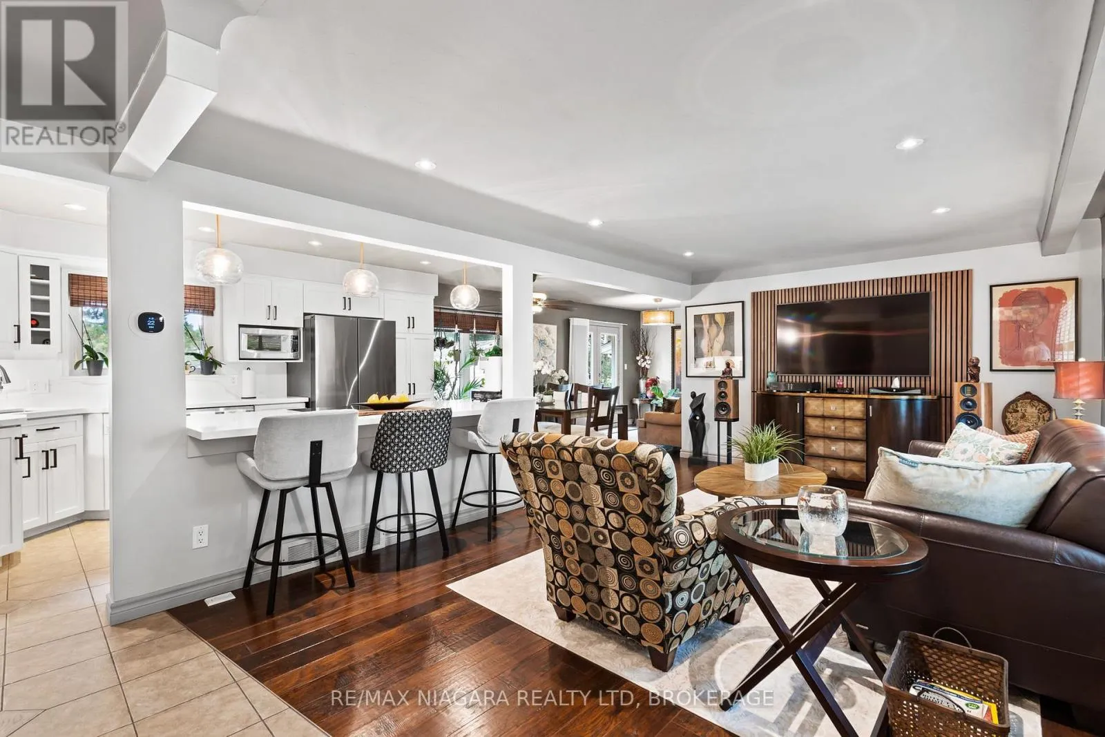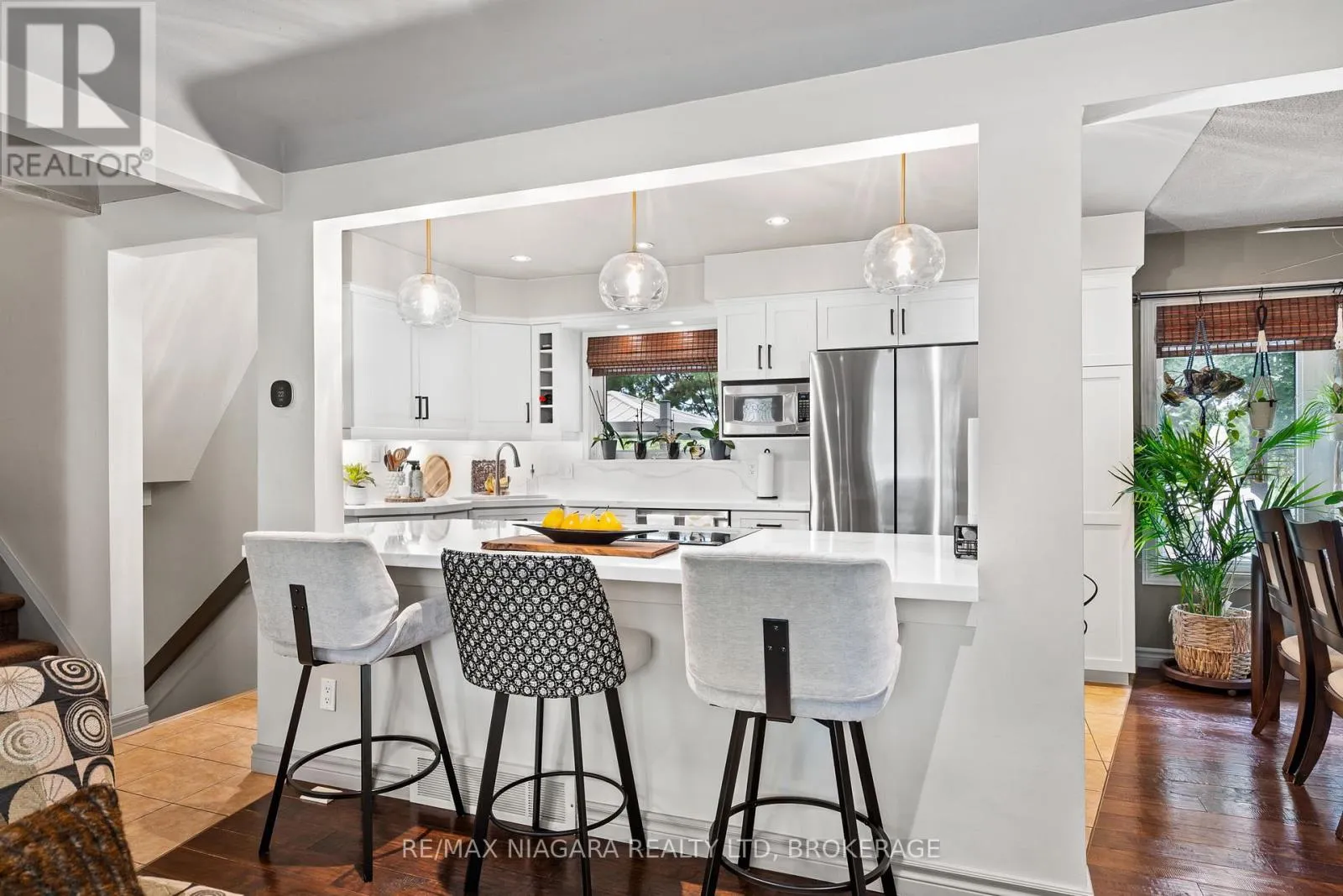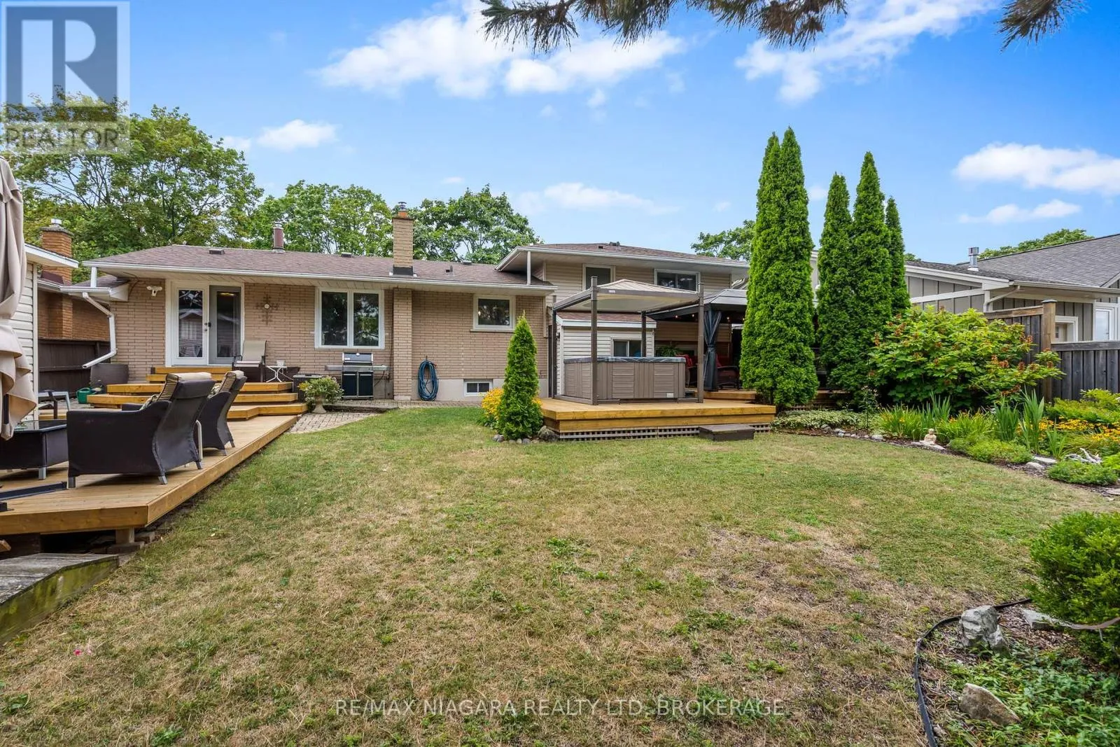 Cross Streets: Bunting Rd. to Lockview. ** Directions: SCOTT ST TO ST.LAWRENCE TO LOCKVIEW. Welcome to 44 Lockview Crescent Canal-Side Living in a Beautifully Updated Home. Discover this charming 3+1 bedroom, 1.5 bathroom home perfectly situated with stunning views of the Welland Canal. This property blends modern updates with a warm, inviting feel ideal for families, professionals, or anyone seeking a home in a sought-after neighbourhood.Step inside and be greeted by a bright open-concept main floor, where the living room flows seamlessly into the dining space and updated kitchen. The kitchen is a chef's delight, featuring crisp white cabinetry, quartz countertops & backsplash(2024), stainless steel appliances, and a spacious peninsula with seating perfect for everyday meals or entertaining. A few steps down a home office, play room or teenager hangout awaits with gas stove. The upper level offers three comfortable bedrooms and a full 3pc bathroom. In contrast, the lower level provides additional living space, including a cozy rec room with fireplace, bonus bedroom, ideal for guests or extended family and 2pc bath. Convenient walk up to the backyard/hot tub from the lower level. Basement offers laundry and tons of storage space. Enjoy a backyard retreat complete with hot tub, gazebo, and mature landscaping, new decks (2024), a true oasis for relaxing or hosting. Step out front and take in the scenic canal views, where you can watch ships pass by and enjoy peaceful walks along the water. Other highlights include a private double driveway, landscaped front yard, and move-in-ready finishes throughout. Shingles, new front door and Phantom screen door in 2018. Central vac. Located in a quiet, family-friendly neighbourhood close to schools, parks, shopping, and major routes, this home offers both lifestyle and convenience. (id:27476)
