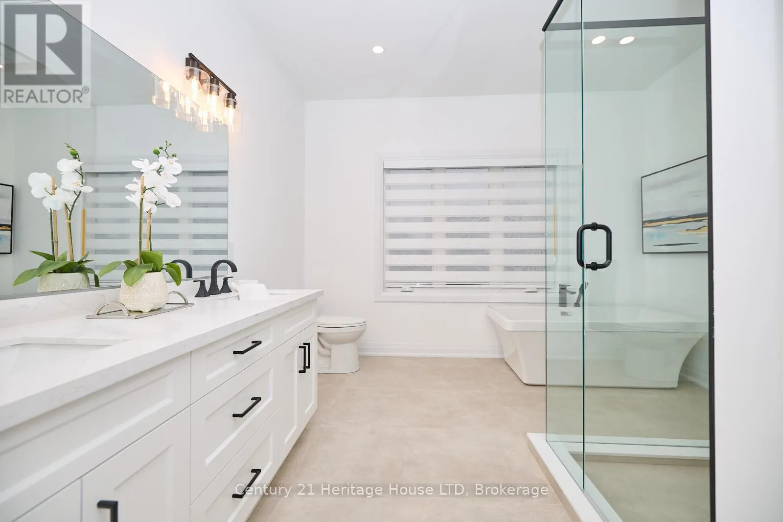 Cross Streets: Vansickle & St. Paul St. W. ** Directions: Off Vansickle Rd. Custom Built new home featuring in-law capability in the fully finished basement with separate entrance and 2nd kitchen. This one of a kind home features high end finishes throughout. The main floor features engineered hardwood flooring, a gorgeous kitchen with white cabinets and modern black accents throughout, large island, quartz counters and backsplash, and stainless steel appliances. A luxurious primary suite with walk-in closet and 5pc ensuite with his and hers sinks, quartz counters, heated floors, a deep soaker tub, and a separate oversized glass and tile shower. Convenient main floor laundry and a 2pc bath for guests completes the main level. Upper level features 2 more generous sized bedrooms, 4pc bath and flex space that can be used as an office. You'll love the separate entrance from the double garage that leads to the fully finished basement with a large kitchen, open concept living and dining area, 2 bedrooms, 4pc bath, hook-up for separate laundry, high ceilings and large windows throughout. Great opportunity for future in-law capability. Other features include custom window coverings, lawn sprinkler system, and on demand hot water heater. Located in a highly sought after location near major shopping, restaurants, hospital, highway access and more! Home comes with full Tarion Warranty. (id:27476)