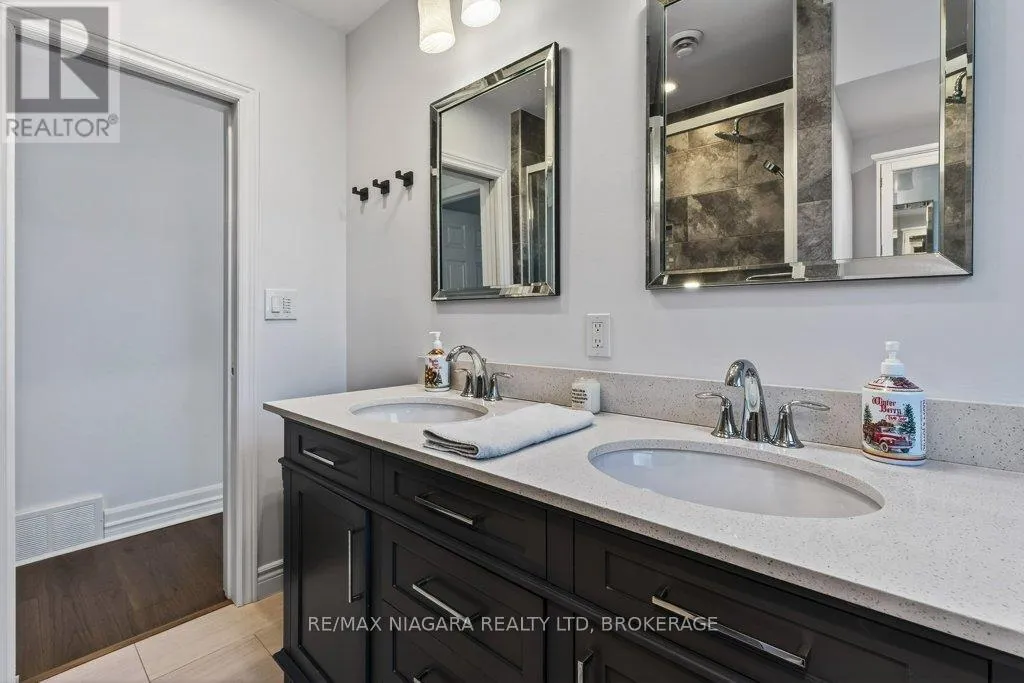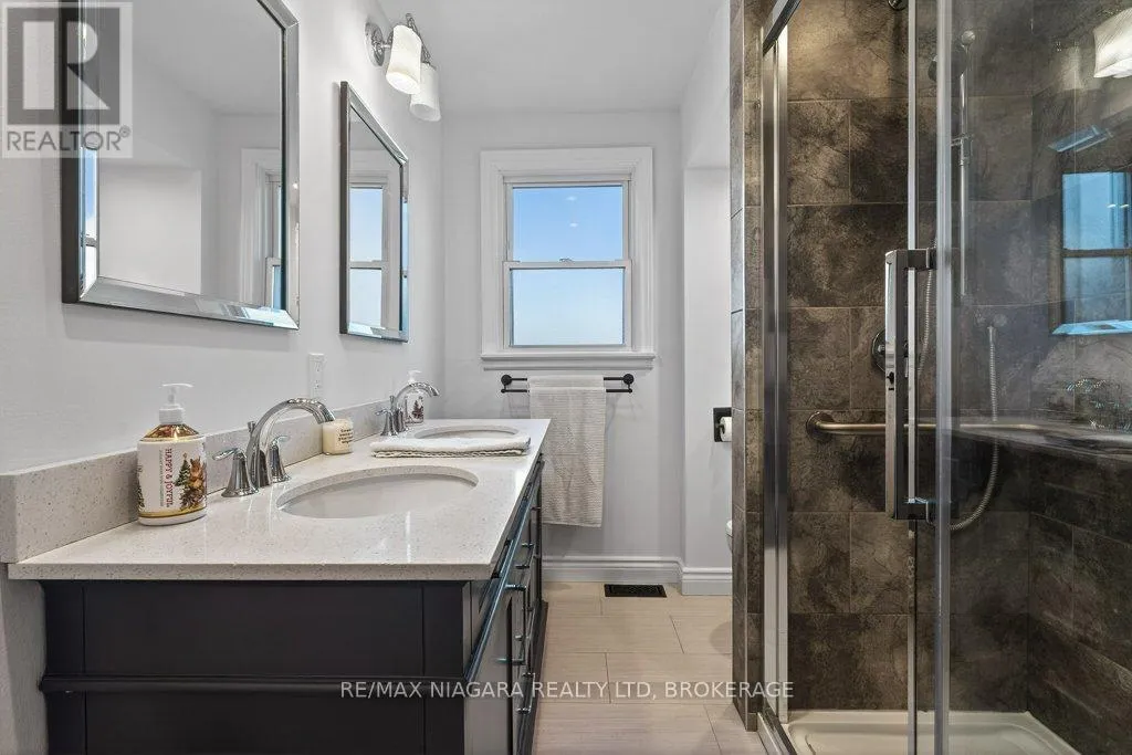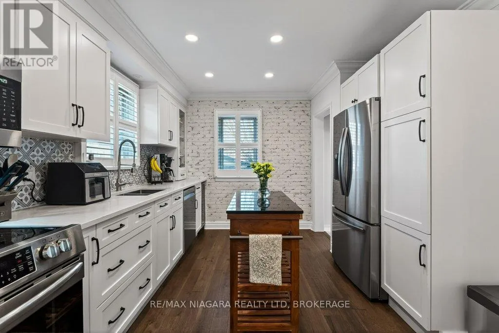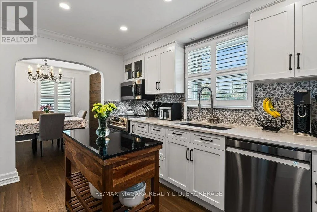 Cross Streets: Manor Rd. To Grammar Ave. ** Directions: Geneva to Glen Park, Glen Park to Woodbine, Woodbine to Manor, Manor to Grammar. Welcome to this beautifully renovated 1.5-storey residence, ideally situated on a quiet, sought-after street in North End St. Catharines. Thoughtfully redesigned with both style and function in mind, this home offers 3+1 bedrooms across three impeccably finished levels.The main floor showcases effortless living, featuring a spacious primary bedroom and elegant 4-piece bathroom, perfect for convenience and comfort. Upstairs, you'll find two generously sized bedrooms, each offering warmth and charm.The fully finished lower level is a true extension of the home's living space, complete with a large recreation room, an additional bedroom or private office, a 2-piece bath, and a well appointed laundry area ideal for family living or hosting guests.Extensive upgrades elevate the home throughout, including a stunning designer kitchen (2020), rich engineered hardwood flooring on the main level (2020), plush basement carpeting (2020), and a new garage door (2020).Step outside to your own private retreat, an expansive lot with exceptional outdoor living space, highlighted by a relaxing hot tub which is perfect for entertaining or unwinding in total privacy. (id:27476)