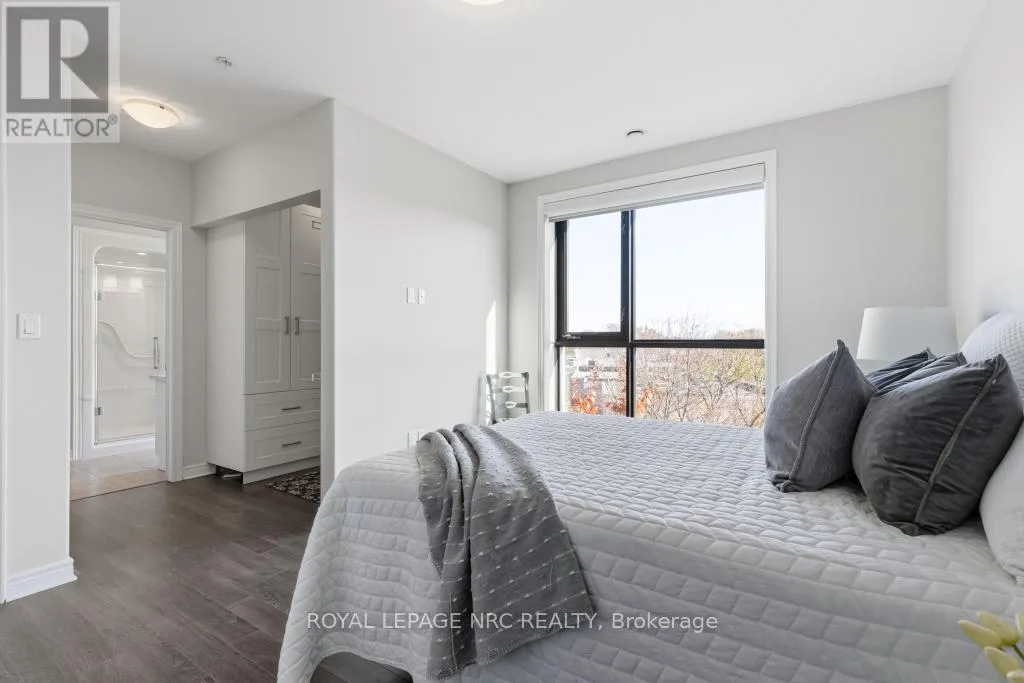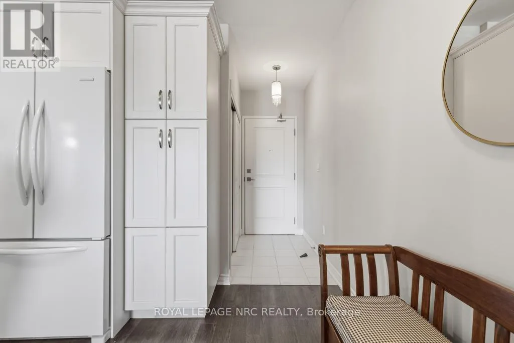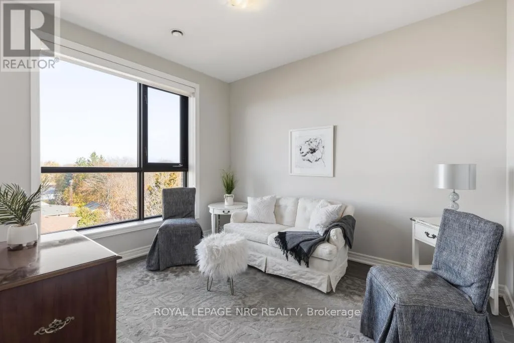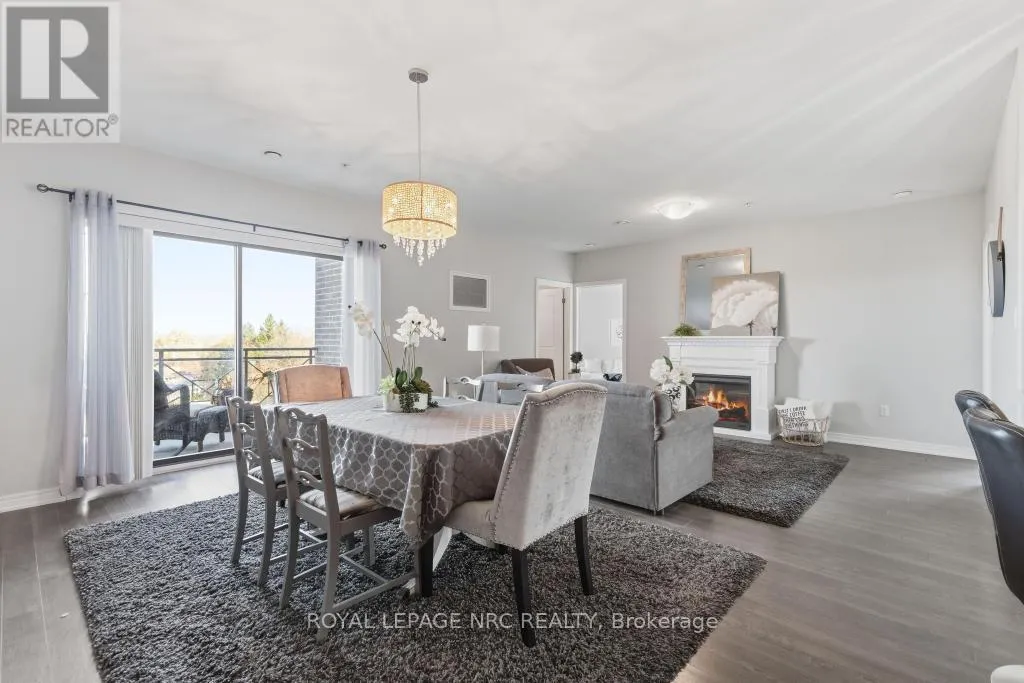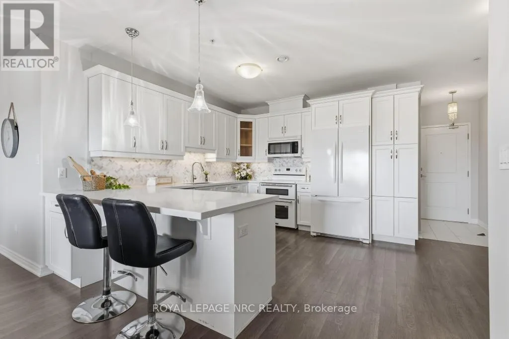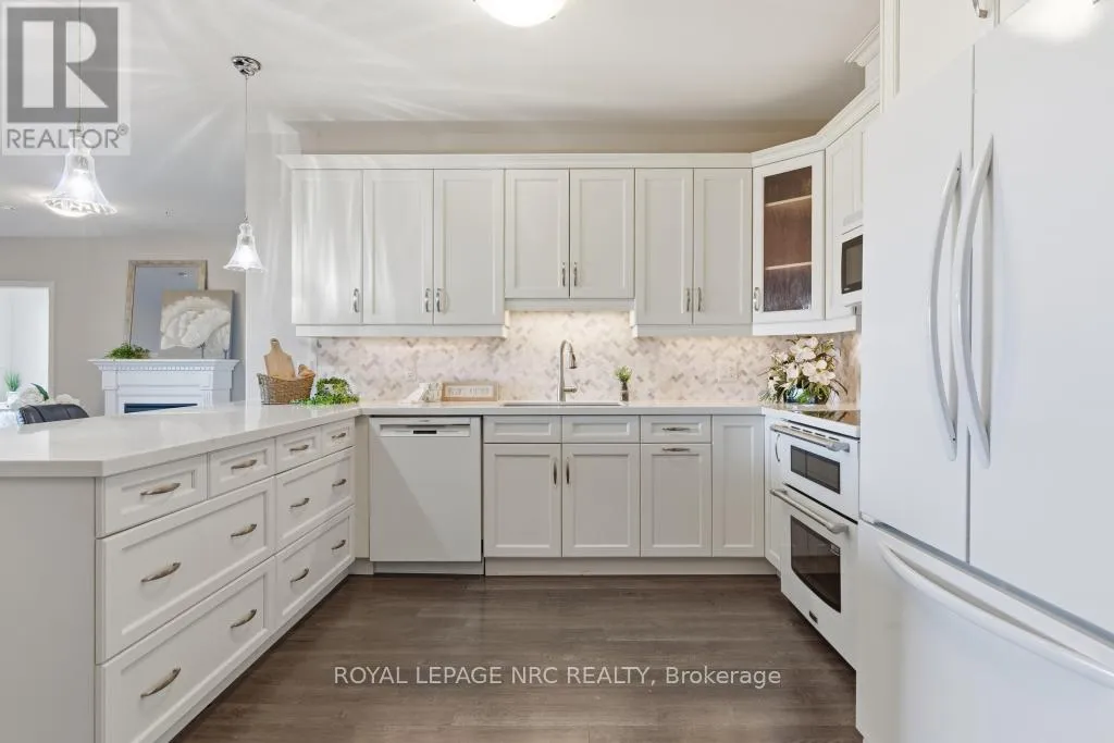 Scott and Niagara Downsize without sacrificing space or privacy and enjoy no condo fees until November, offering immediate value and a carefree start to your next chapter. This rare 2 bed, 2 bath, 1,295 sf corner suite is the largest in the building. Enjoy an elevated lifestyle, free from snow shoveling and lawn care, while still having the space to welcome family and friends for comfortable gatherings and meaningful moments.This is the only suite in the building with a dedicated dining area. The kitchen is exceptionally functional with a large pantry, deep drawers, solid surface countertops and a peninsula for casual dining. The open-concept living area feels spacious and inviting. The large north-facing balcony overlooks the treetops and remains comfortable throughout the day, creating a peaceful outdoor retreat.The primary bedroom features a generous walk-in closet and spa-inspired ensuite with double sinks. A spacious in-suite laundry room adds convenience and additional storage. The suite includes 2 lockers - 1 owned (located by the parking space) and 1 rented ($43.20/month on the 4th floor, optional). The parking space is ideally positioned directly across from the elevator.Walker's Creek is known for its strong, knowledgeable board and warm, connected community, supported by an active social committee hosting gatherings throughout the year. Amenities include an event room with full kitchen (accommodates 50+), a creekside gazebo with barbecue and seating, a 2nd floor conservatory with books, games tables, lounge areas, light exercise equipment, and a workshop.Residents love the location - steps to Sobeys, Meridian Credit Union, Tim Hortons, Wimpy's Diner, pharmacies, walking trails and daily essentials. Built with Insulated Concrete Forms (steel-reinforced concrete with rigid insulation), the building offers exceptional durability, energy efficiency and sound reduction. (id:27476)