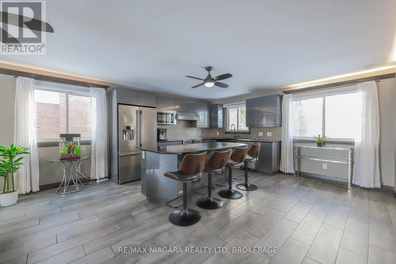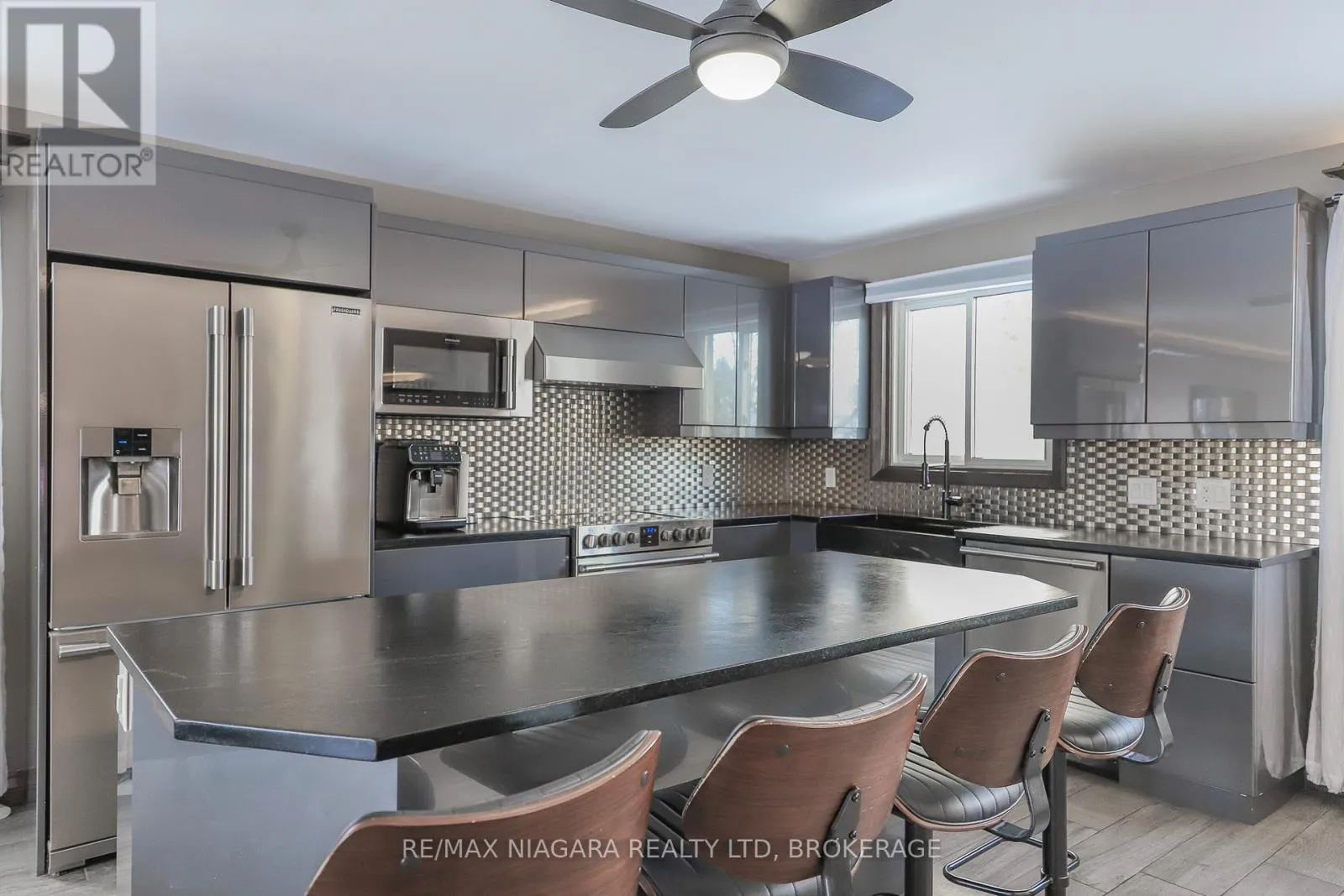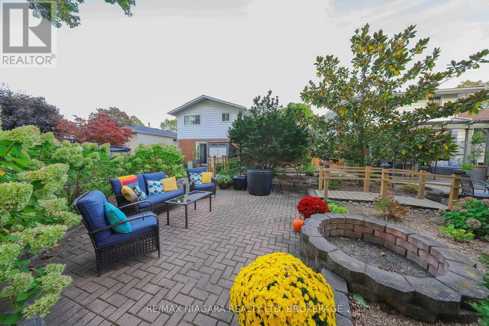 Cross Streets: GRANTHAM/LINWELL. ** Directions: GRANTHAM BETWEEN LINWELL & SCOTT. Nestled in a wonderful North end location, this multi-level family home offers plenty of space for family and guests. Enjoy the charm of modern renovations throughout the home, ensuring both style and functionality. The massive eat-in kitchen is a chef's delight, featuring exquisite soapstone island and countertops with custom soft touch easy close cupboards and drawers. It overlooks the comfortable family room w/ gas fireplace, making it ideal for gathering. Experience the luxury of solid oak interior doors, soapstone steps & heated ceramic tile flooring adding main floor comfort during colder months. Practicality is key with the main level containing a laundry room (with side door access) across from separate 3-piece bathroom providing convenient showering. It also includes an additional 4th bedroom and a third 2-piece washroom offering the potential to convert into an in-law suite w/ separate entrance. The lower level offers plenty of additional storage options and cantina. Step outside to a beautiful low maintenance backyard that offers annual enjoyment. Enjoy evenings by the fire pit or a refreshing outdoor shower. This easy-to-care for year-round temperature controlled endless swim spa pool/hot tub provides relaxation with many health benefits for all ages. Enjoy the nearby Welland Canal pathways or the natural beauty of nearby parks and trails. Relax all summer by one of the three local serene beaches: Lakeside, Sunset or Jones Beach! (id:27476)