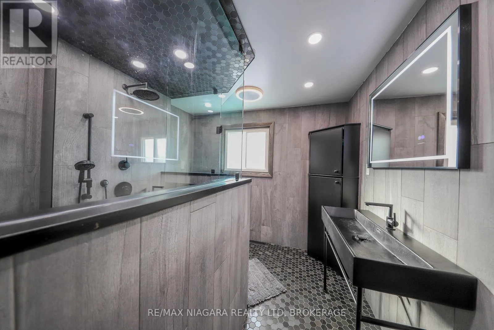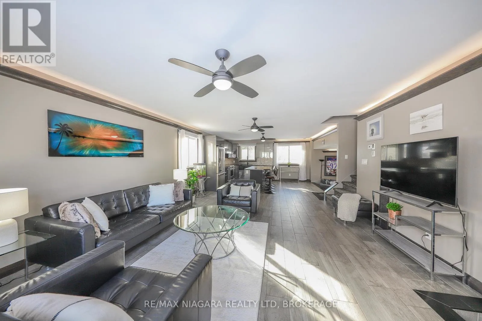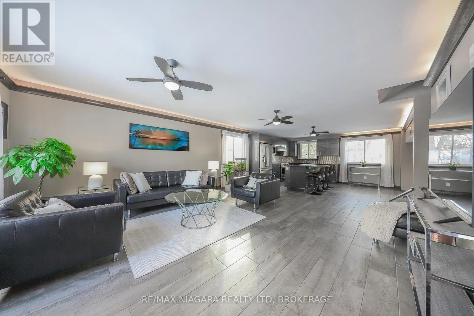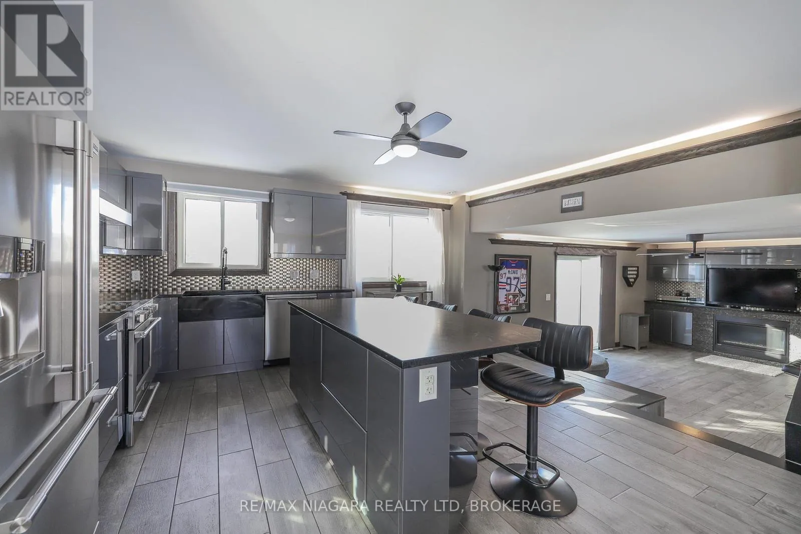 Cross Streets: GRANTHAM/LINWELL. ** Directions: GRANTHAM BETWEEN LINWELL & SCOTT. Nestled in a wonderful North end location, this multi-level family home offers plenty of space for family and guests. Enjoy the charm of modern renovations throughout the home, ensuring both style and functionality. The massive eat-in kitchen is a chef's delight, featuring exquisite soapstone island and countertops with custom soft touch easy close cupboards and drawers. It overlooks the comfortable family room w/ gas fireplace, making it ideal for gathering. Experience the luxury of solid oak interior doors, soapstone steps & heated ceramic tile flooring adding main floor comfort during colder months. Practicality is key with the main level containing a laundry room (with side door access) across from separate 3-piece bathroom providing convenient showering. It also includes an additional 4th bedroom and a third 2-piece washroom offering the potential to convert into an in-law suite w/ separate entrance. The lower level offers plenty of additional storage options and cantina. Step outside to a beautiful low maintenance backyard that offers annual enjoyment. Enjoy evenings by the fire pit or a refreshing outdoor shower. This easy-to-care for year-round temperature controlled endless swim spa pool/hot tub provides relaxation with many health benefits for all ages. Enjoy the nearby Welland Canal pathways or the natural beauty of nearby parks and trails. Relax all summer by one of the three local serene beaches: Lakeside, Sunset or Jones Beach! (id:27476)