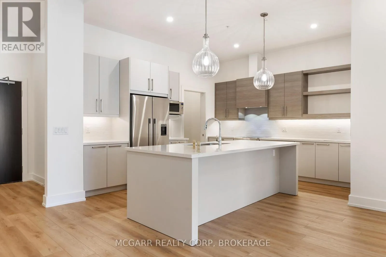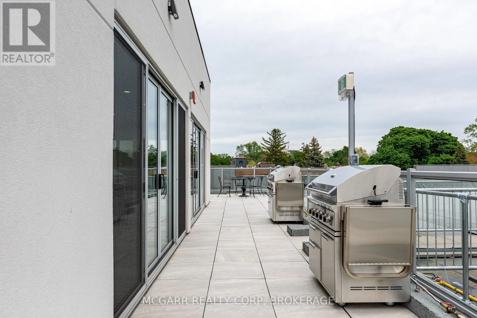 Ontario, Adams, College Lots of living in this East-facing terrace suite. Walk in and see the wow factor with open living dining and kitchen. Wall-to-wall windows and patio door, let in lots of light. A 2 pc and a closet is to your right. A few steps further brings you to the den with a pocket door. To your left is the beautiful and bright gourmet kitchen with a centre eating at island. One wall is wall-to-wall cabinets, counter and an induction stove. The other wall has more cabinets, a microwave, and a stainless steel French-door fridge. A bonus is the pantry room or another den. The laundry room has full size washer, dryer and a sink. The open entertaining area has ample dining and living space. A big bonus is the patio doors to a massive 28' x 8.7' partially covered terrace. Extend your living and entertaining space. The primary suite with walk-in dressing room and 4 pc ensuite also has terrace access. The second bedroom has an adjacent 4 pc bath. An extra storage room is on the terrace. Price includes your own indoor parking space and your own storage room. A rare rooftop terrace, BBQs, fitness room and equipped party room awaits. (id:27476)