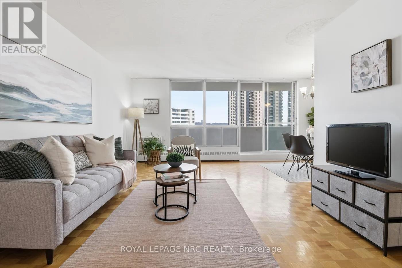 Glen Morris & Glenridge Welcome to carefree living with open concept floor plan, appointed with parquet flooring, freshly painted interior in this south- facing corner unit, boasting open balcony to enjoy early morning beverages and peaceful evening breezes. Updated kitchen with built-in dishwasher & custom backsplash and room for table on laminate flooring. L-Shaped Living/Dining Rooms open to the balcony or cool off with interior window air conditioning unit. Spacious primary bedroom has large windows, walk-in closet plus updated 3- piece ensuite privilege bathroom, 2nd bedroom with large windows and closet, both allowing for natural daylight. Located just minutes from Brock University, Pen Centre Shopping Mall, downtown bistros, shops & quick access to Highway 406 & QEW. Affordable fees include all utilities except cable/internet. Building amenities include indoor heated pool, library, party room, games room, workshop, car wash, community gas BBQ. Quick flexible closing. Whether first- time home owner or down-sizing ,this building has so much to offer and a friendly management superintendent and neighbours. Updated foyer entrance to greet smiling faces. Outdoor parking with no wait list is available at $12/month. Indoor garage parking is $37/month with wait list. (id:27476)