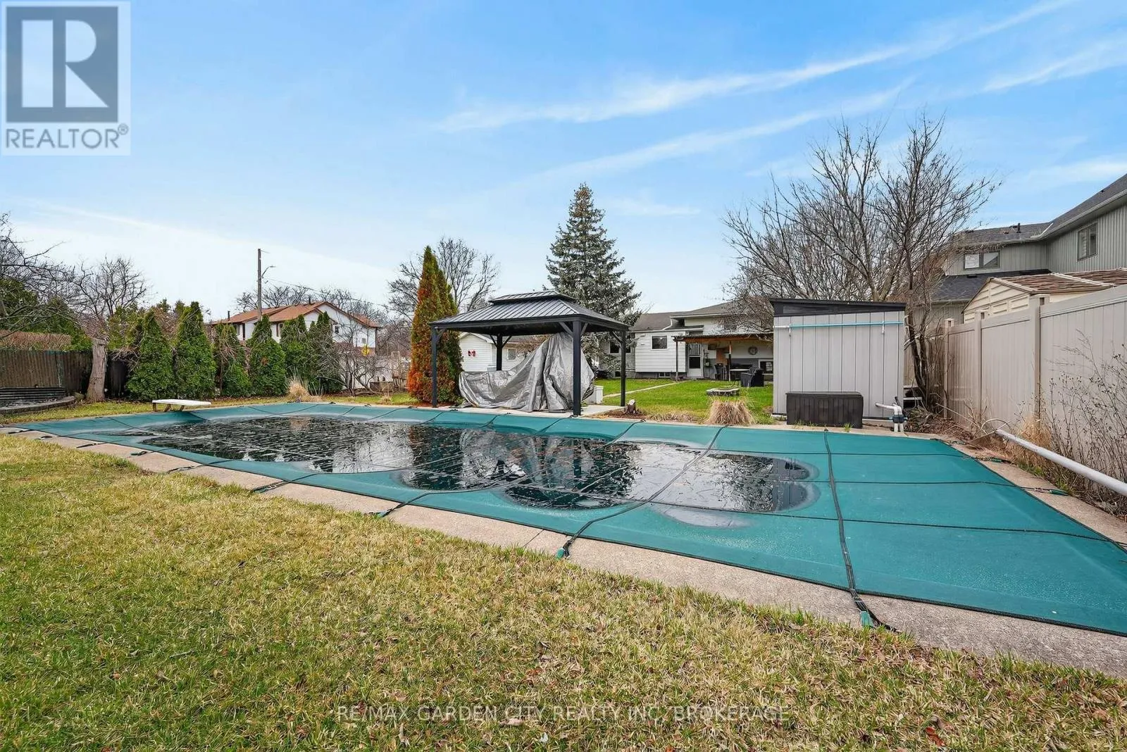Cross Streets: Cushman and Rendale. ** Directions: Welland St. to Cushman, turn left. Turn left on Rendale, house is on right corner at Meredith. Looking for a great home for the growing family? Here it is! This completely finished 4 level side split sits on a fantastic 65ft x 150ft corner lot with an impressive 46ft x 16ft salt water inground pool with a diving board, new liner and pump in 2025. Imagine the summers playing with the kids and all your extended family in this massive pool plus the extra large yard to entertain and run. This very neat home has great curb appeal and is located near schools, park, transit, shopping and access to the QEW in minutes for that easy commute. The main floor features a very bright living room with a large bay window to watch the world go by. A separate dinning room for the family to gather and a nice eat in kitchen features a counter top stove and built in range with plenty of storage. The upper level features 3 bedrooms and a newly renovated 4 piece washroom that is sure to impress. Heading to the lower level there is a very nicely sized family room with large window, a gas fireplace with a mantel, 2 piece bath and some built in storage. The basement has a really cool separate shower room with the shower having glass doors. There are 2 rooms that can be used for many options including home office or storage plus a laundry/utility room to complete it . Some great bonuses to this home also has are a 5 car concrete drive , fully fenced yard with 2 sheds, fruit trees, cement patio with 10 x 14 ft gazebo, fire pit, covered patio, no rear neighbors, the Welland Canal only steps away to ride your bikes or just to watch the ships of the world go by. You are also a nice drive away from Lake Ontario or Niagara on the lake for some fine dining and fabulous wines. What a place to raise your family! Don't miss this one! (id:27476)