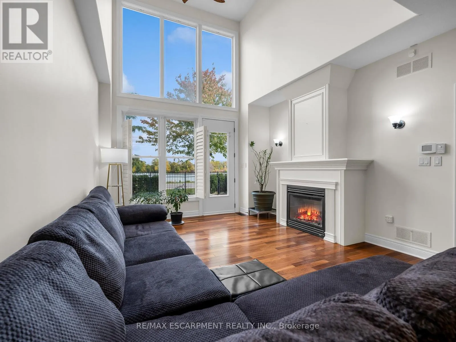 Bunting Welcome to 18 Biagi Court - a rare opportunity to own a freehold bungaloft townhouse with water views in the sought-after North End of St. Catharines. Tucked on a quiet cul-de-sac and backing onto the Welland Canal Parkway Trail, you're steps to scenic walking and cycling paths, a short ride to Sunset Beach, and minutes to Niagara-on-the-Lake and Port Dalhousie. Inside, the home offers 9' ceilings and a bright, functional layout. The updated kitchen features stainless steel KitchenAid appliances, ample counter space, and flows seamlessly into the dinette and main living area. The open-concept living and dining room is highlighted by a gas fireplace, soaring 16'+ ceilings, and floor-to-ceiling windows that capture natural light and views of the Welland Canal. The main floor primary suite is ideal for one-floor living, complete with a walk-in closet and a 5-piece ensuite. Upstairs, the loft provides flexible space for a second living area, office, or guest retreat, along with a second bedroom and full bath. The unfinished basement offers future potential with a bathroom rough-in, cold cellar, and plenty of storage. Outside, enjoy a landscaped yard and private patio-perfect for morning sunrises, passing ships, and quiet evenings. (id:27476)