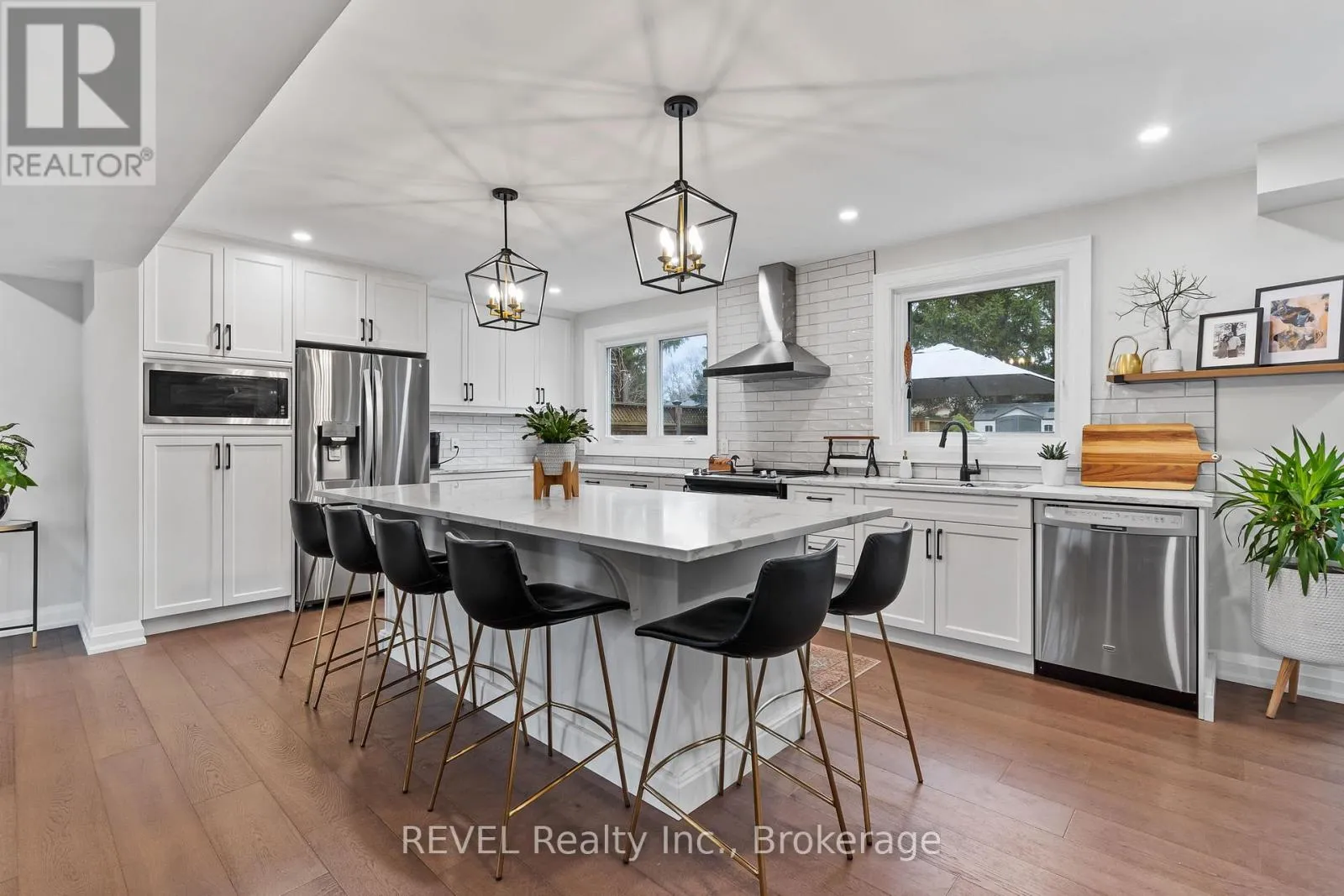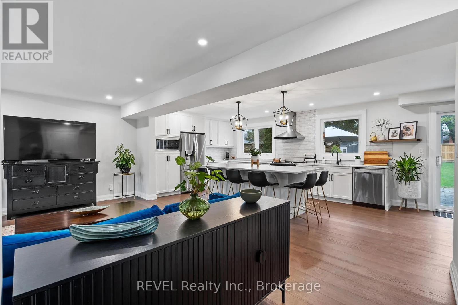Cross Streets: Lakeshore Road and Simpson. ** Directions: Simpson Road to Jellicoe to October. Welcome to sought-after October Drive in the desirable north end of St. Catharines-just steps from the scenic waterfront trail. This beautifully renovated 3+1 bedroom, 3-bath home offers the perfect combination of style, space, and location, with updates both inside and out. Designed for modern living, the open-concept main floor is bright and inviting, flowing seamlessly into a spacious family room with two walkouts to a stunning backyard retreat. Enjoy a huge, private yard complete with a large patio and hot tub-an ideal setting for entertaining or unwinding at the end of the day. Upstairs features three generously sized bedrooms and a spa-inspired main bath with a jacuzzi tub and walk-in shower. The fully finished lower level adds incredible versatility with a fourth bedroom, rec room, laundry area, and plenty of storage. Situated on a quiet, tree-lined dead-end street in a family-friendly neighbourhood, this home is close to top-rated schools, parks, amenities, and transit, with easy highway access. Just a short walk to historic Port Dalhousie, where you can enjoy beaches, charming restaurants, and vibrant summer events-this is truly a lifestyle you don't want to miss. (id:27476)