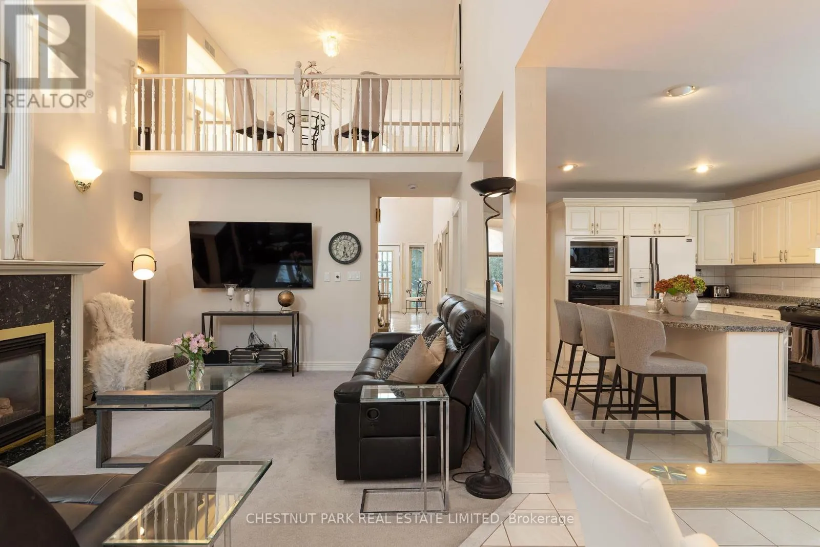 Martindale To Erion A rare ravine property, custom-built in Erion Estates and framed by mature trees, offering effortless main-floor living. From the moment you step through the double front doors, you are greeted by soaring 2-story ceilings, oversized windows, and a grand staircase. The main floor flows seamlessly, featuring a primary bedroom with a 5-piece ensuite and two closets, main-floor laundry and a convenient 2-piece powder room for guests. At the rear of the home, the kitchen overlooks the ravine, complete with an island and dining nook framed by views of your private yard and patio. The family room is bright and inviting, double-height windows showcasing the treetops and a cozy gas fireplace. The main-floor primary suite serves as a private retreat with two walk-in closets and a spa-inspired ensuite with double sinks, a soaker tub, and a shower. Additional spaces include a formal dining area, a sun-filled living room with a wood-burning fireplace, and laundry with direct access to the double-wide heated garage. Upstairs, two bedrooms and a full bath overlook both the foyer and family room. The basement features tall ceiling heights, a bedroom, and a flexible office or gym- currently used as a bedroom, both with large walk-in closets. Rough-in plumbing is in place for a bathroom or kitchenette, making it ideal for potential separate living space.The backyard is a true oasis, set on a lush, private ravine with mature gardens and an irrigation system. Properties like this, offering a ravine lot, classic design, and a main-floor lifestyle, you don't want to miss. (id:27476)