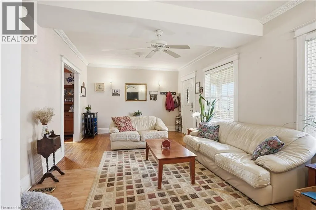 Welland Ave Welcome to 34 Vine Street S â a charming 1.5-storey home offering an excellent opportunity to get into the market in a convenient, central location. This 2-bedroom, 1-bathroom home features a functional layout with bright, comfortable living spaces and a great flow throughout. The upper level offers a private retreat, adding character and separation from the main floor. Backing directly onto Connaught Public School, the property enjoys no rear neighbours â providing added privacy and an open feel thatâs hard to come by. The backyard offers a great space to relax, entertain, or simply enjoy a quieter setting. Set on a quaint street with quick and easy highway access, the location makes day-to-day commuting simple. A private single driveway offers parking for two vehicles. Located close to schools, transit, and everyday amenities, this home is ideal for buyers looking for value, convenience, and a smart step into homeownership. (id:27476)
