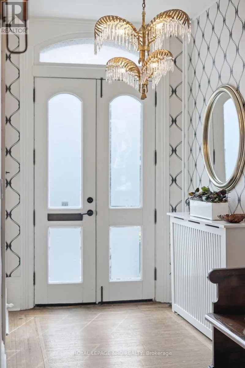 Cross Streets: Lake St., Welland Ave. ** Directions: Lake Street, south on James Street. Beautifully renovated, tastefully decorated brownstone is nestled in an urban chic downtown location on trendy "Lawyer's Row". This stunning home has been updated to today's standards while preserving the character and fine craftmanship in such details as intricate ceilings, high coved moldings, wide baseboards, stained glass, marble fireplace. Renovated throughout by HGTV's Scott McGillivray and interior design byJohn Kazmir, bringing luxurious interiors, gorgeous lighting, custom cabinetry and open light filled spaces. Chef's gourmet kitchen with large island, coffered ceiling, quartz counters, Thermador stainless steel gas range, fridge, dishwasher and 36 bottle high end wine fridge, heated floors, second staircase to 2nd floor, walkout to cedar screened Sunroom overlooking private, landscaped backyard, ideal for seasonal entertaining. Inlaid hardwood throughout, deep windows, 10 ft. ceilings on main and second floors, custom bookshelves, 2 pc powder rm. Second floor w/ 3 spacious bedrooms, 2 full baths incl. ensuite privilege w/claw foot tub, reclaimed brick wall, stained glass window. Second full bath w/laundry, double sinks, glass shower, hydronic towel warmer. Updated windows, roof (2018) high efficiency boiler (2018) c/air (2018). NEW ONE OF A KIND GLASS WALLED WINE CELLAR - up to 2100 bottle CAPACITY, Vintage Cellar wine racks & 2 wall mounted oak Champagne racks. Ideally located a short walk to Montebello Park, downtown businesses, shops and cafes, Niagara's best restaurants, Meridian Arena, Performing Arts Centre. Close to major highways, Ridley College, Brock U, Toronto, Hamilton, Buffalo & Niagara airports, fabulous hiking and cycling trails, scenic Niagara wine routes, all amenities., Commercial zoning allows many live/work opportunities. This impeccable home will impress the most discerning buyer! See Supplemental documents for additional information and features. (id:27476)