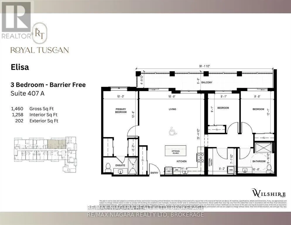 Martindale Rd to Vansickle Rd N. **FIRST TIME BUYER GST/HST REBATE INCENTIVE ON NOW! - SAVE UP TO $100,000** This is the 3 bed plus den and 3 full bath Elisa Suite at The Royal Tuscan Luxury Residences. Over 1200 sq ft of barrier-free, wheelchair accessible living space PLUS an outdoor rooftop terrace! A master planned collection of boutique luxury condos and penthouses that blends both the old and new with a rustic inspired facade, modern interior design, and innovative smart features. Featuring a large open concept living and kitchen space. 9 ft ceilings, upgraded flooring throughout with quartz countertops. Primary bedroom with large walk-in closet, ensuite and in-suite laundry. Complete kitchen and laundry appliance package included! Choose from the tailored colour packages, quartz countertops, and custom cabinetry. Each feature and finish are carefully curated to harmoniously blend comfort, style, and luxury into your everyday. European elegance and innovative craftsmanship deliver you the pinnacle of luxury living in the heart of St. Catharines. Every single refined element of the Royal Tuscan is guaranteed to provide you with an unmatched feeling of home. From the spacious party room to serene community gardens, every detail enhances your experience. Enjoy leisurely moments at the gazebo or on our mini-golf course. Convenience is key with underground parking and a dog-washing station. Visitors are catered to with above-ground parking, while electric car-charging stations and bicycle racks promote sustainability. Experience luxury living with every convenience at your fingertips. Find tranquility and relaxation by surrounding yourself with the lush flora and fauna at the community garden. The Royal Tuscan intersects both modern luxury and classic European elegance in every suite. Many other suites available including the Penthouse suites which boast Tuscan-inspired spacious rooftop terraces, perfect for entertaining. Many other suite layouts available! Estimated occupancy date: 2026. (id:27476)