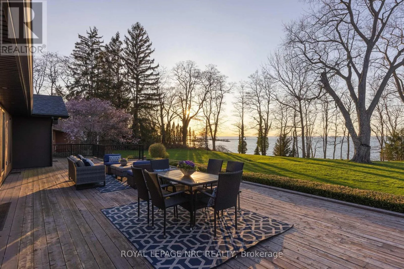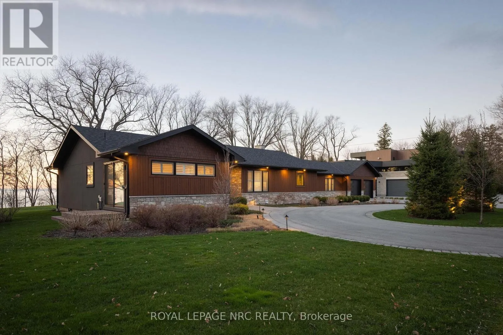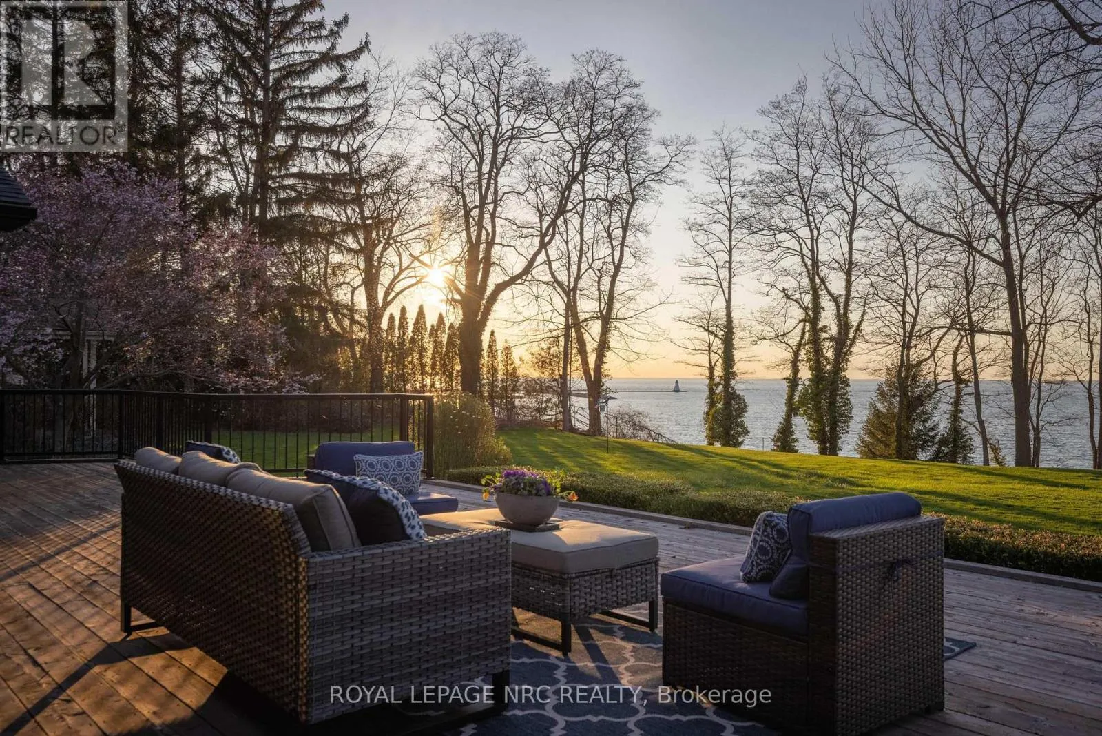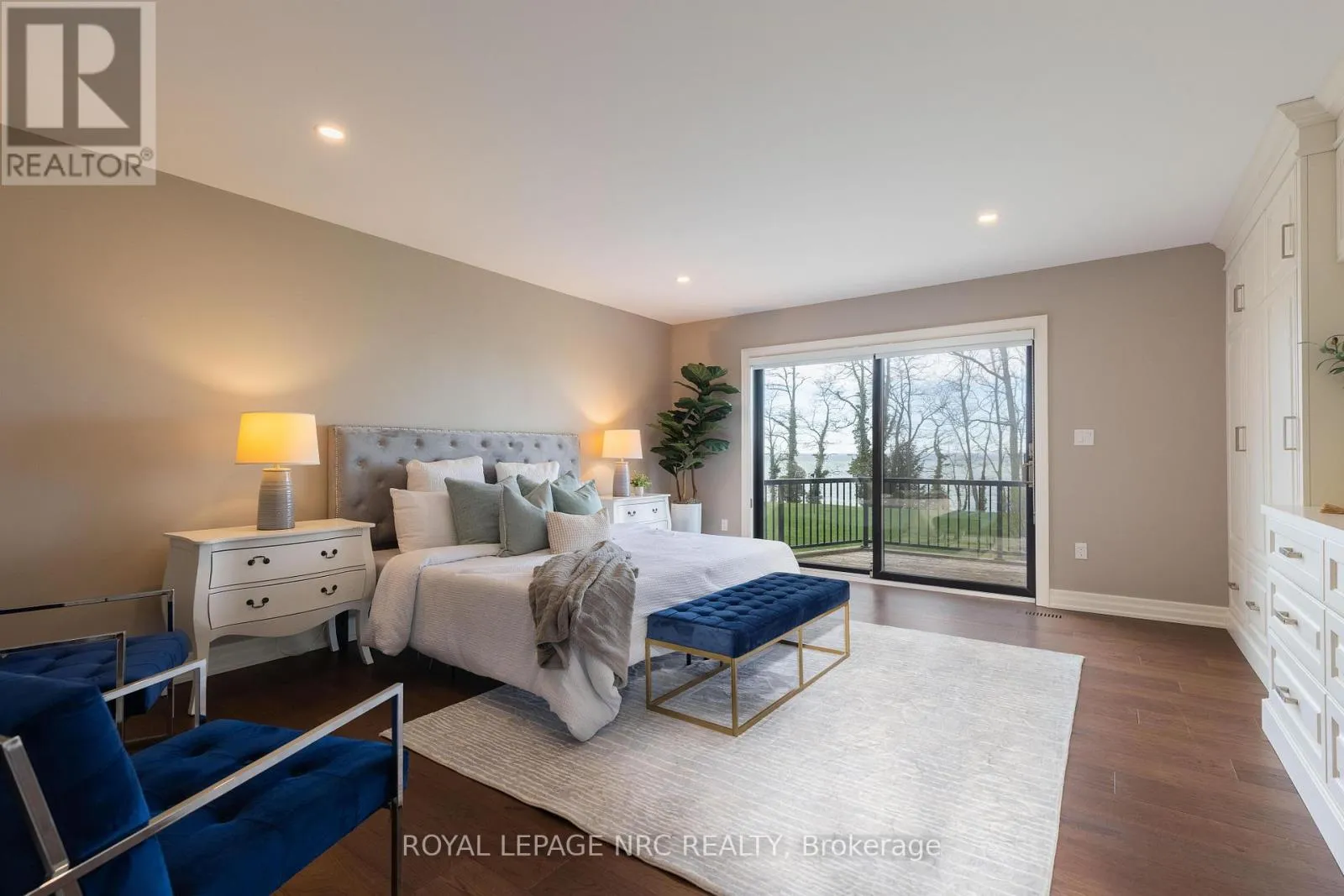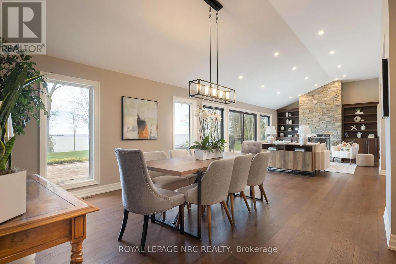 Cross Streets: Peach Tree Common. ** Directions: Lakeshore Road, north on Simpson Road. WELCOME TO YOUR BEAUTIFUL CUSTOM LAKEFRONT DREAM HOME IN NIAGARA! Stunning waterfront residence on a rare 1 acre private lot with 140 ft. shoreline frontage, on exclusive Simpson Road, offering breathtaking views from every room of Lake Ontario and the Toronto skyline. Enjoy dramatic sunsets, direct water access in this 2300 sq. ft. custom bungalow, fully renovated from top to bottom. Floor to ceiling windows in the Great room frame the view, anchored by 14 foot vaulted ceiling, a dramatic full-height stone fireplace, rich hardwood throughout. Gourmet kitchen with s/s appliances, perfect for entertaining. 3 spacious bedrooms on the main floor, each with wall to wall custom built in cupboards, and walkouts to patio including Primary bedroom with ensuite. Main floor laundry, interior access to double garage with rear overhead door. Generac generator. Lower level with 2 bedrooms (one currently in use as a home office), full bathroom, cantina and a huge unfinished room, perfect to create a fabulous Recreation room. Professionally landscaped with irrigation system, circular drive. Enjoy your own piece of waterfront paradise! See video for full views and tour. (id:27476)