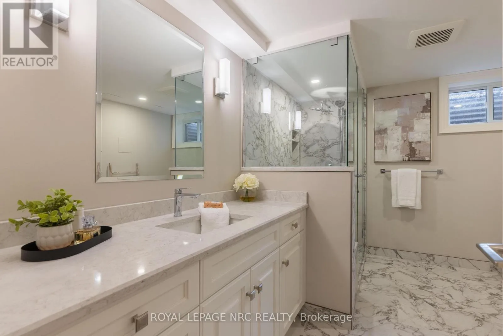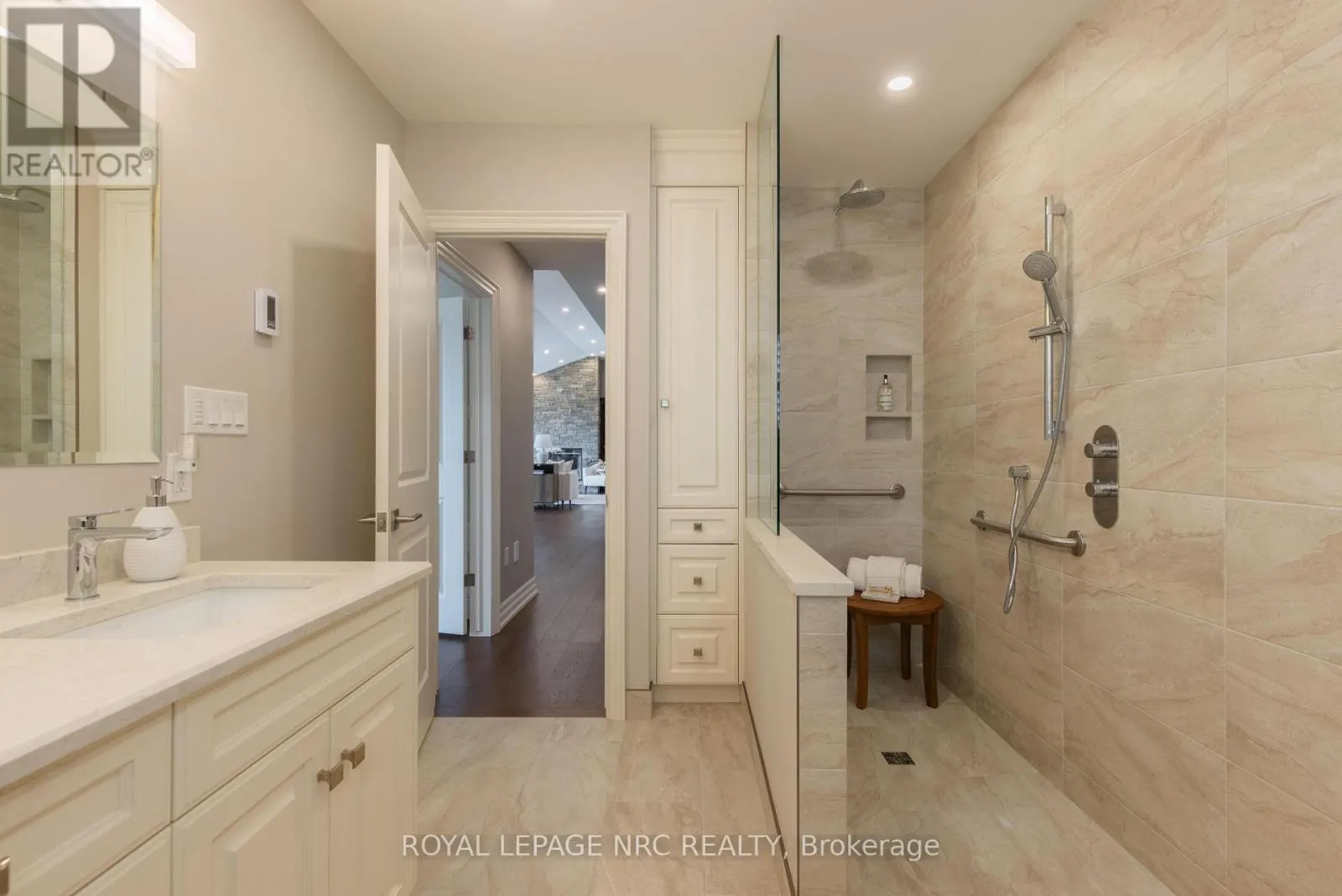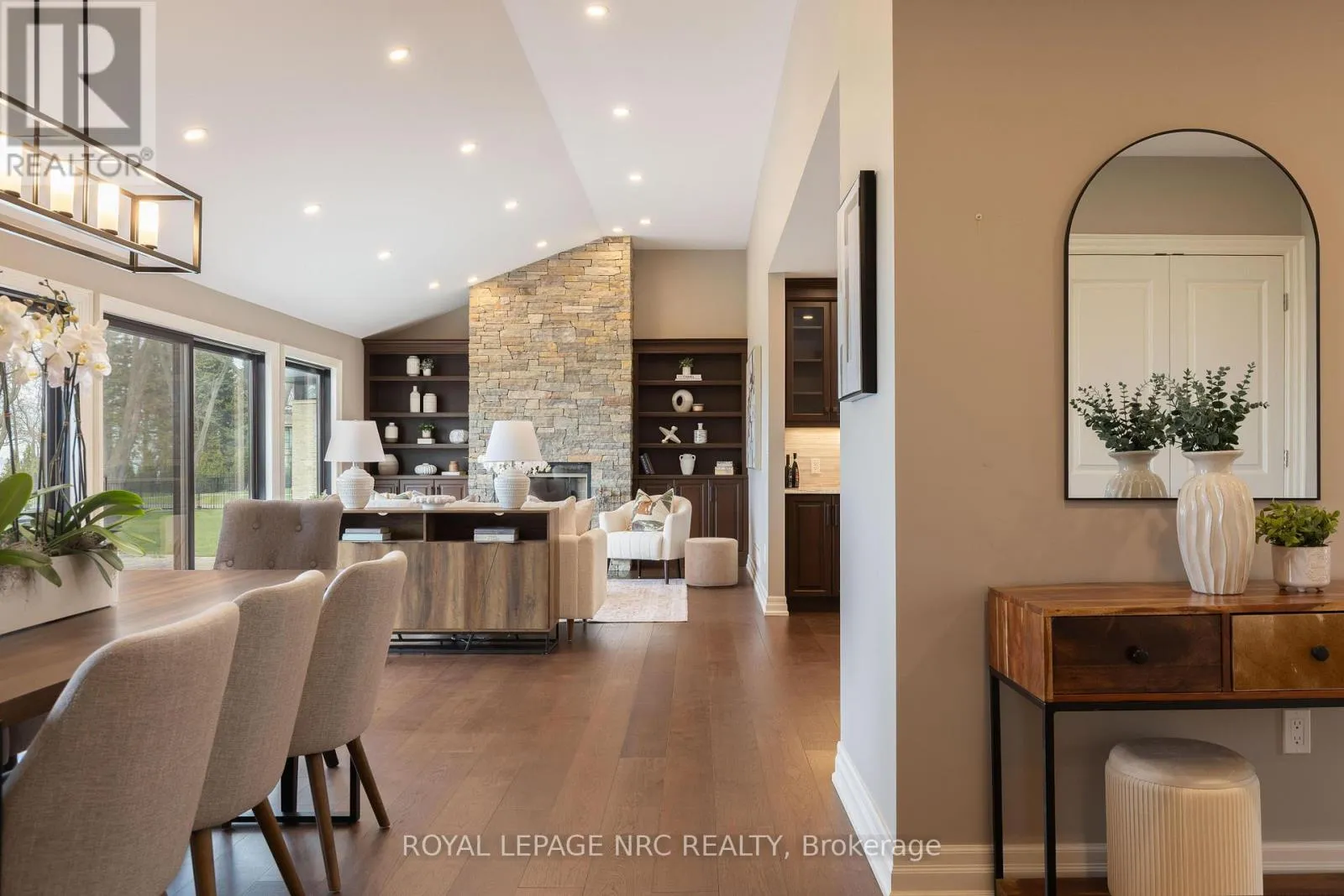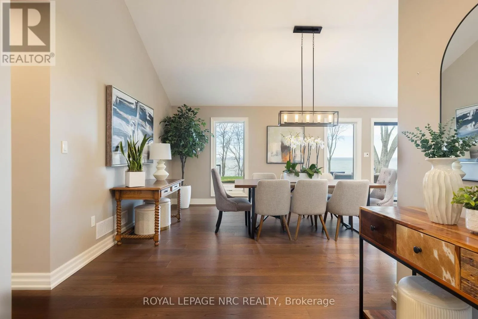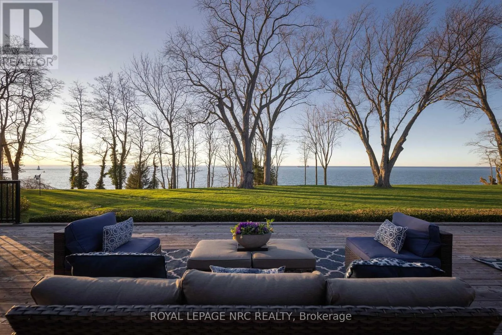 Cross Streets: Peach Tree Common. ** Directions: Lakeshore Road, north on Simpson Road. WELCOME TO YOUR BEAUTIFUL CUSTOM LAKEFRONT DREAM HOME IN NIAGARA! Stunning waterfront residence on a rare 1 acre private lot with 140 ft. shoreline frontage, on exclusive Simpson Road, offering breathtaking views from every room of Lake Ontario and the Toronto skyline. Enjoy dramatic sunsets, direct water access in this 2300 sq. ft. custom bungalow, fully renovated from top to bottom. Floor to ceiling windows in the Great room frame the view, anchored by 14 foot vaulted ceiling, a dramatic full-height stone fireplace, rich hardwood throughout. Gourmet kitchen with s/s appliances, perfect for entertaining. 3 spacious bedrooms on the main floor, each with wall to wall custom built in cupboards, and walkouts to patio including Primary bedroom with ensuite. Main floor laundry, interior access to double garage with rear overhead door. Generac generator. Lower level with 2 bedrooms (one currently in use as a home office), full bathroom, cantina and a huge unfinished room, perfect to create a fabulous Recreation room. Professionally landscaped with irrigation system, circular drive. Enjoy your own piece of waterfront paradise! See video for full views and tour. (id:27476)