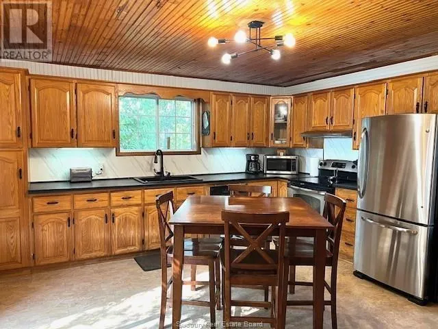 Welcome to 22B Champagne Road! Nestled on the shores of the beautiful West Arm of Lake Nipissing, this charming four-season home is the perfect waterfront retreat. The main floor features an open-concept layout with kitchen, dining, and living areas designed for entertaining, a cozy family room complete with fireplace and wood stove, and a full 4-piece bath. Upstairs, youâll find a spacious primary suite offering a walk-in closet, ensuite bath, and convenient laundry room, with patio doors leading to a covered deck overlooking the water. The property sits on a level, treed lot with two docks, providing plenty of space to enjoy the lake. Additional highlights include a steel roof, low-maintenance vinyl siding, and a 12â x 12â sleep camp for guests. Single attached garage is set up with summer kitchen but could be converted back to garage. Whether youâre seeking a year-round home or a seasonal getaway, this property delivers the best of lakeside living. (id:27476)